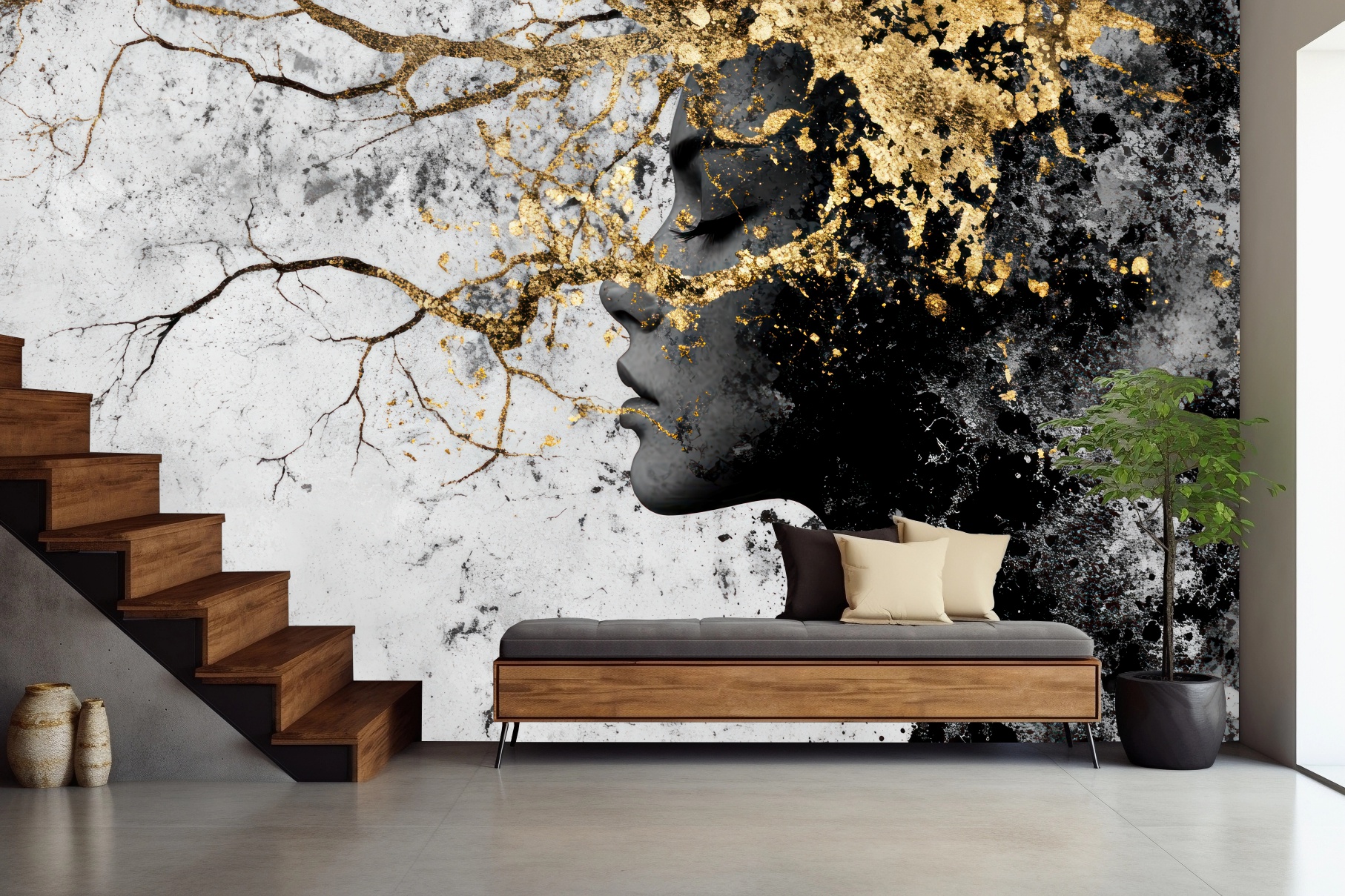Fototapeta do salonu TWARZ KOBIETY W ZŁOCIE ABSTRAKCJA GLAMOUR