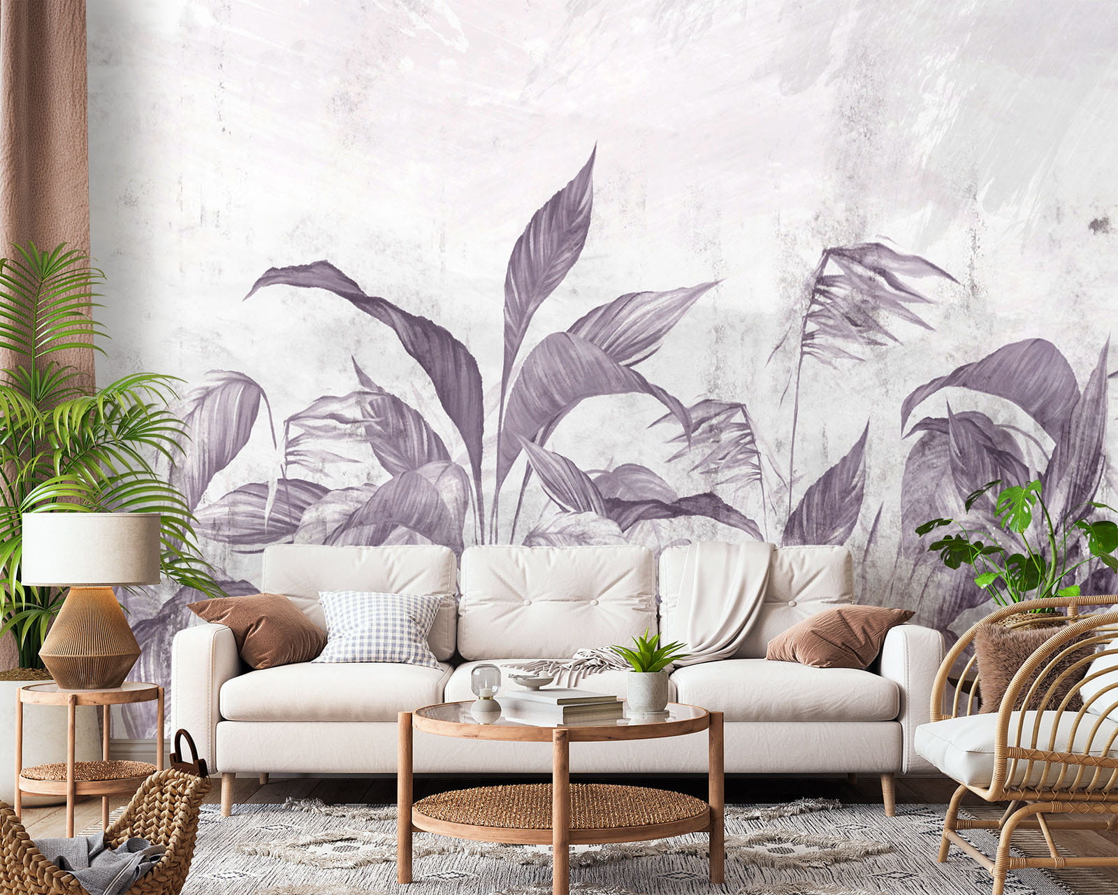 Fototapeta do salonu sypialni BETON LIŚCIE PALMY