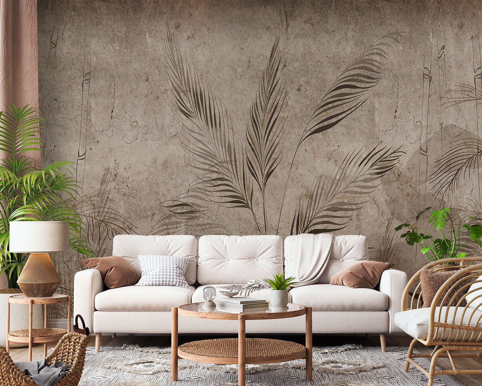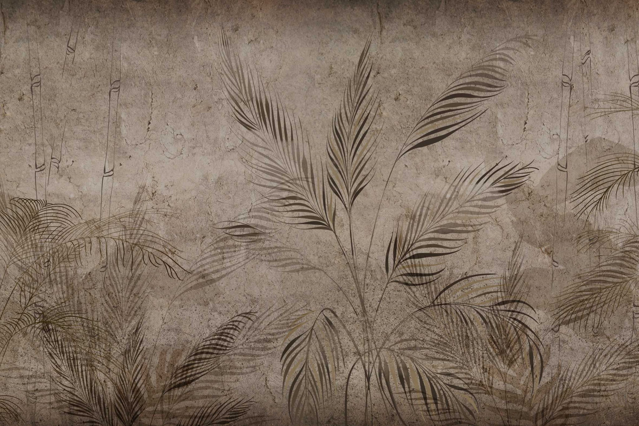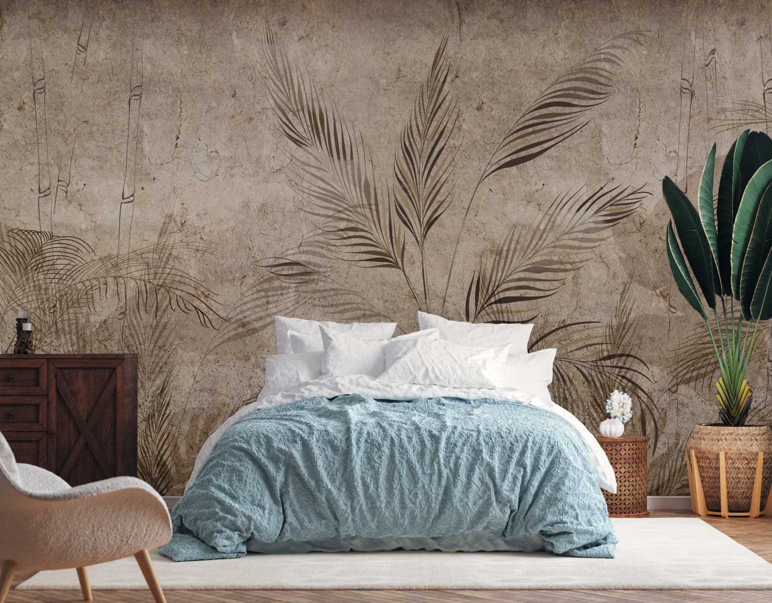 Fototapeta do salonu sypialni BETONOWA ŚCIANA LIŚCIE