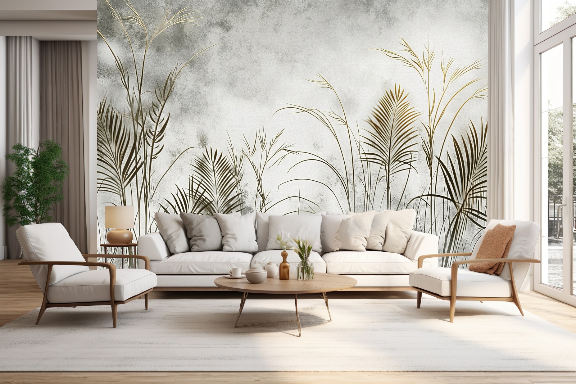Fototapeta do salonu sypialni TRAWY NA WIETRZE BOHO NATURA ROŚLINY