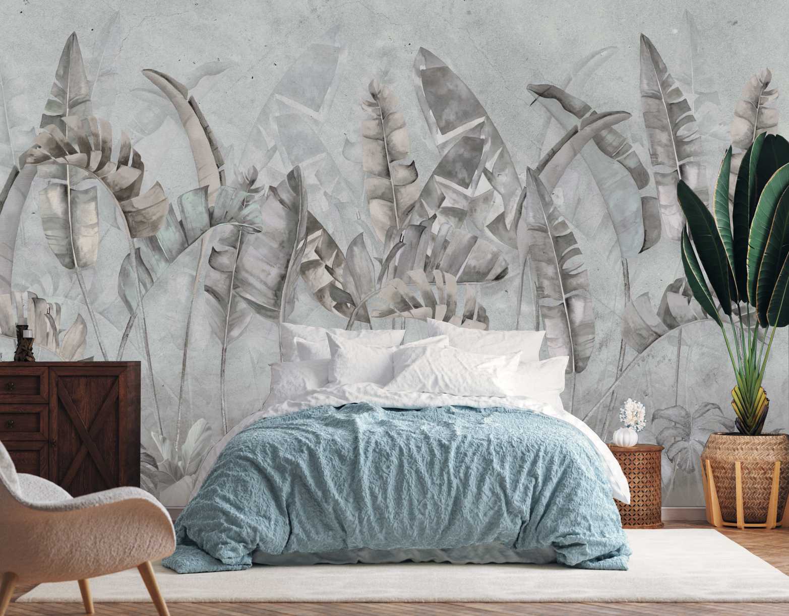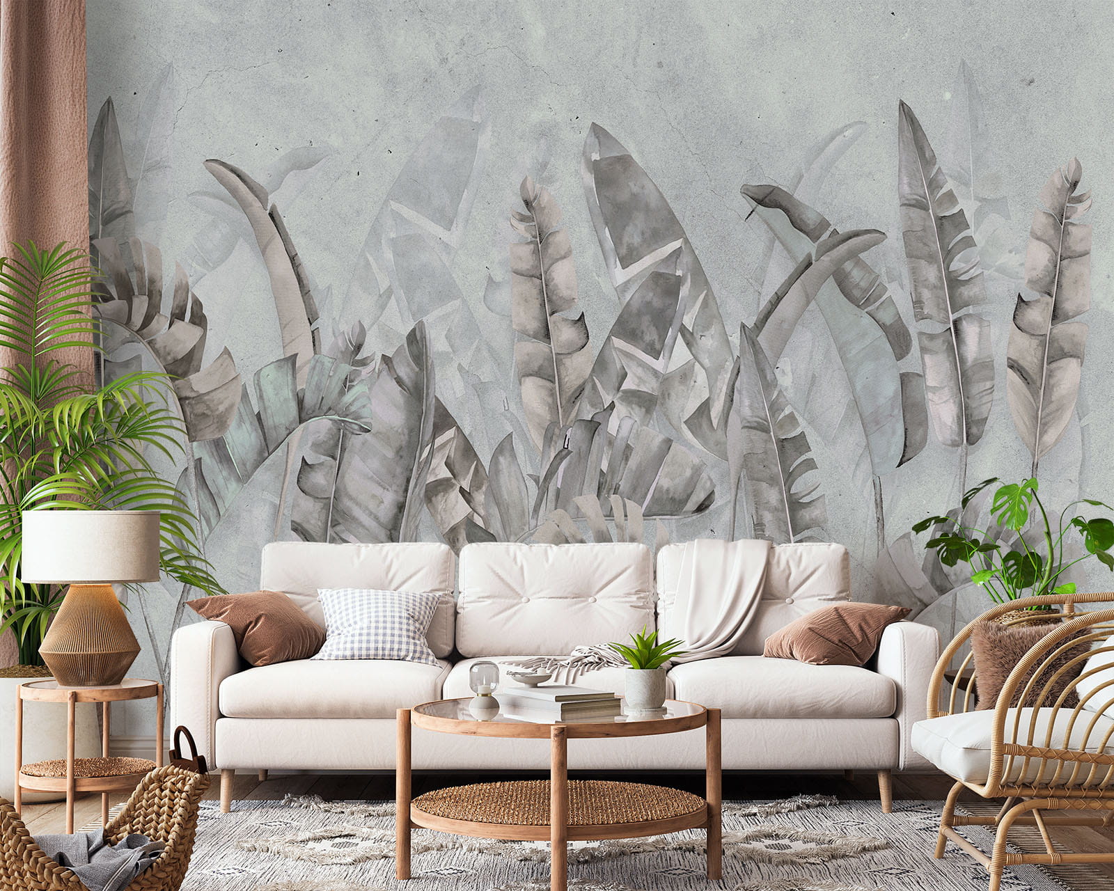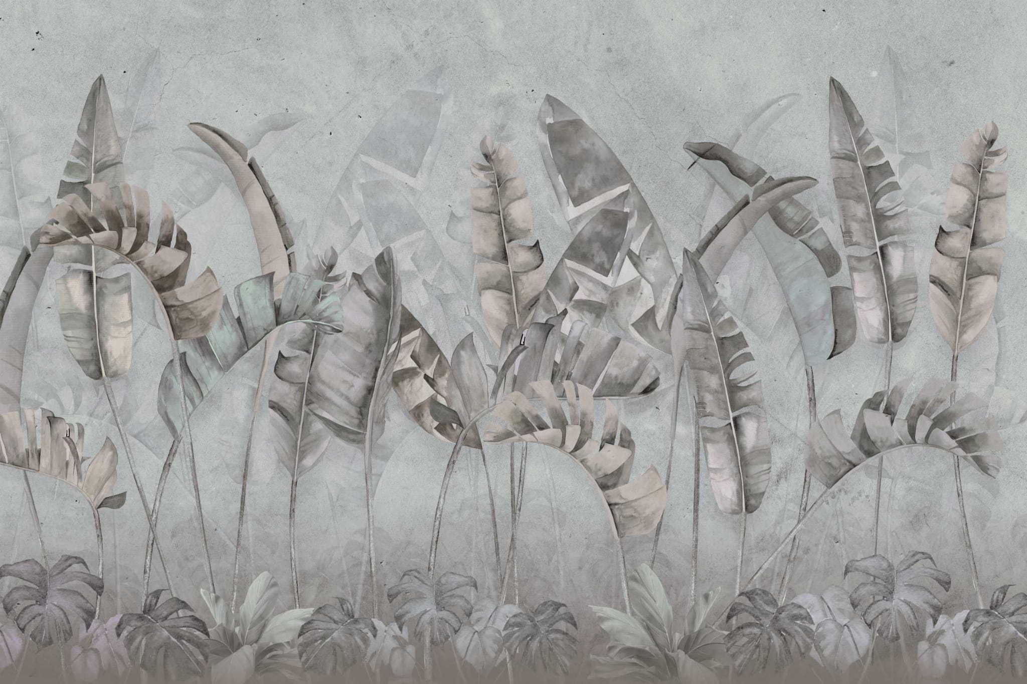 Fototapeta do salonu sypialni TROPIKALNE LIŚCIE BETON