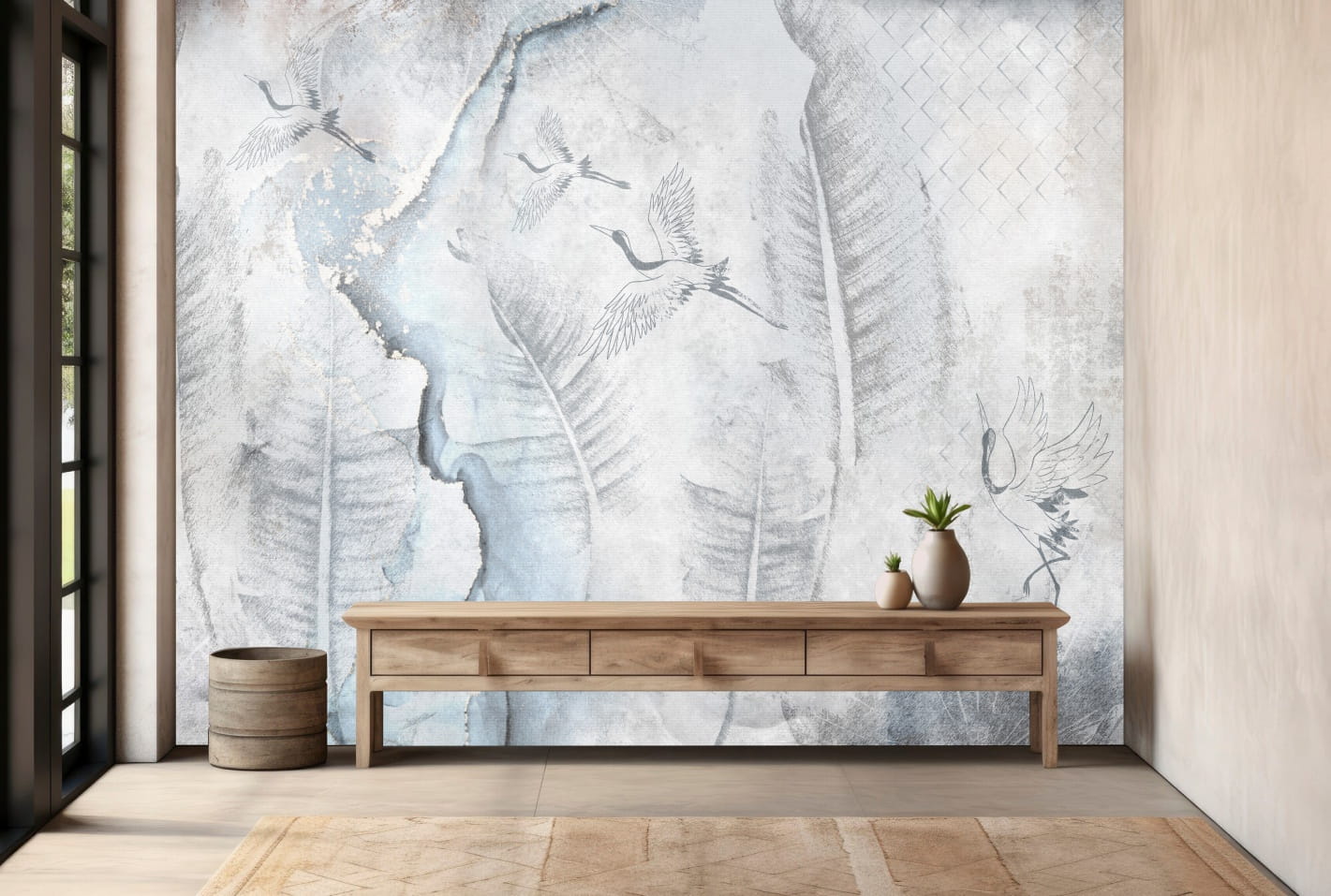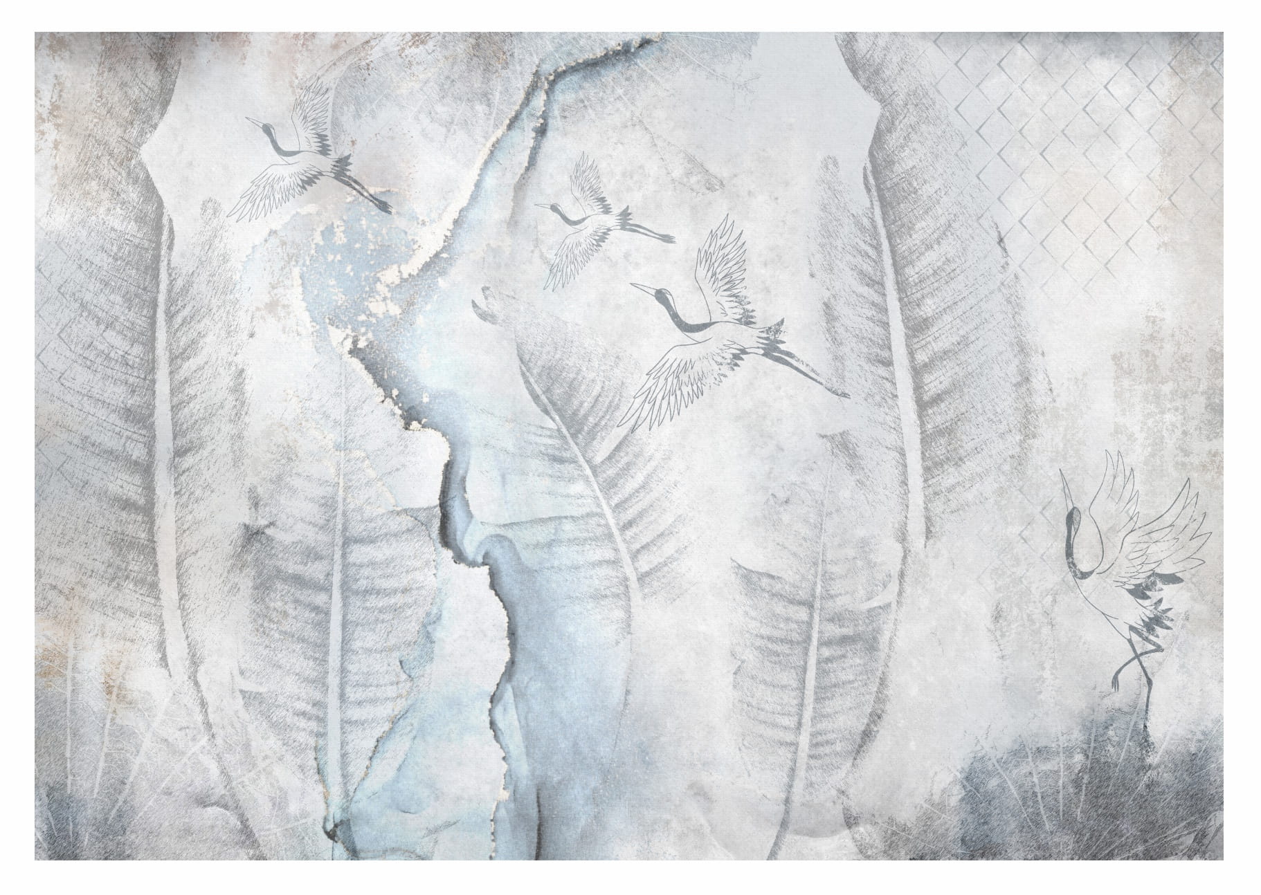 Fototapeta na ścianę ABSTRAKCYJNE LIŚCIE I ŻURAWIE NA BETONIE