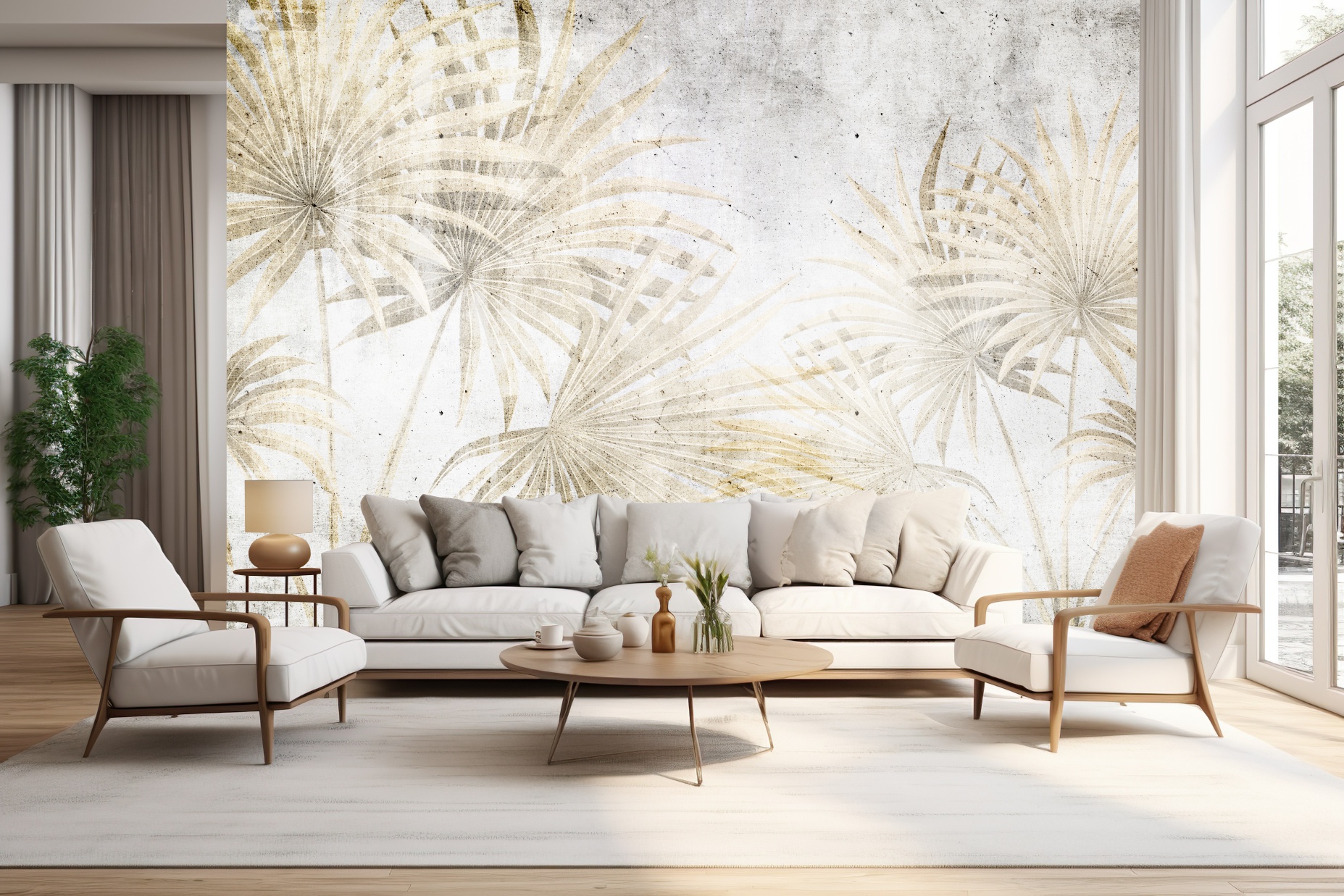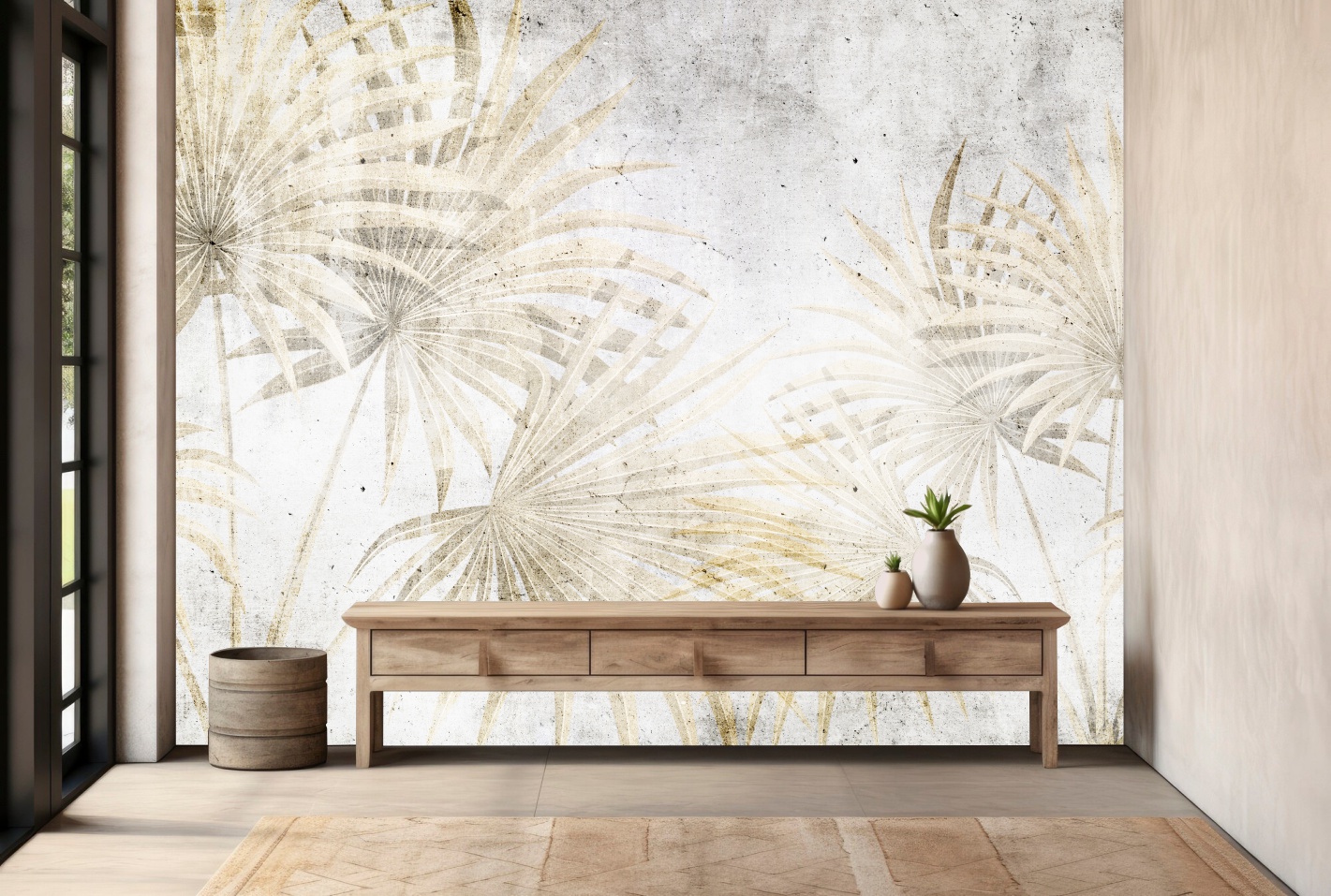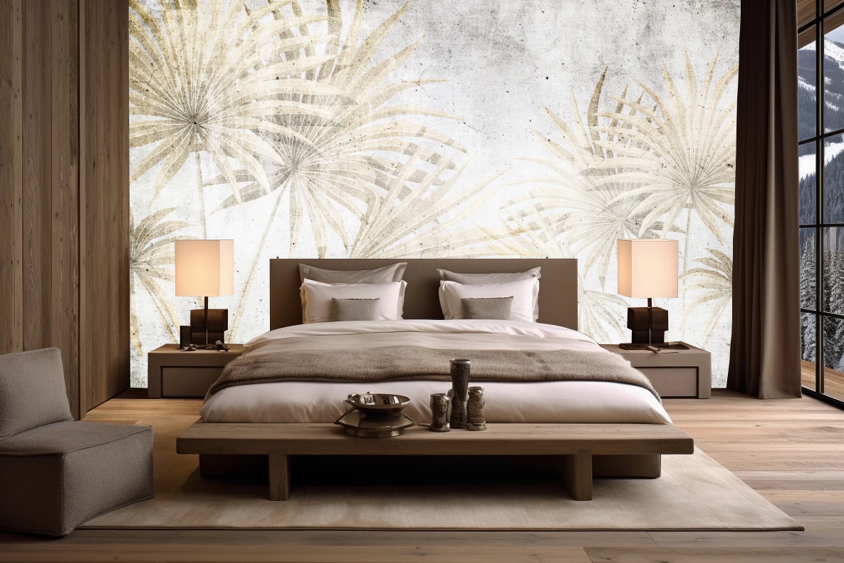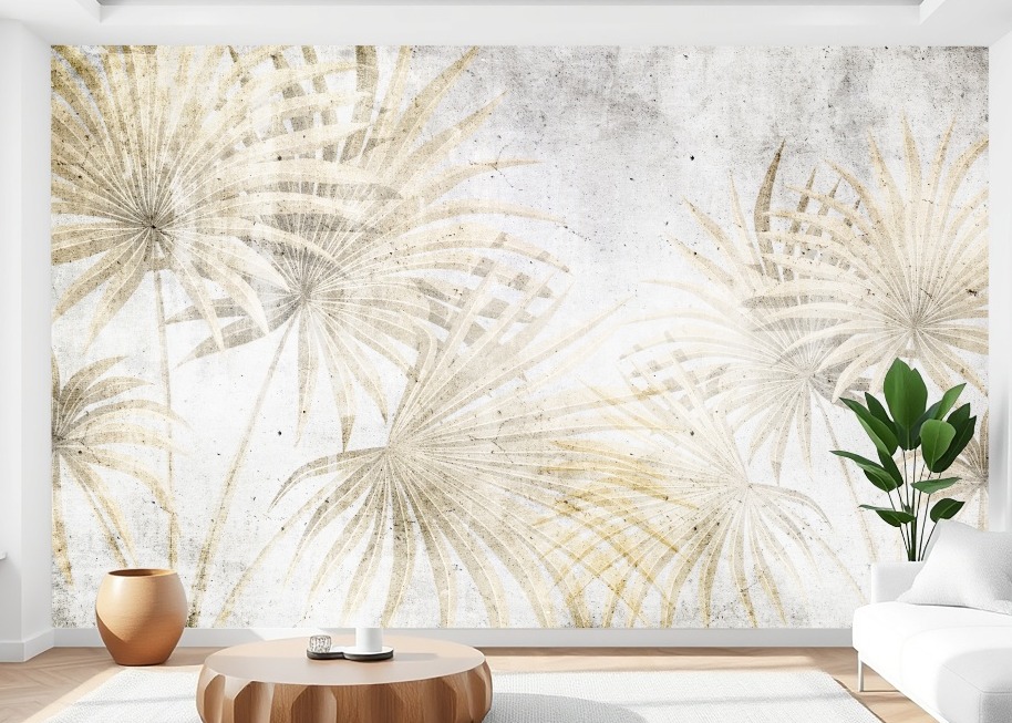 Fototapeta na ścianę do salonu sypialni Wachlarze Liści loft beton