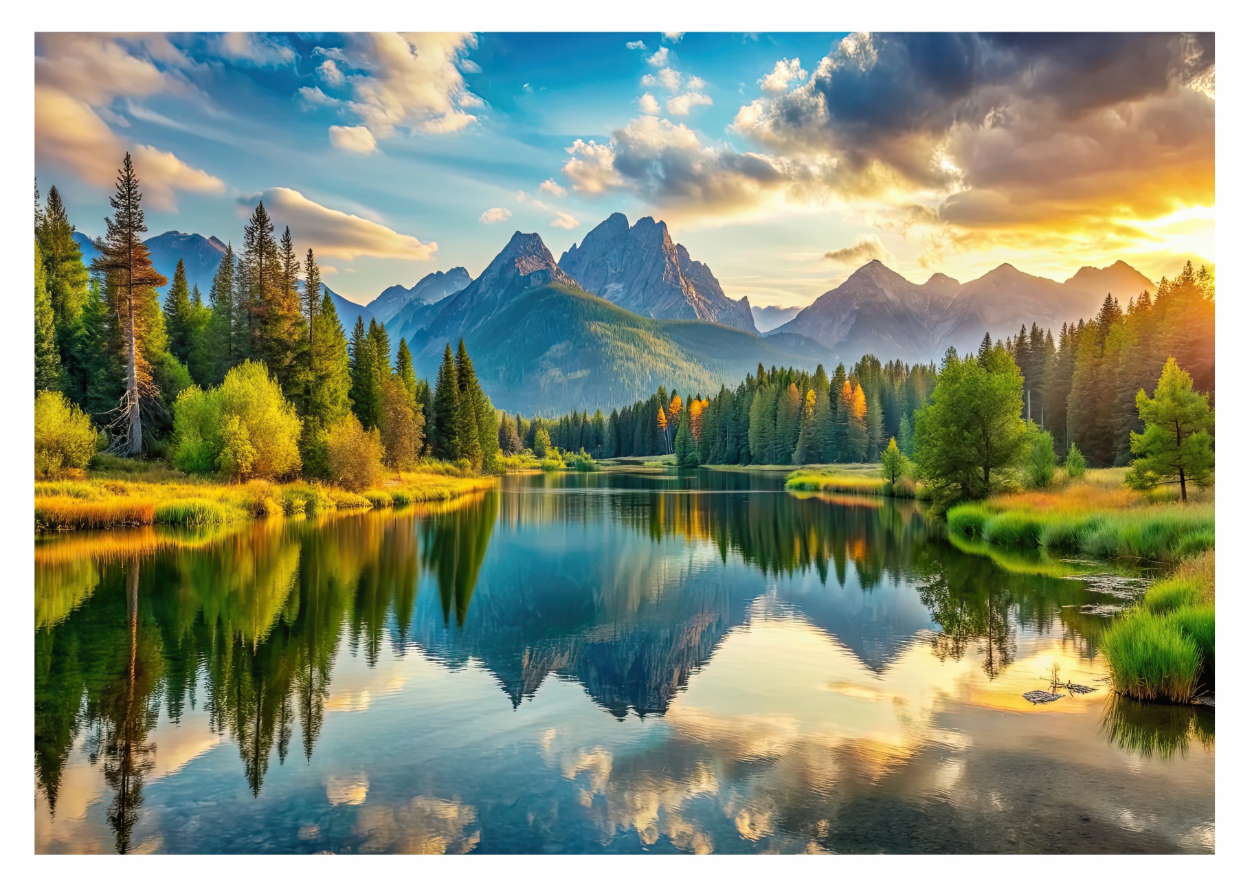 Fototapeta panorama na górskie jezioro odbicie drzewa natura