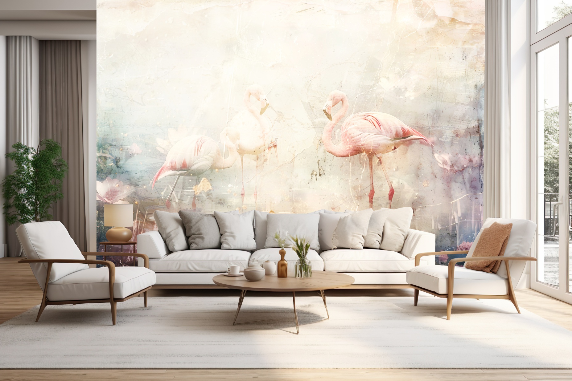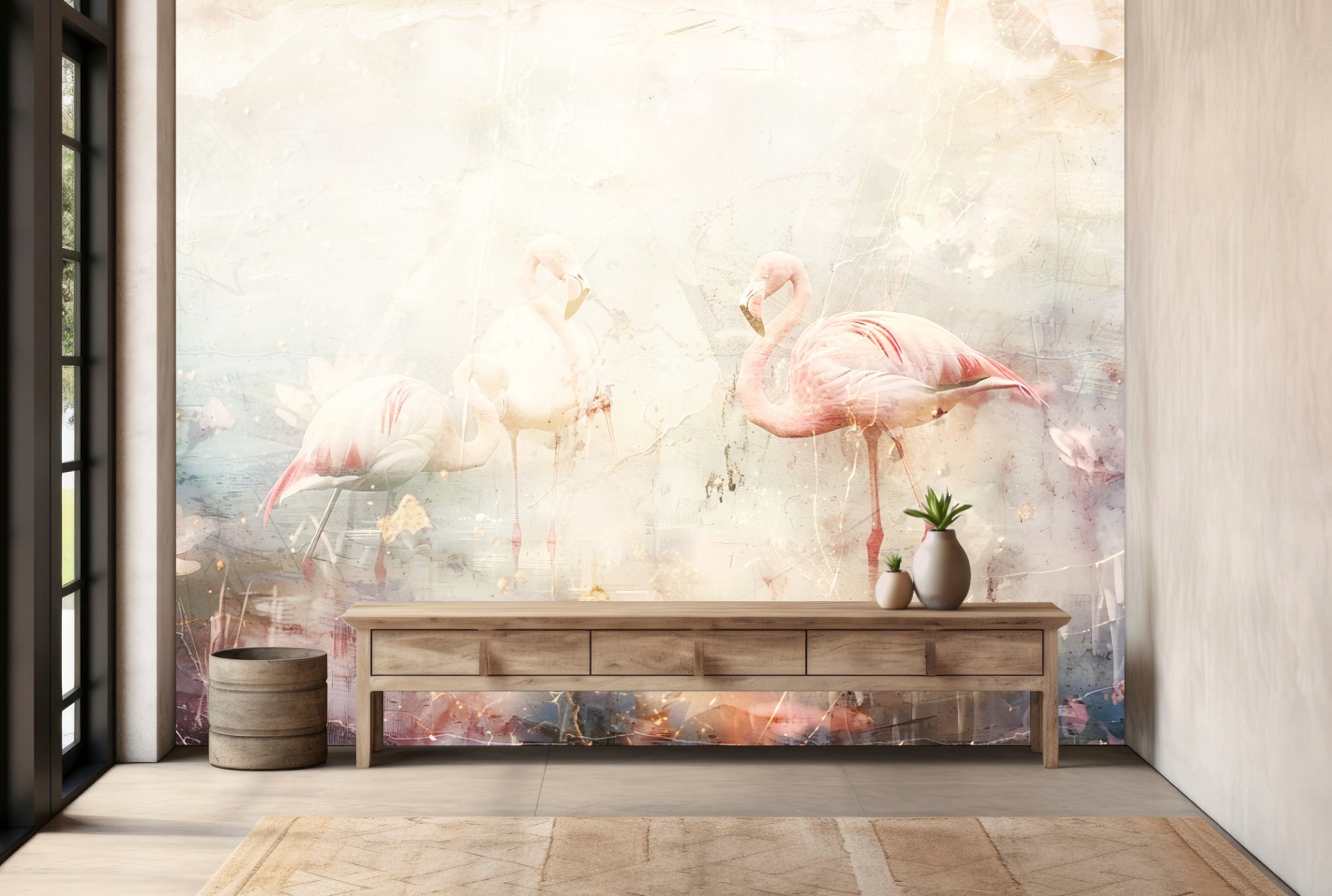 Fototapeta ścienna FLAMS flamingi na betonie tapeta do salonu sypialni