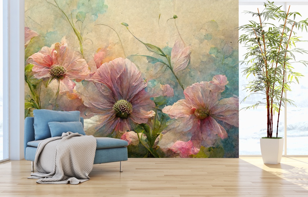 Fototapeta ścienna mural piękne kwiaty jak malowane do sypialni salonu