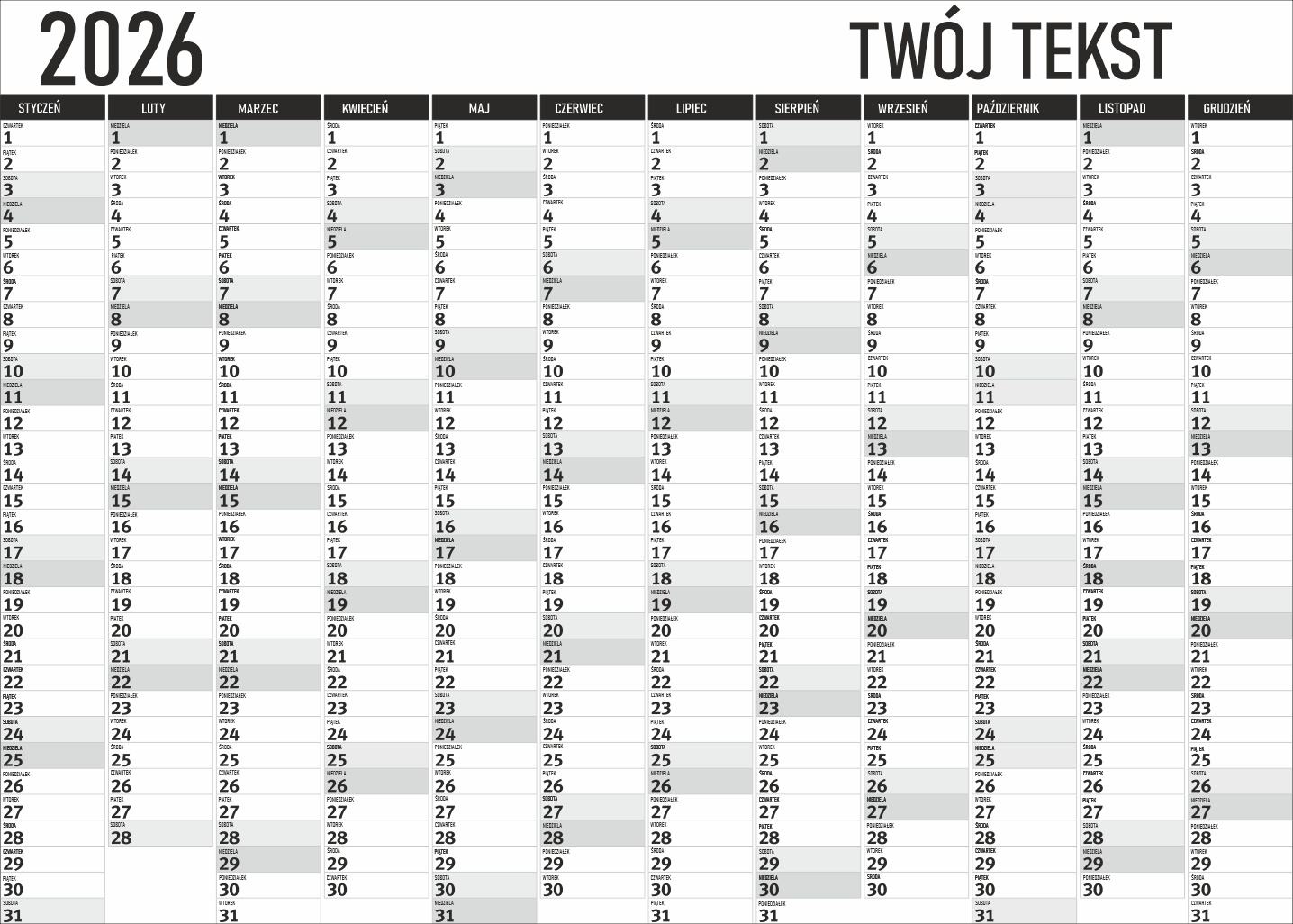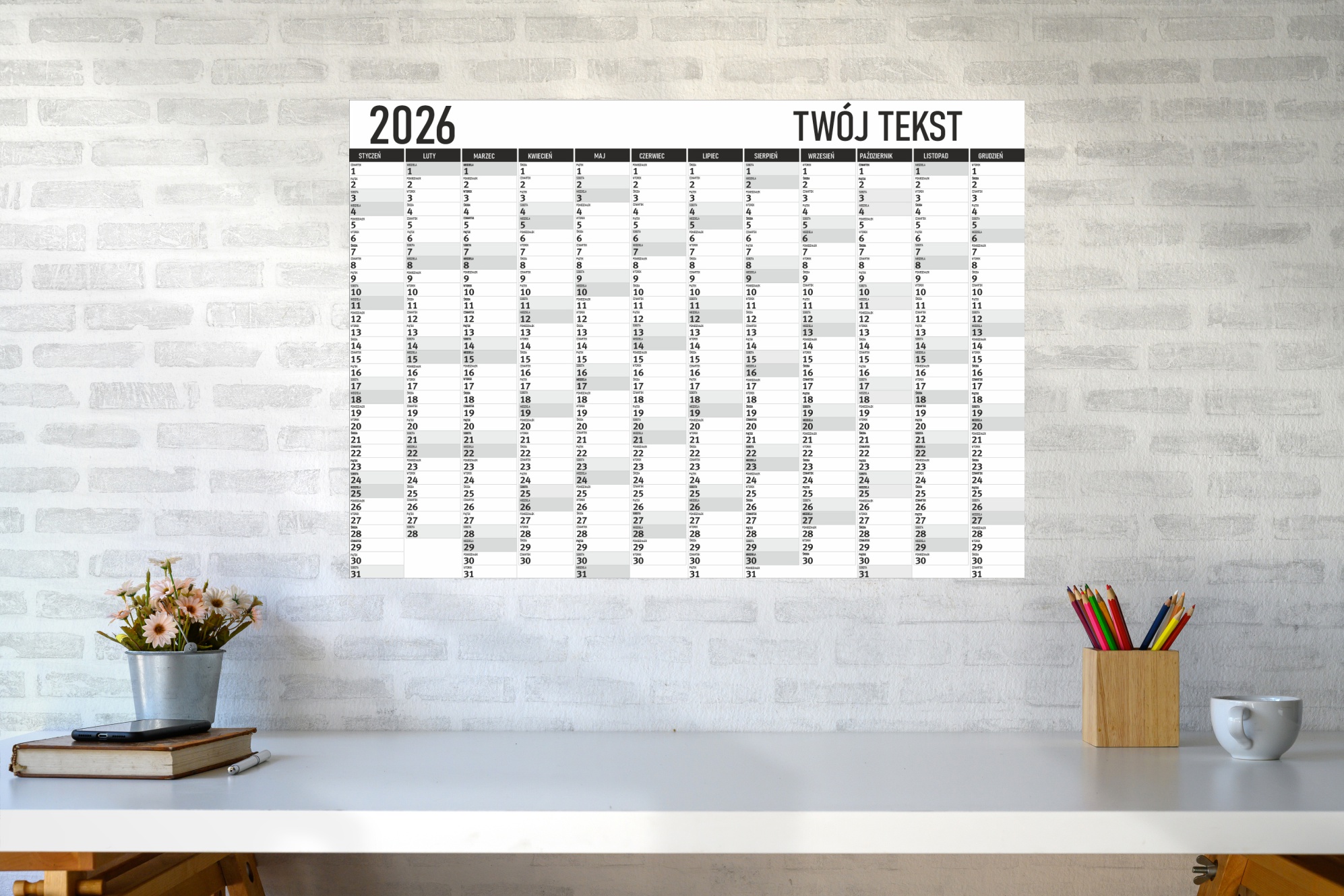 Kalendarz na 2026 ROK suchościeralny dziennik planer DO BIURA SZKOŁY