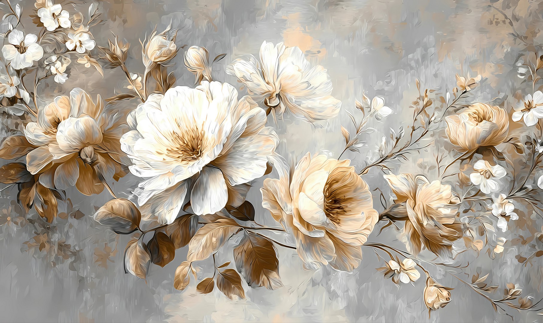 Luksusowa fototapeta z motywem róż – efekt obrazu olejnego i złotej patyny FLORESSA