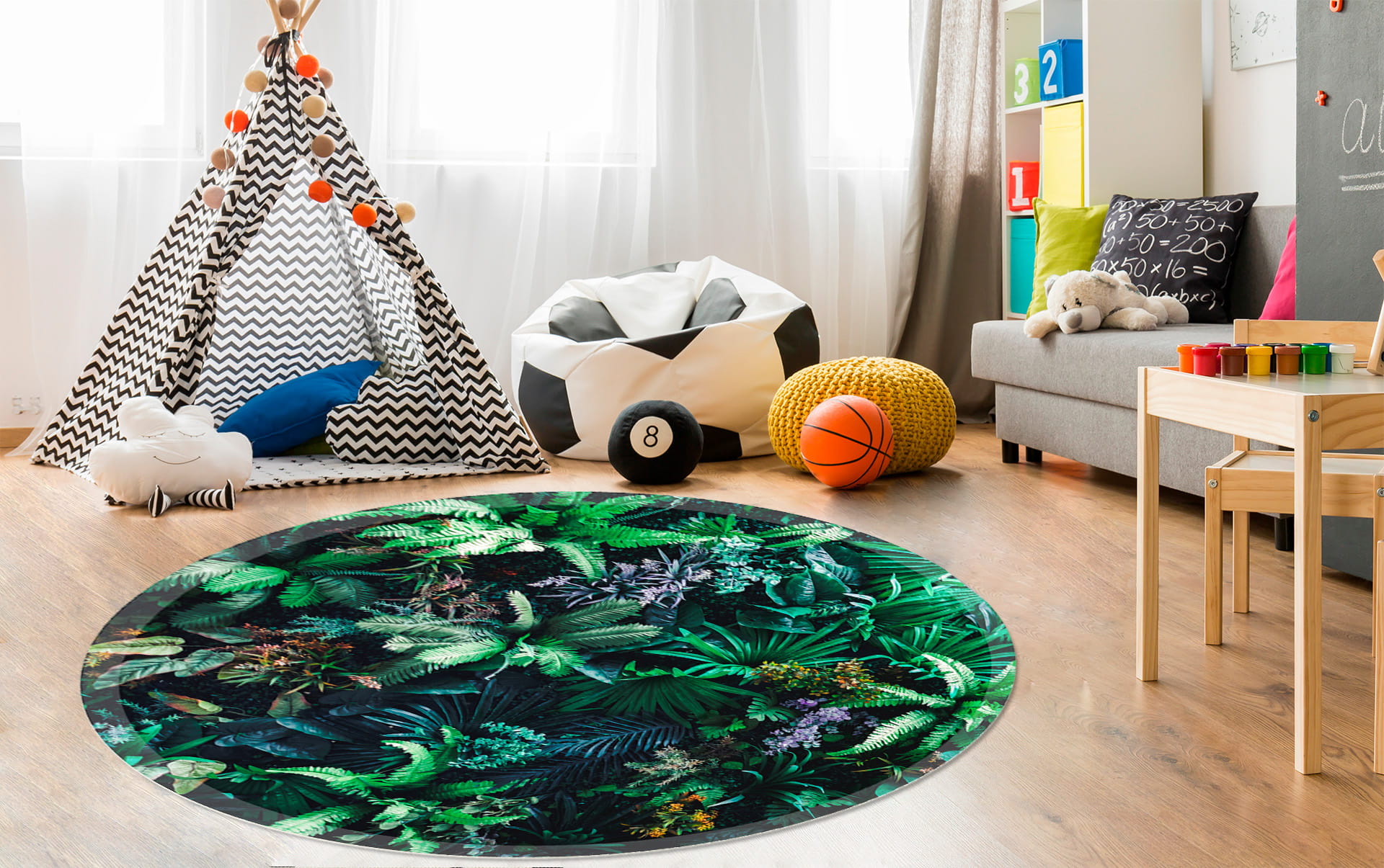 MATA ANTYPOŚLIZGOWA POD FOTEL OKRĄGŁA TROPIKALNE LIŚCIE KWIATY