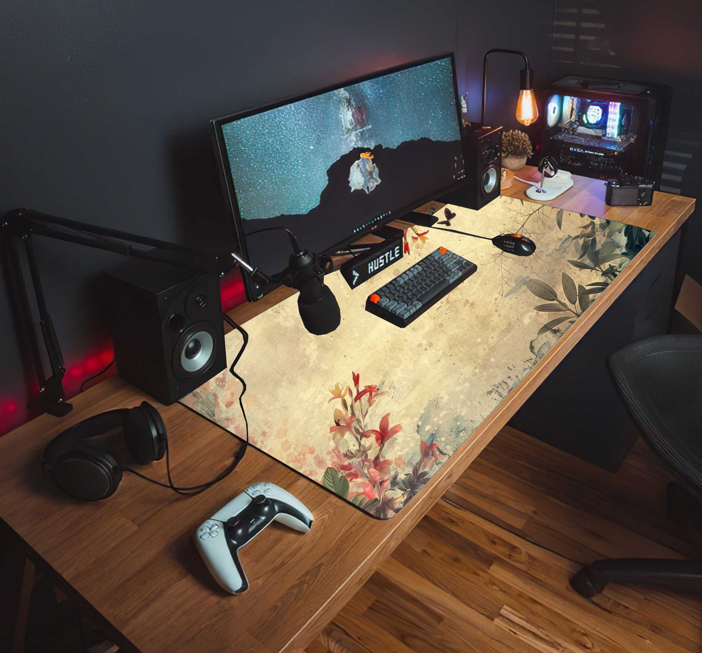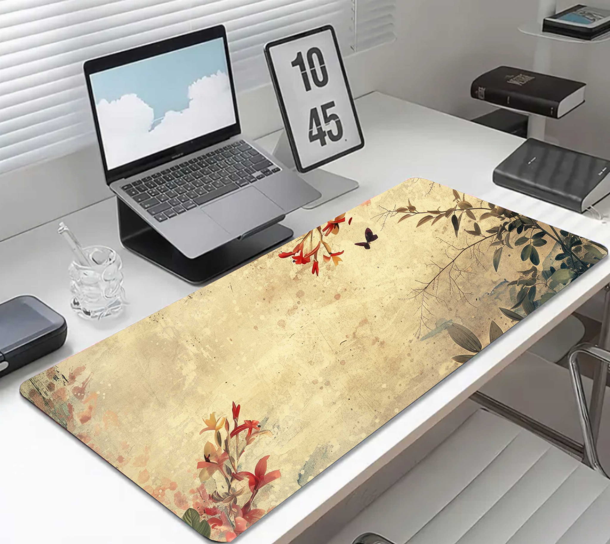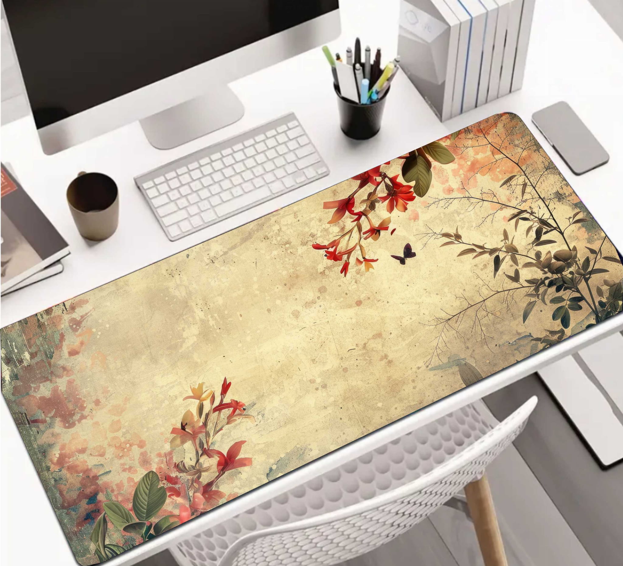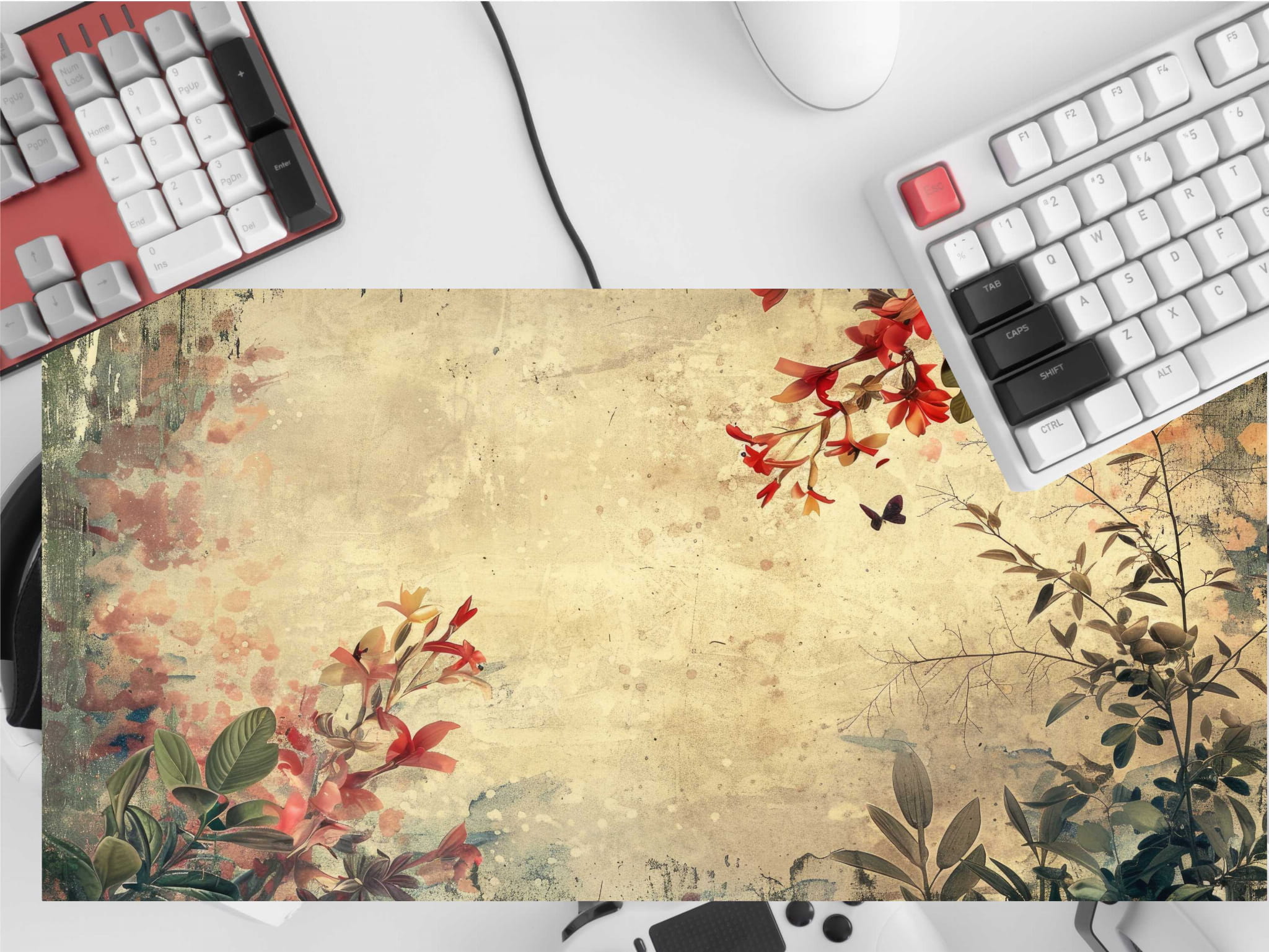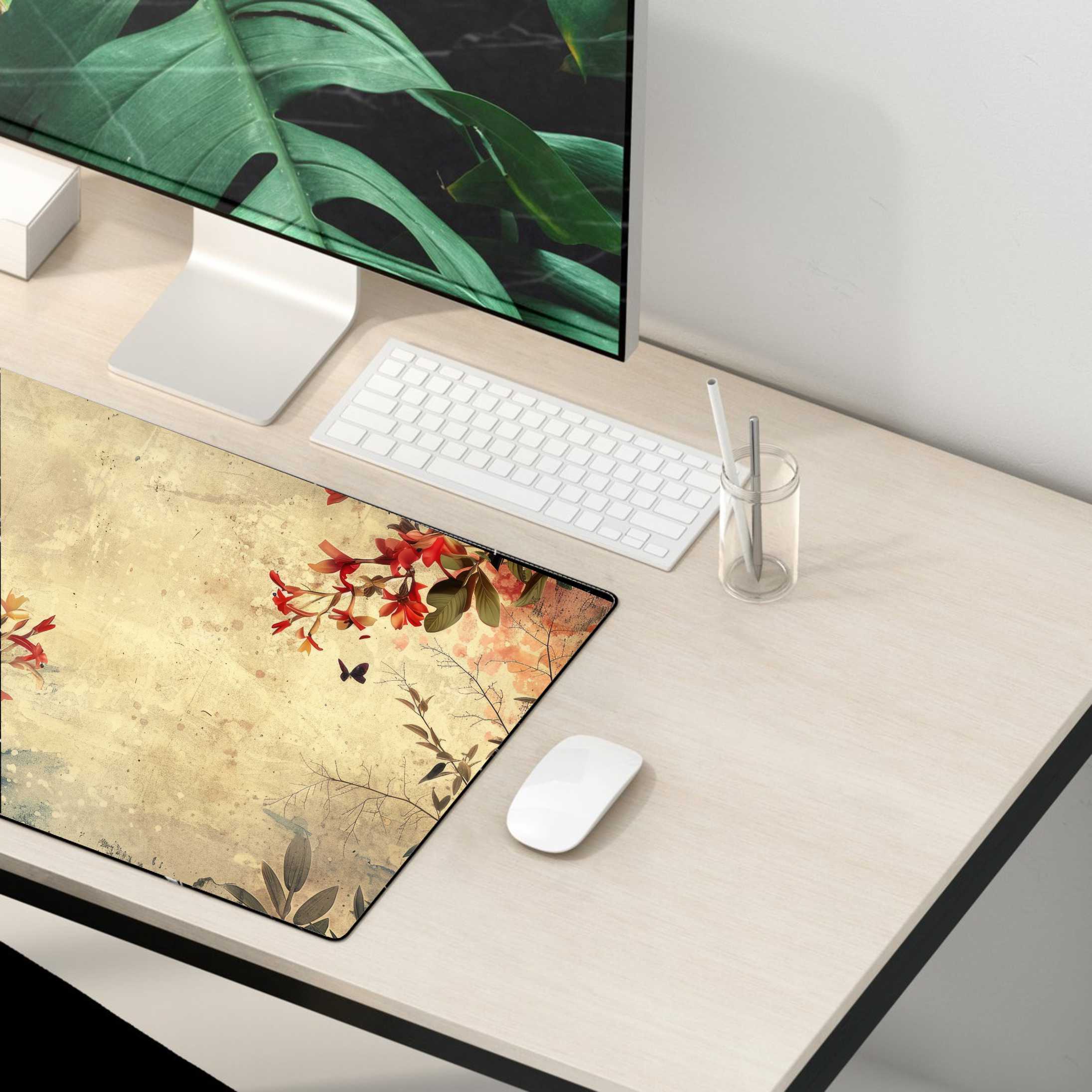 MATA GAMINGOWA NA BIURKO kwiaty rośliny vintage retro