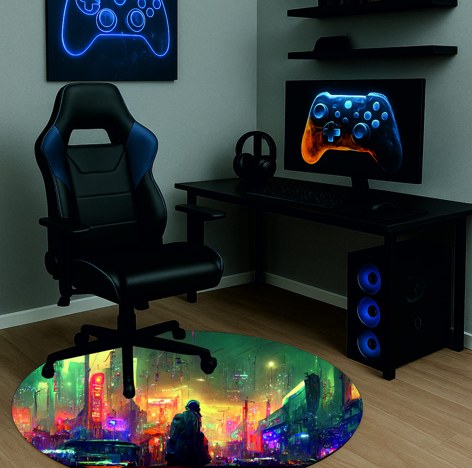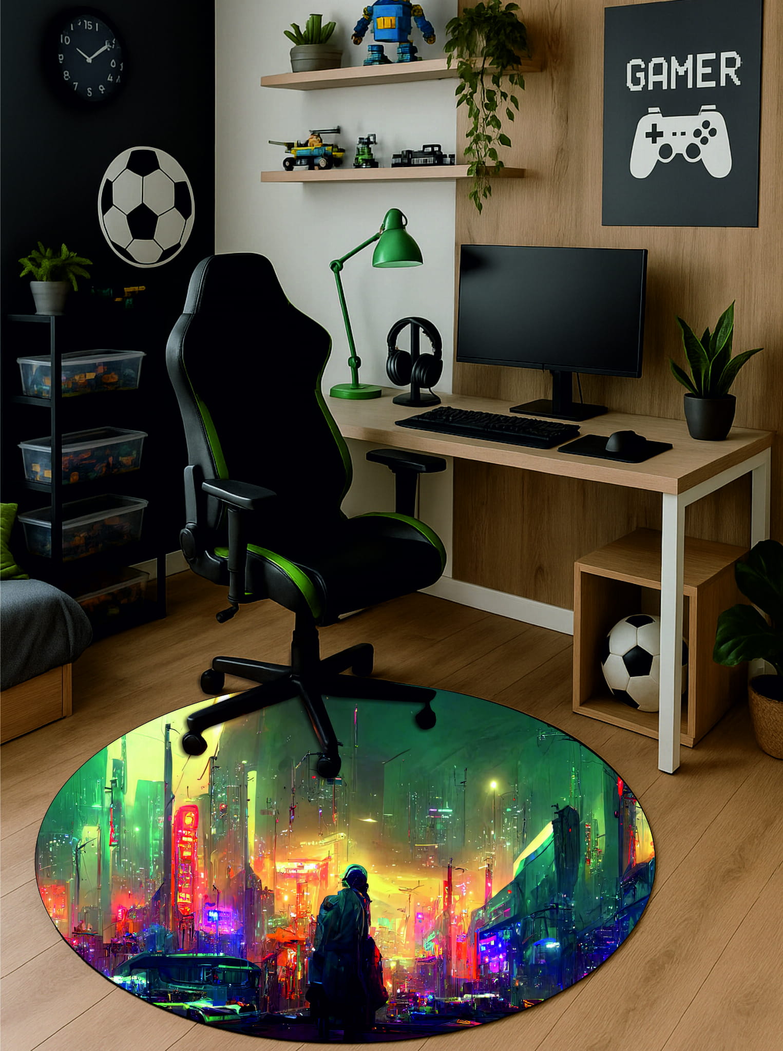 MATA OCHRONNA POD FOTEL OKRĄGŁA KOLOROWE NEONOWE MIASTO