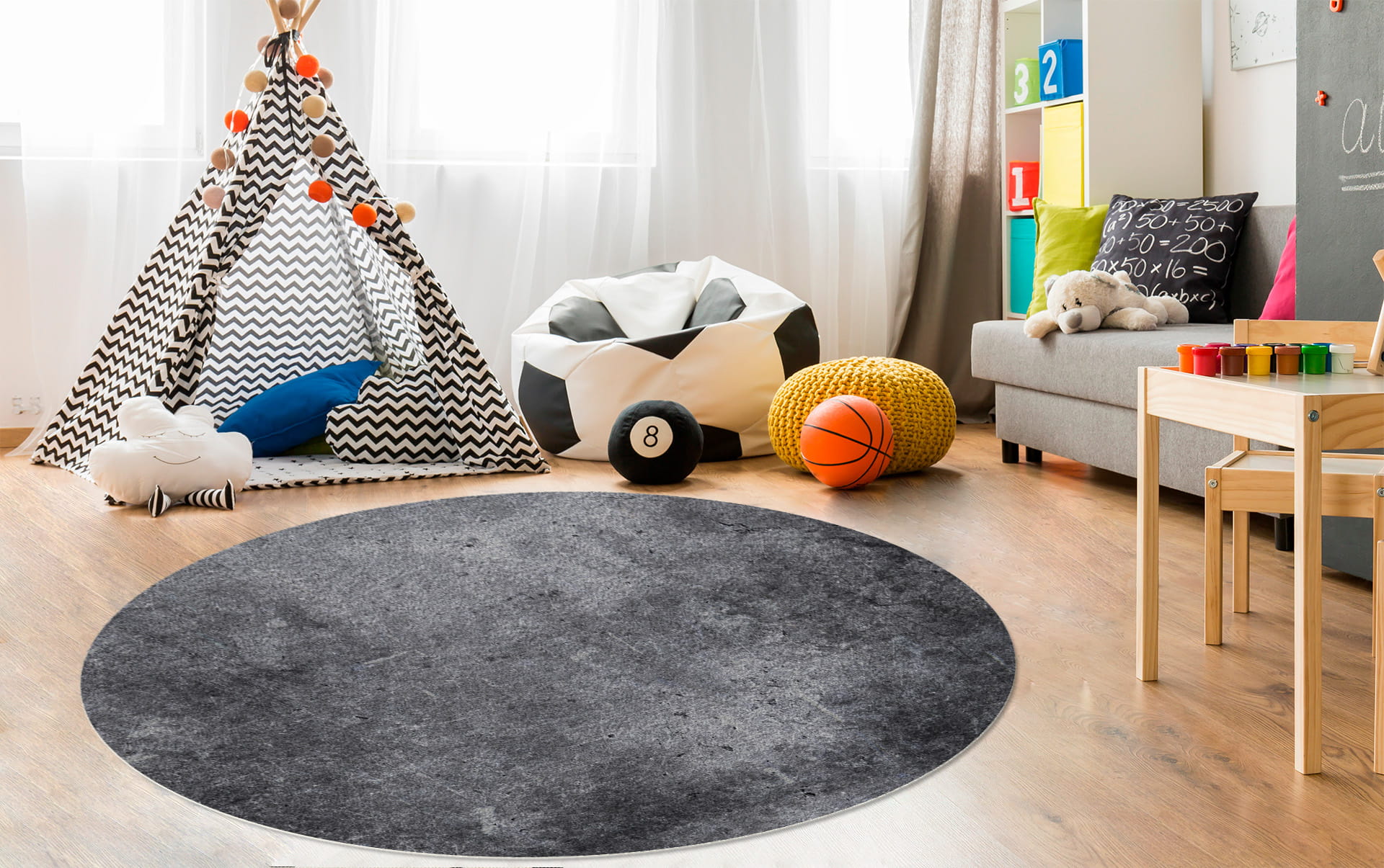 MATA PODKŁADKA POD KRZESŁO OCHRONNA okrągła CIEMNY BETON
