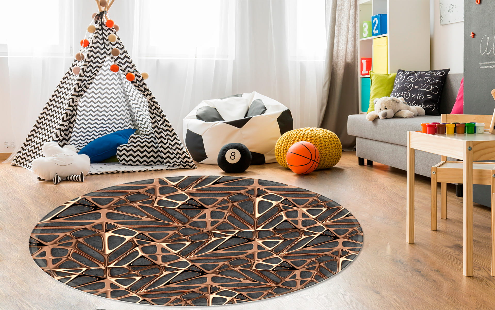 MATA PODŁOGOWA POD FOTEL OCHRONNA ZŁOTE WZORY 3D