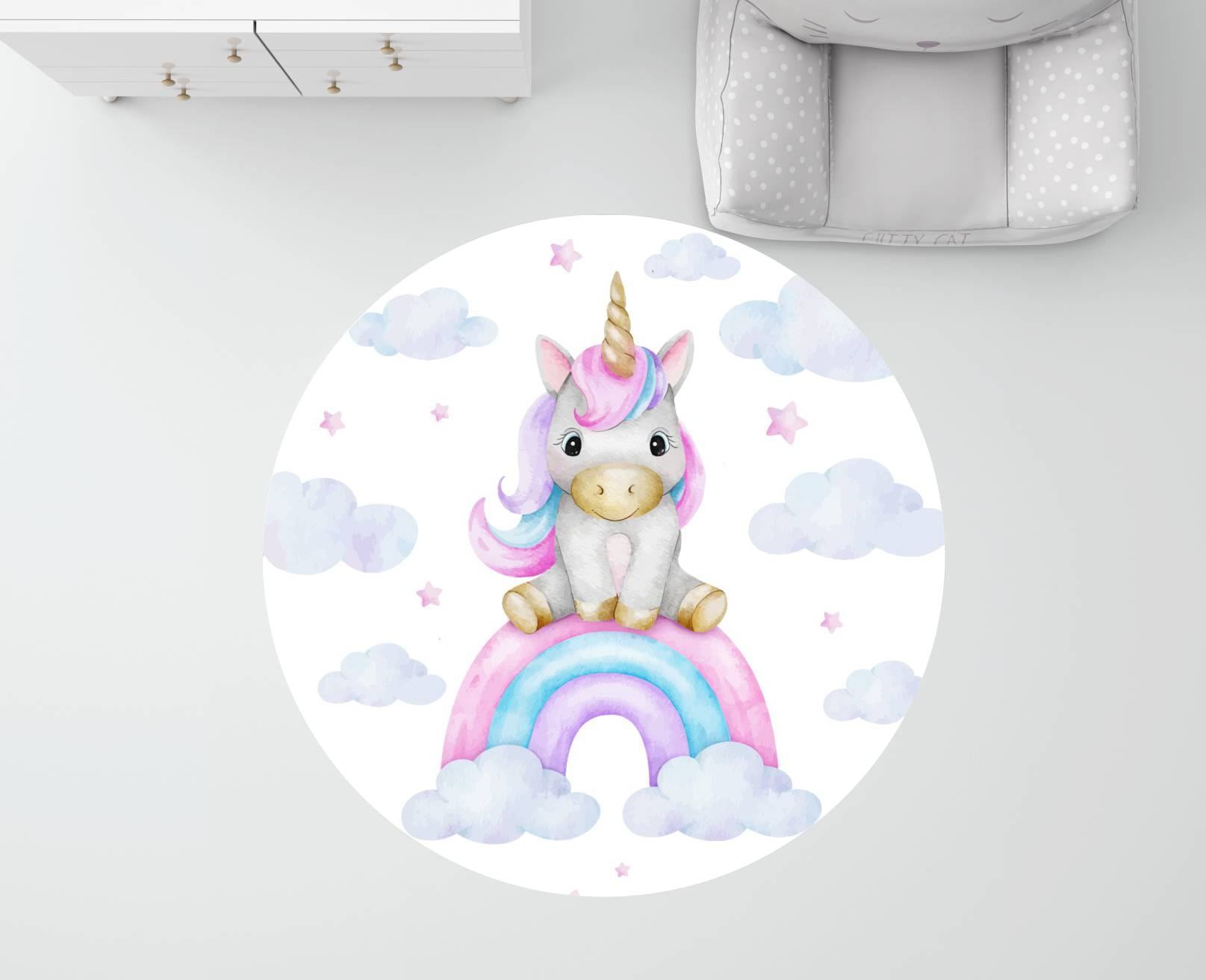 MATA WINYLOWA OKRĄGŁA dla dzieci do zabawy jednorożec tęcza