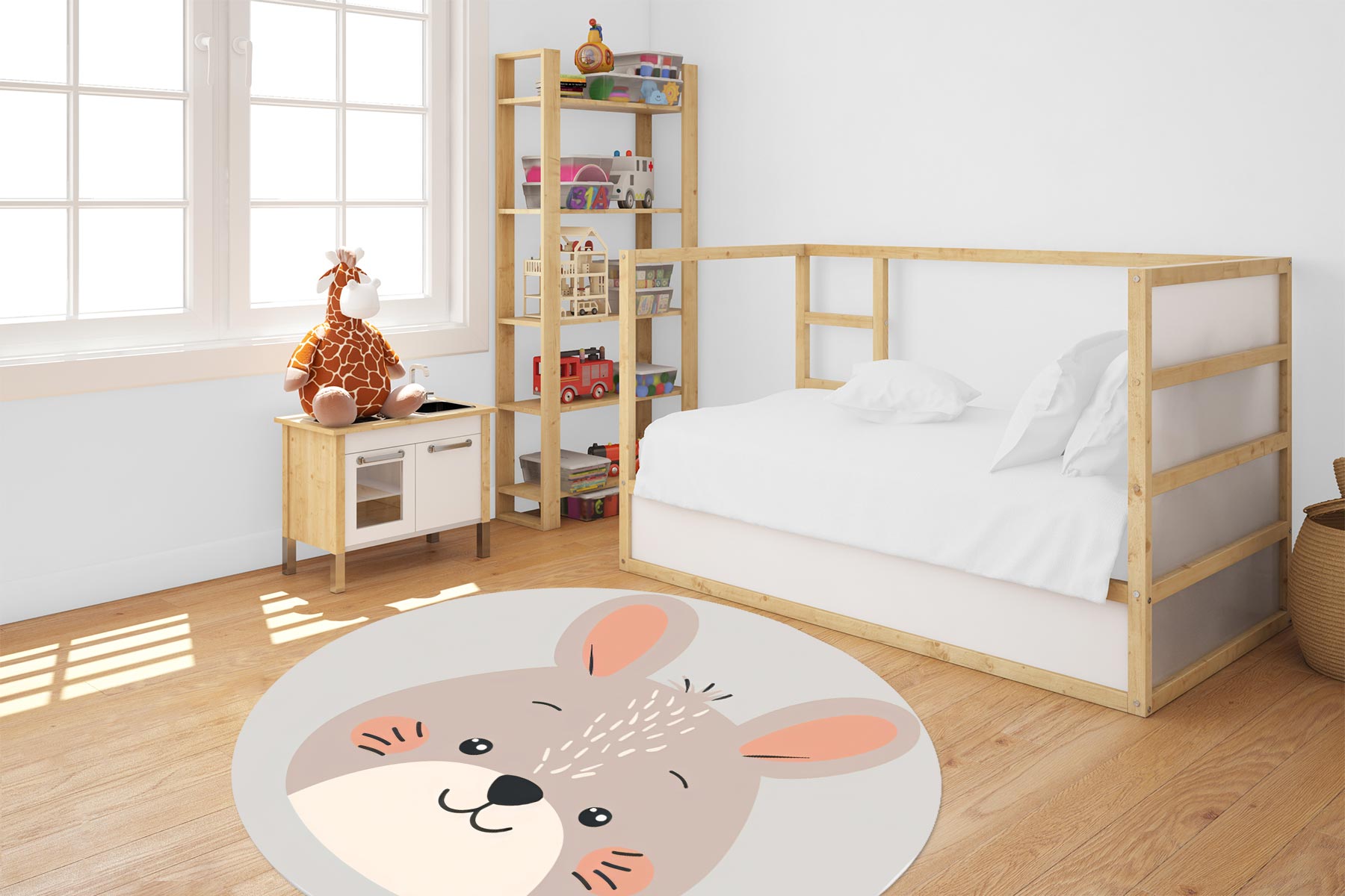 MATA WINYLOWA OKRĄGŁA dla dzieci do zabawy królik szary