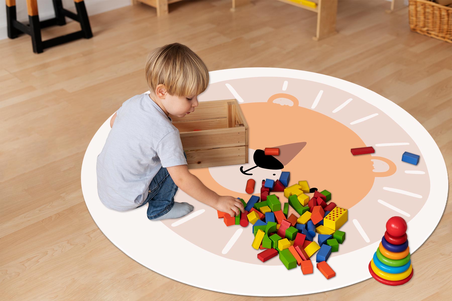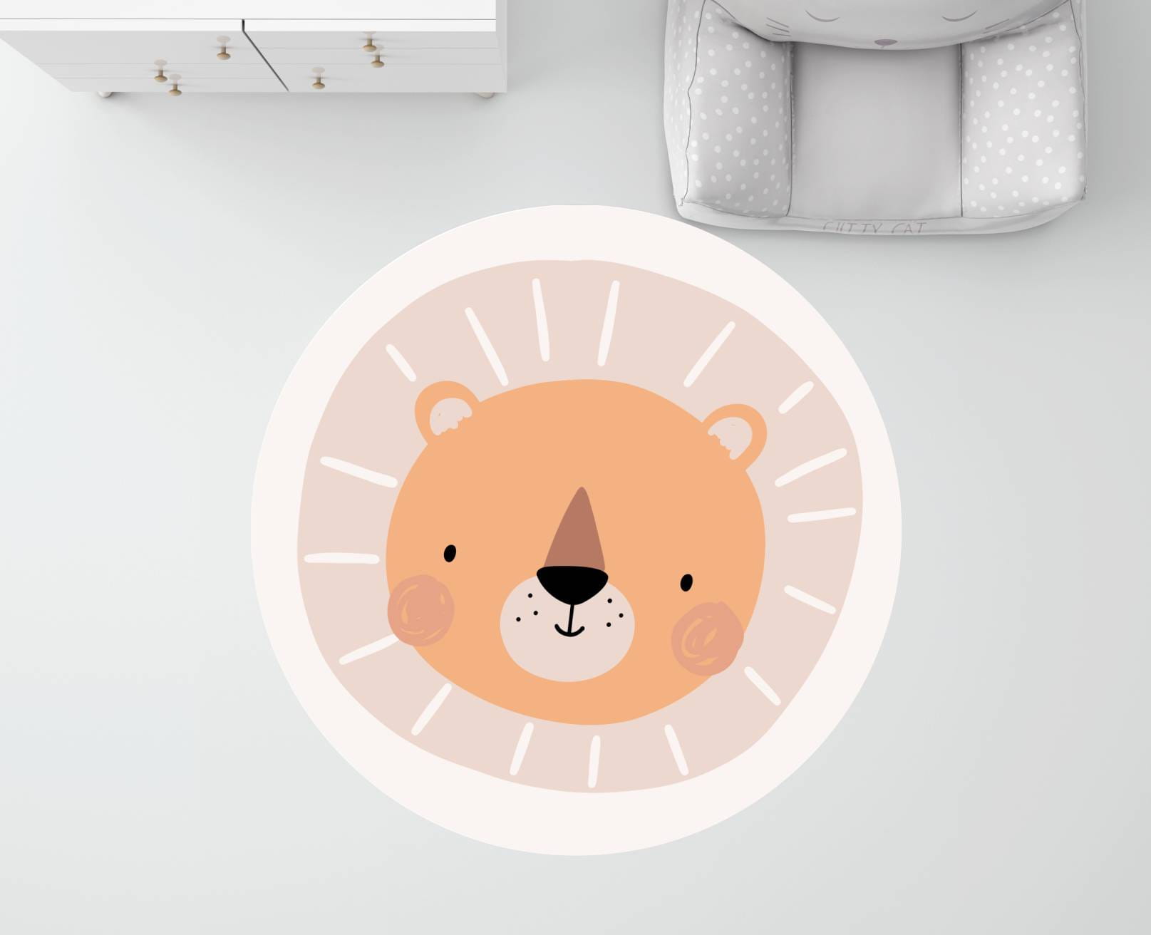 MATA WINYLOWA OKRĄGŁA dla dzieci do zabawy lew pastelowy