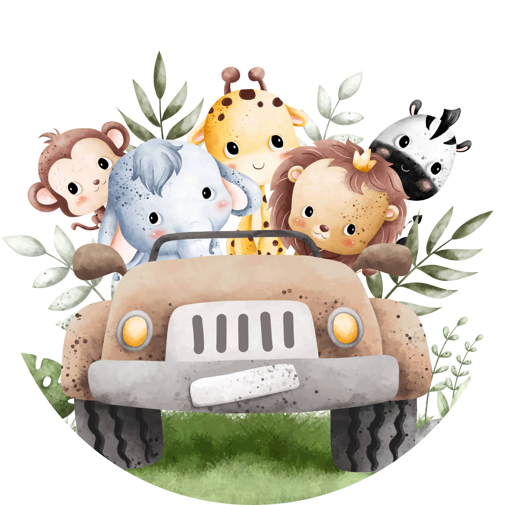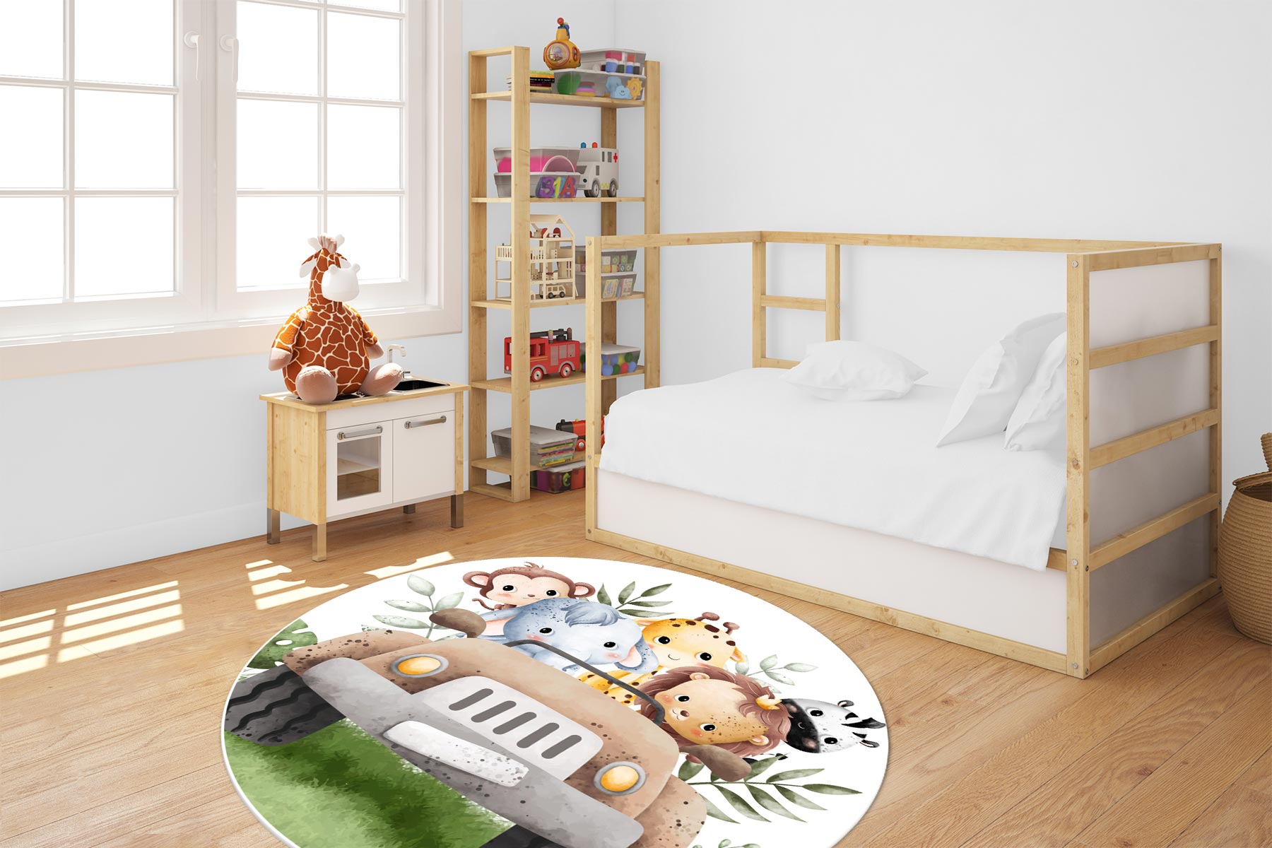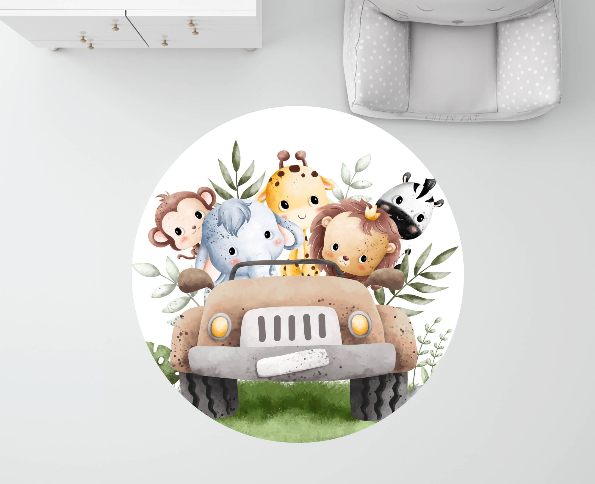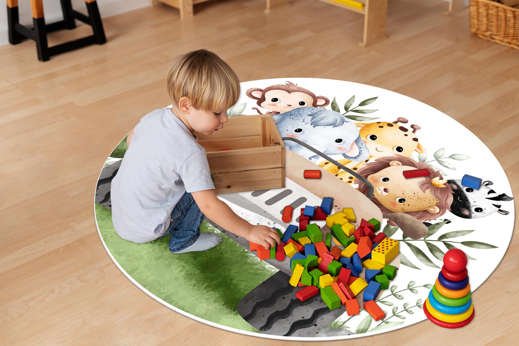 MATA WINYLOWA OKRĄGŁA dla dzieci do zabawy zwierzęta auto lew