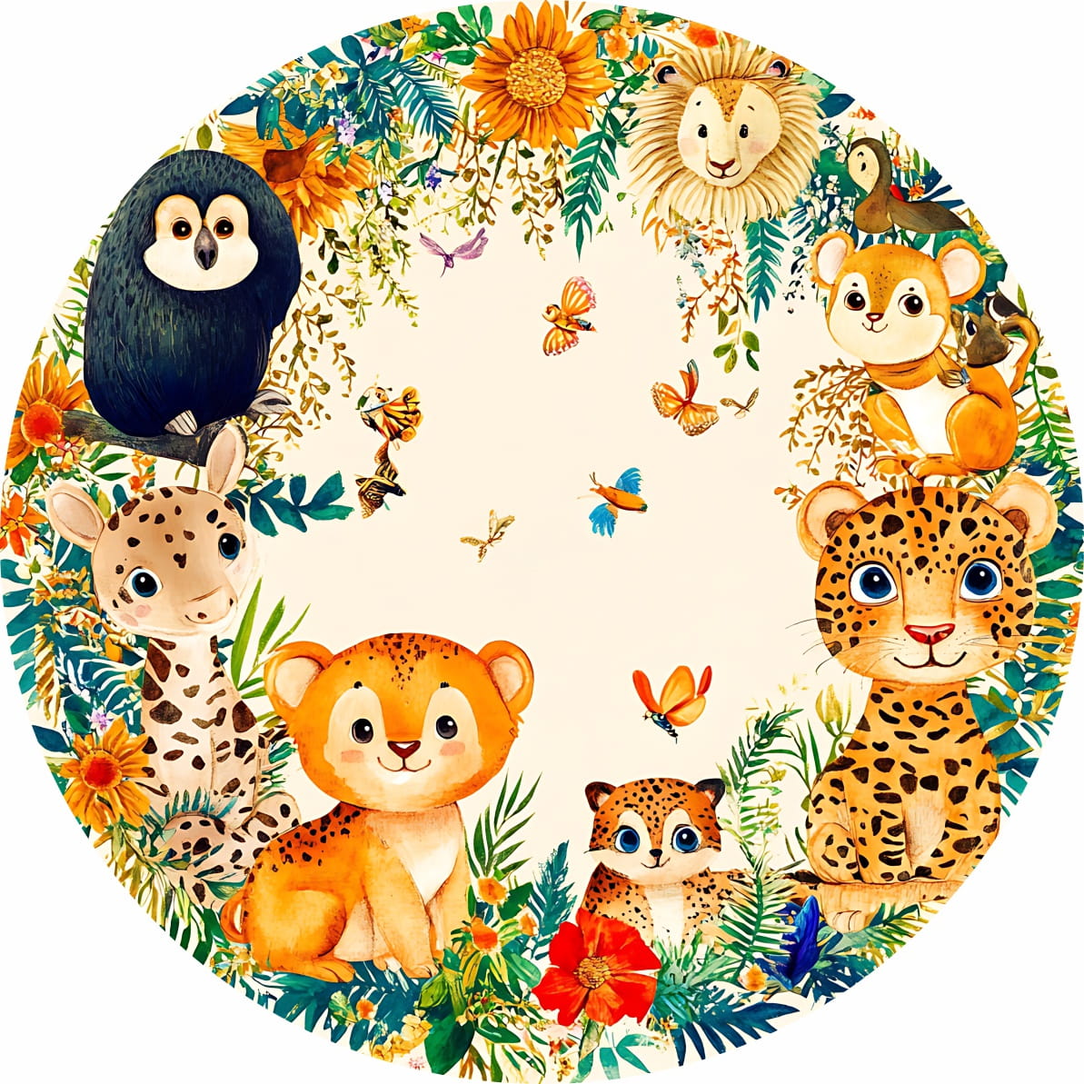 MATA WINYLOWA OKRĄGŁA dla dzieci do zabawy zwierzęta safari