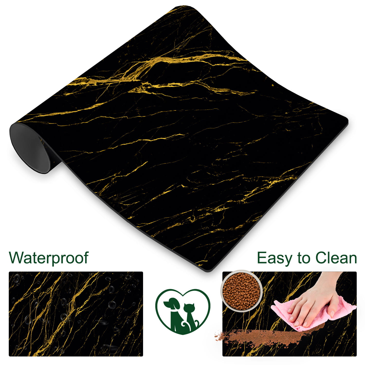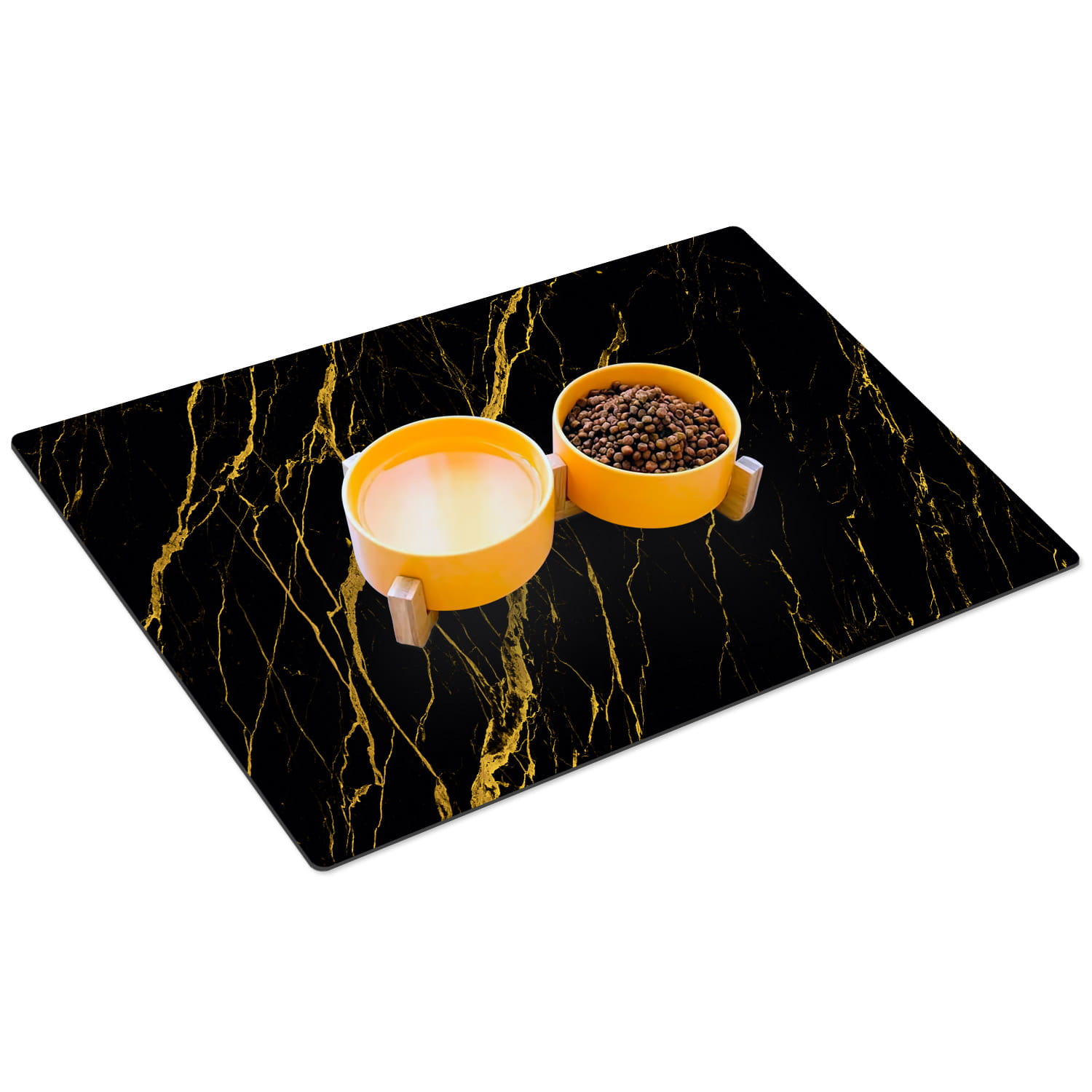 MATA WODOODPORNA pod miski dla psa kota CZARNO ZŁOTY KAMIEŃ