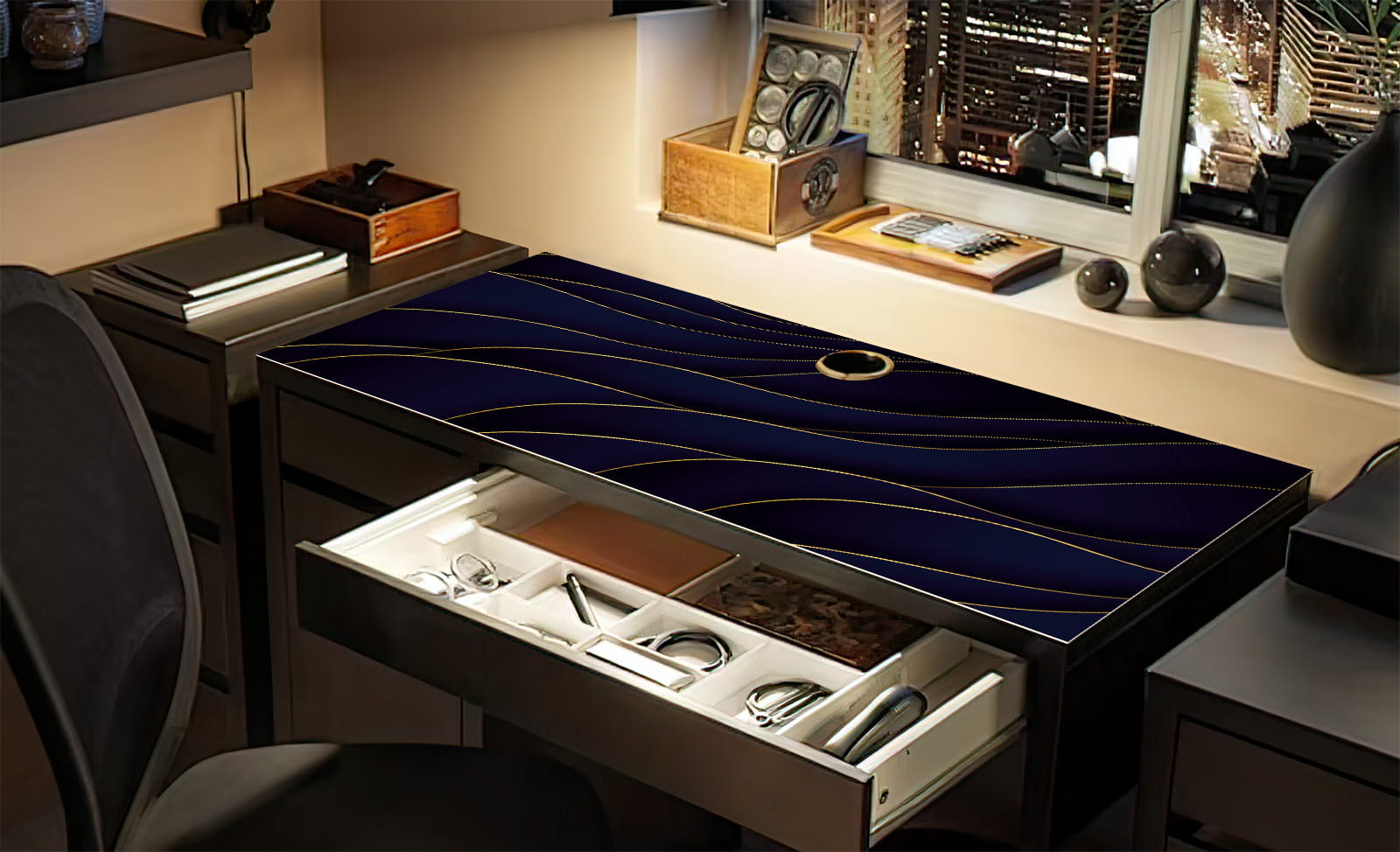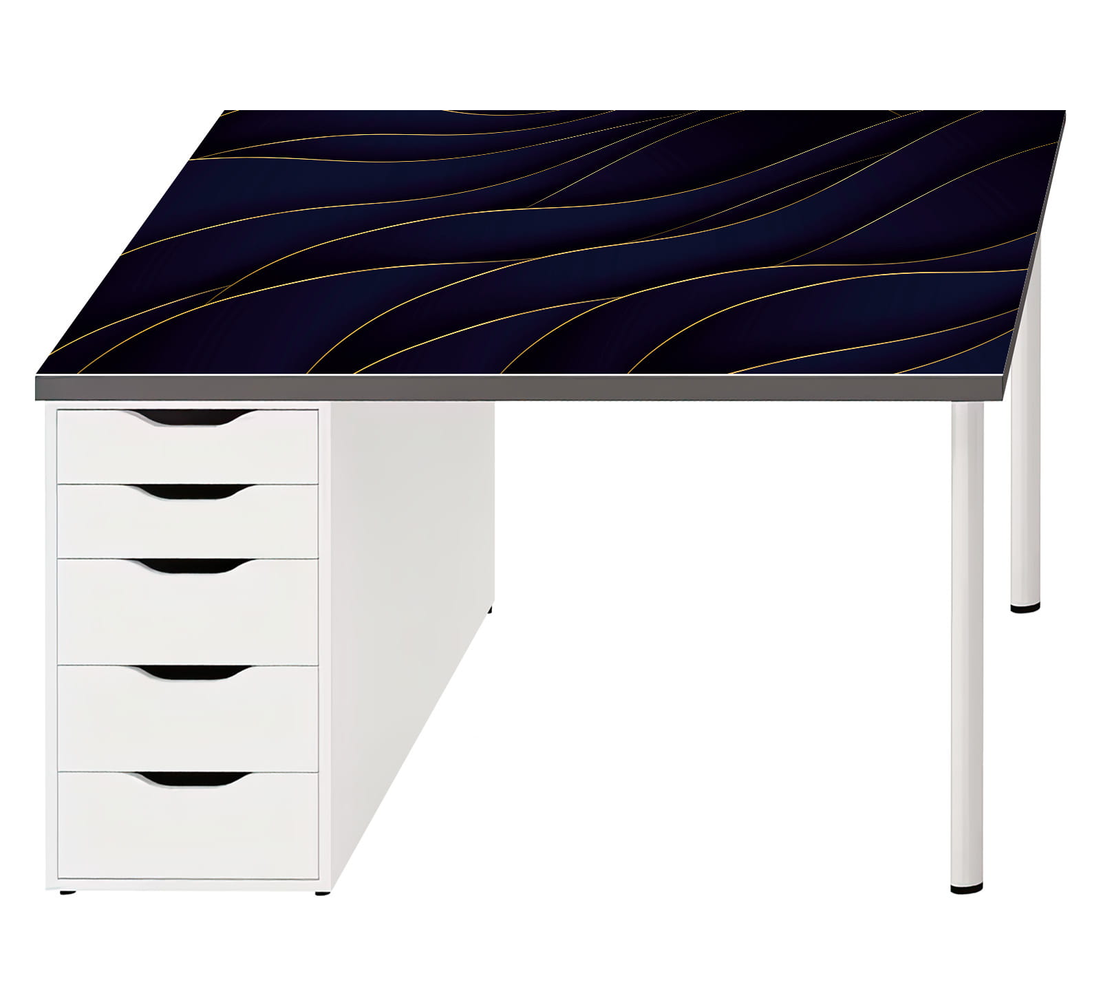 MATA do biura mata na biurko z IKEA MICKE granatowa fala złoto