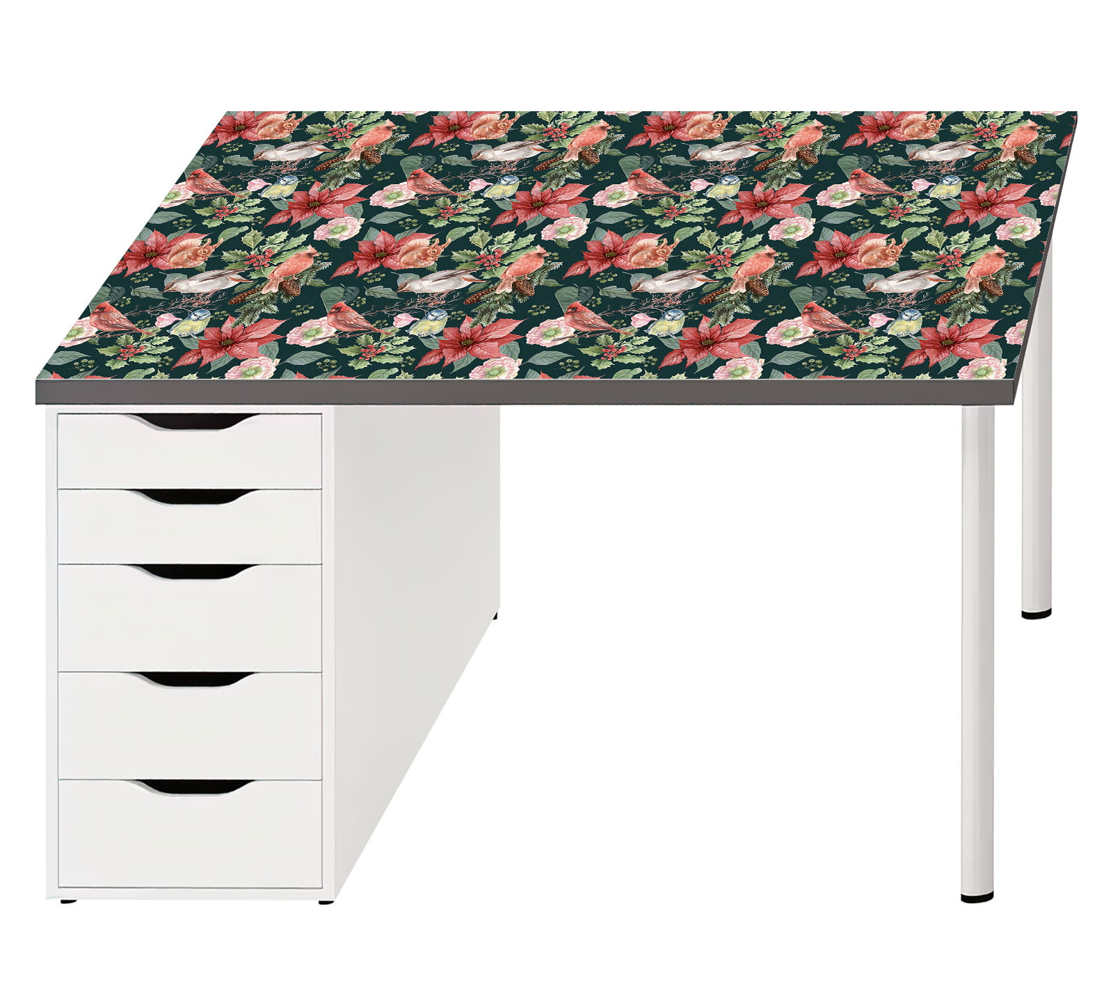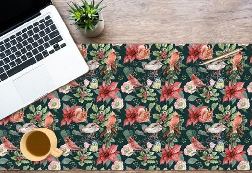 Mata antypoślizgowa na biurko vintage kwiaty ptaszki