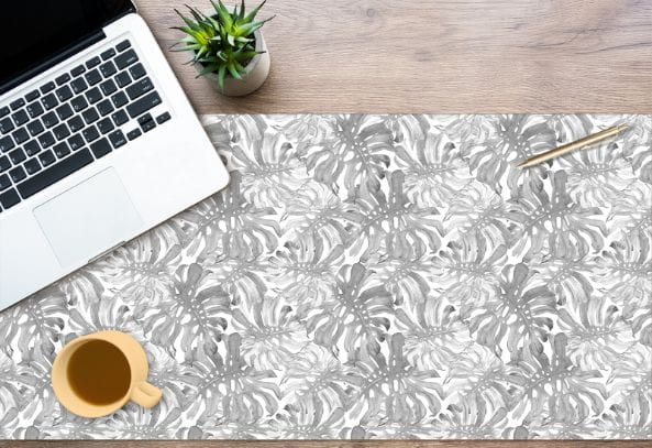 Mata antypoślizgowa ochronna na biurko monstera szare liście