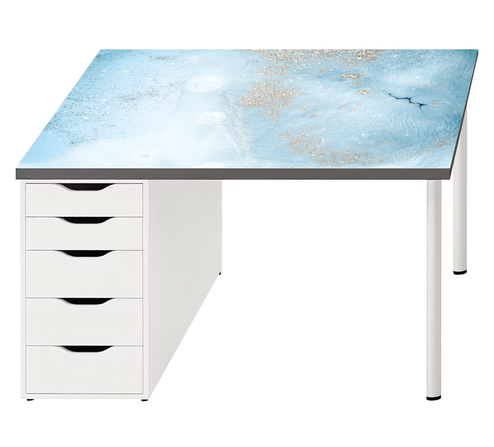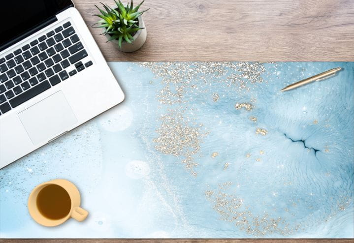 Mata antypoślizgowa ochronna na biurko niebieski marmurek złoto