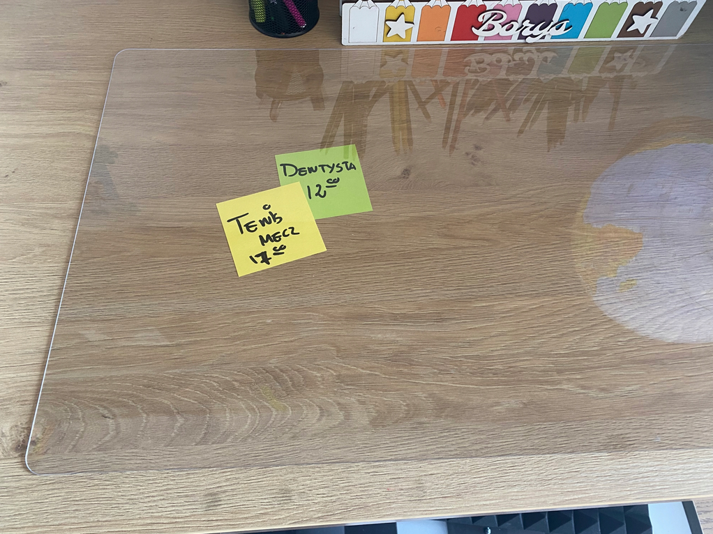 - zabezpieczają biurko, blaty, stoły, ławy, meble, podłogi,