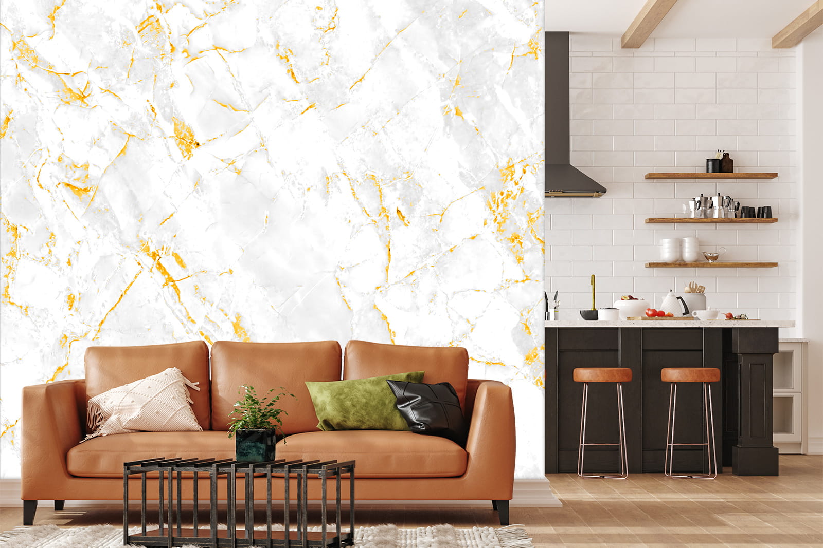 NOWOCZESNA FOTOTAPETA DO SALONU SYPIALNI MARMUR ZŁOTO