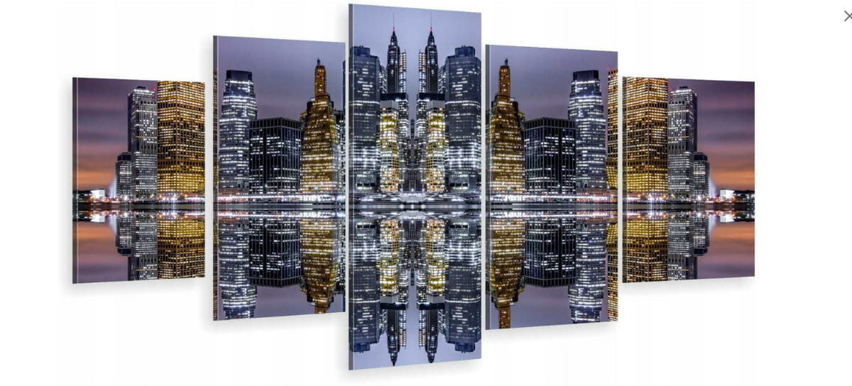NOWOCZESNY OBRAZ 5 CZĘŚCIOWY wieżowce miasto nocą