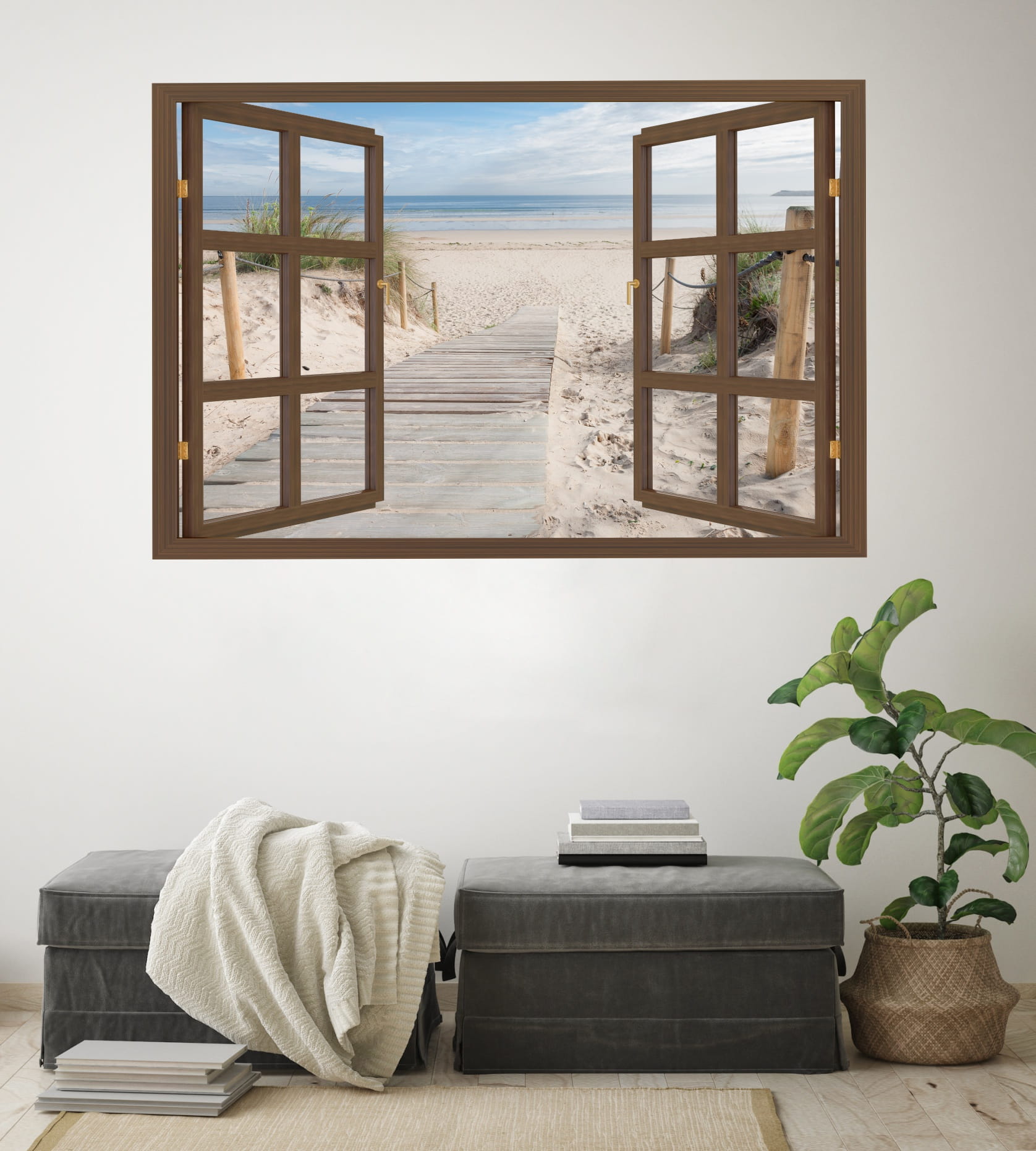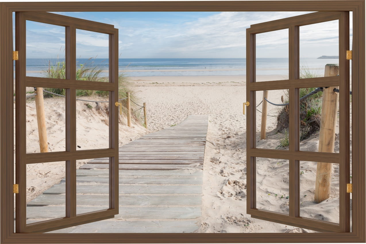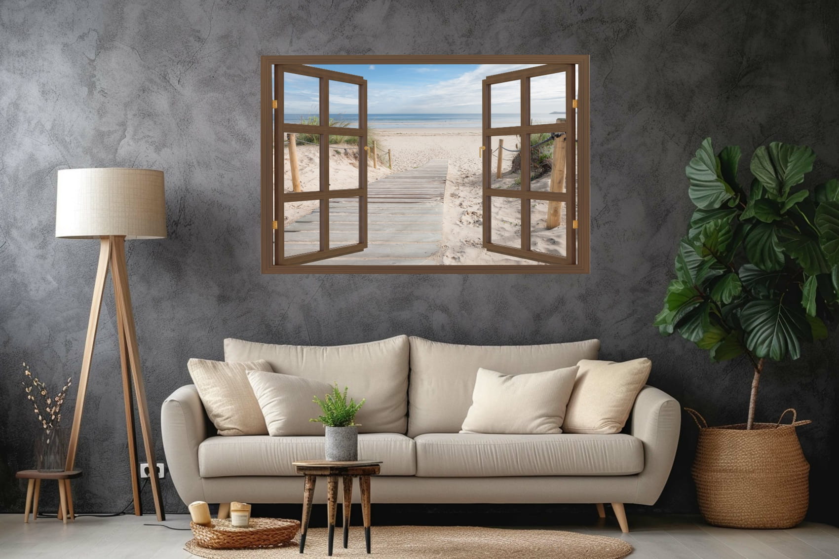 Naklejka ścienna do salonu WIDOK PRZEZ BRĄZOWE OKNO plaża morze piasek