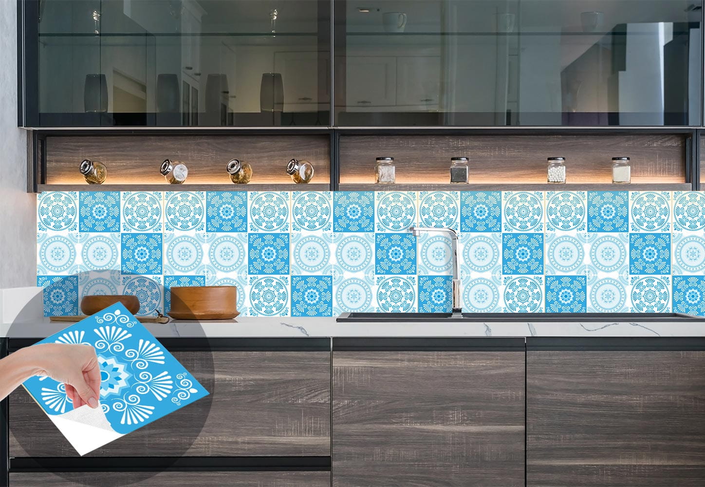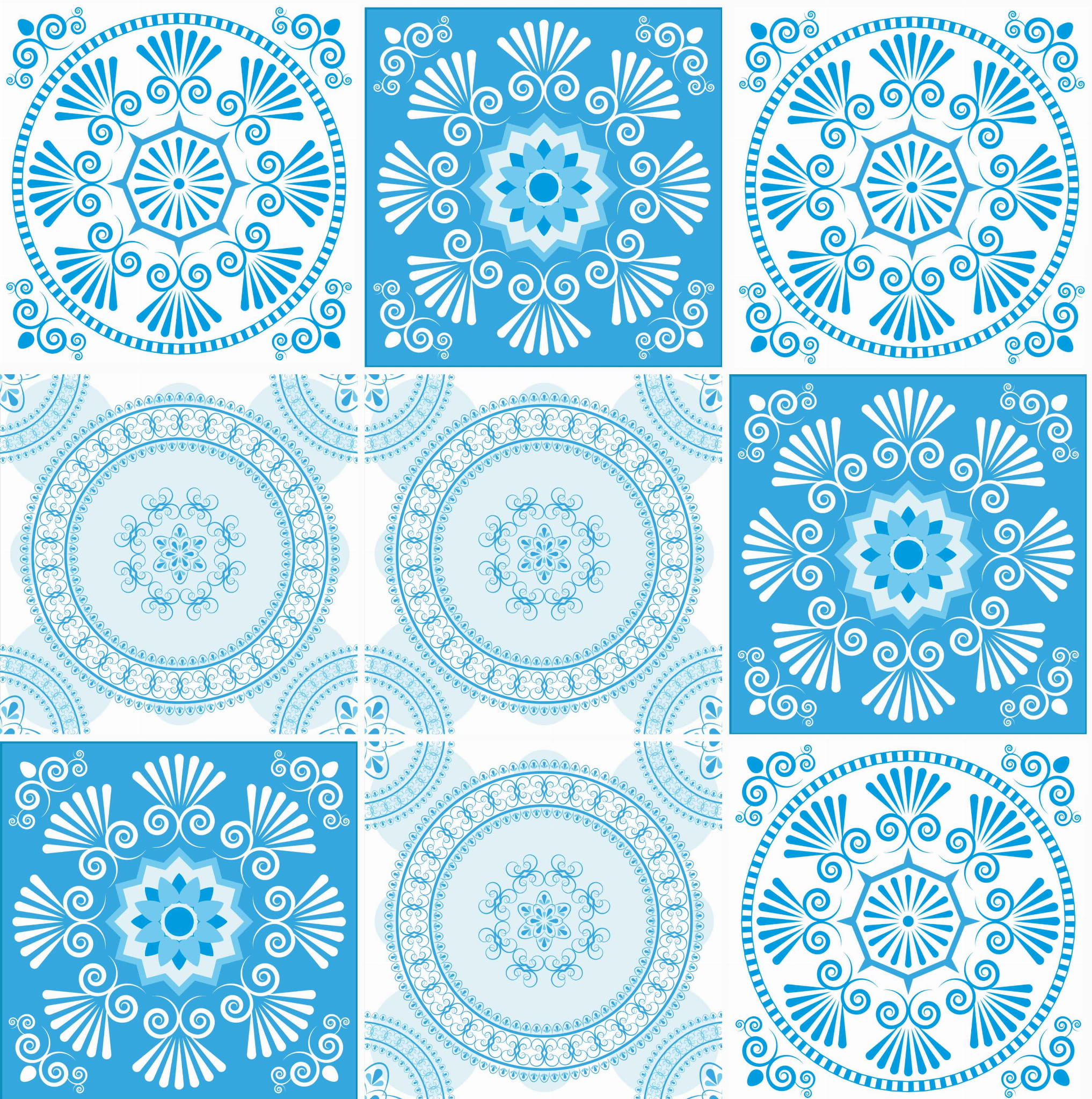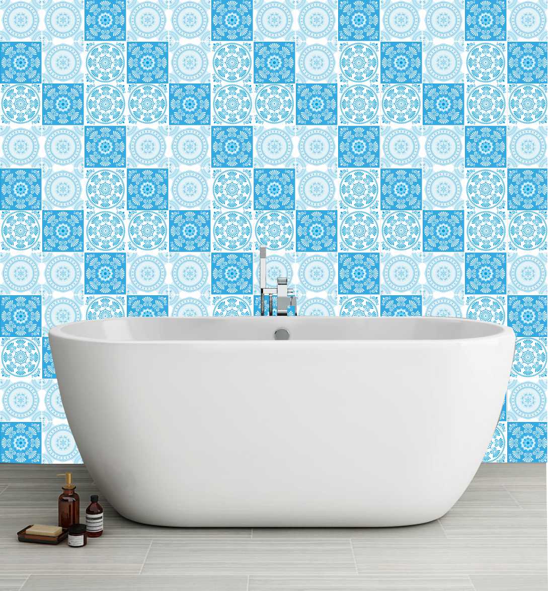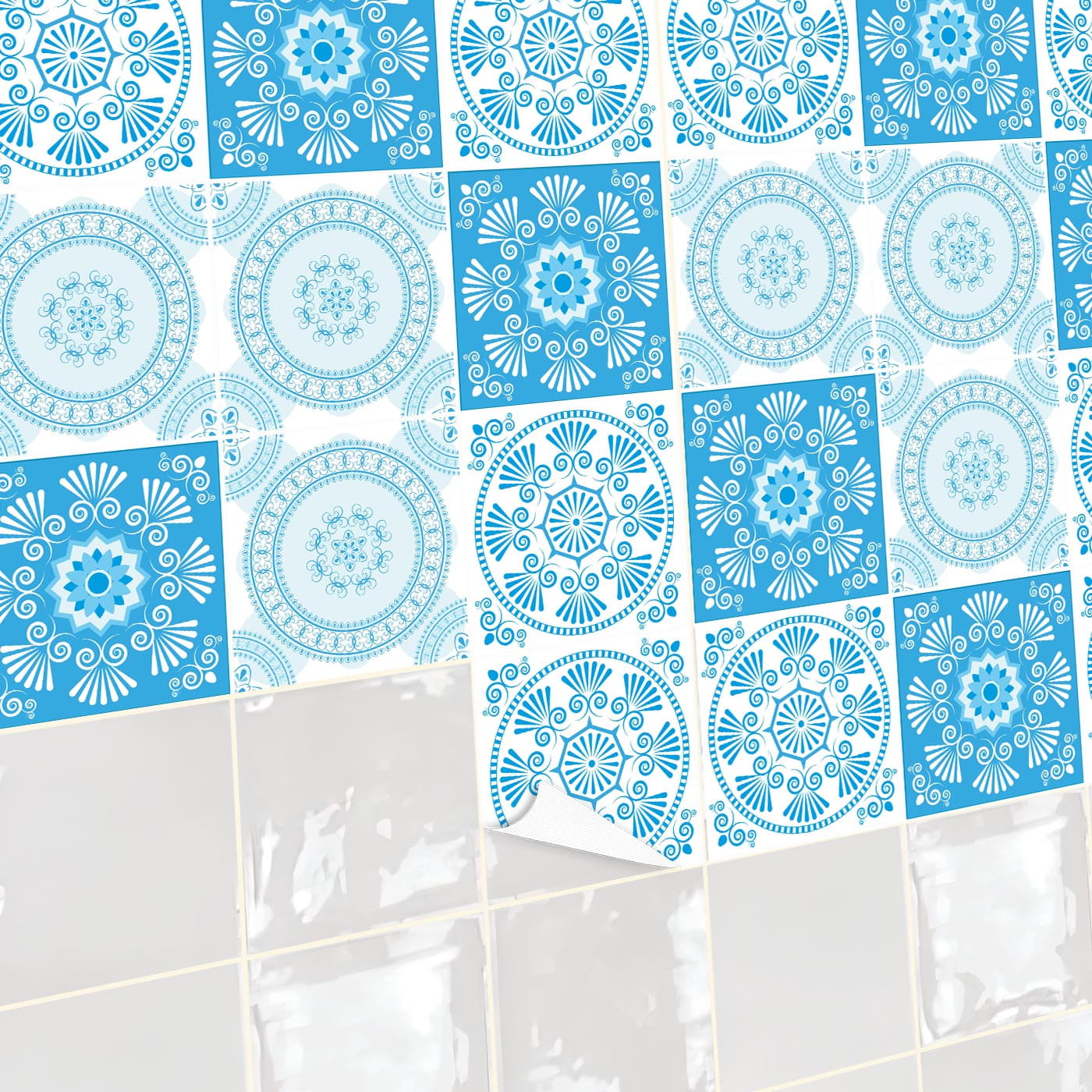 Naklejki na płytki kafelki odklej przyklej BŁĘKITNY ORNAMENT KWIATY