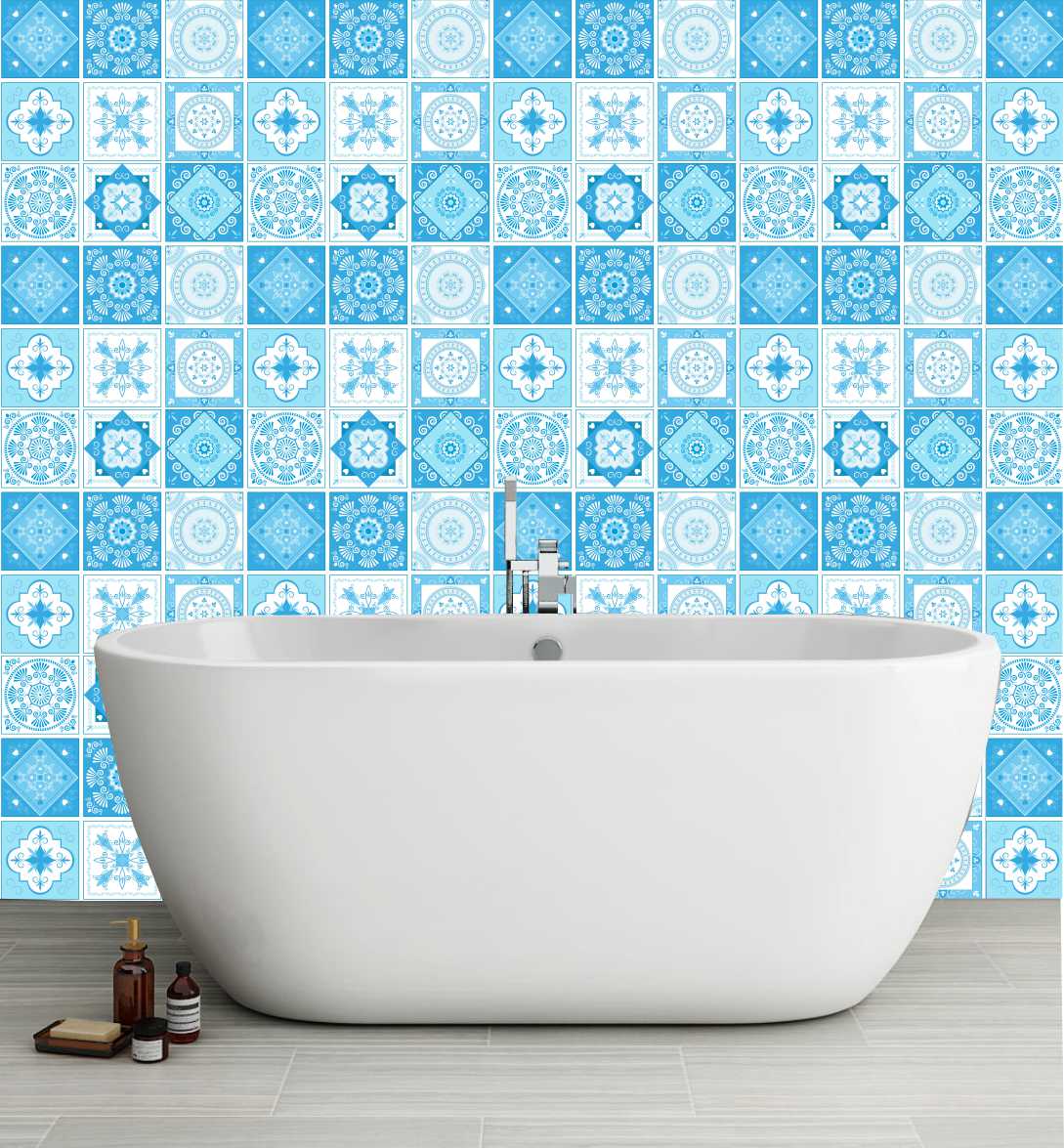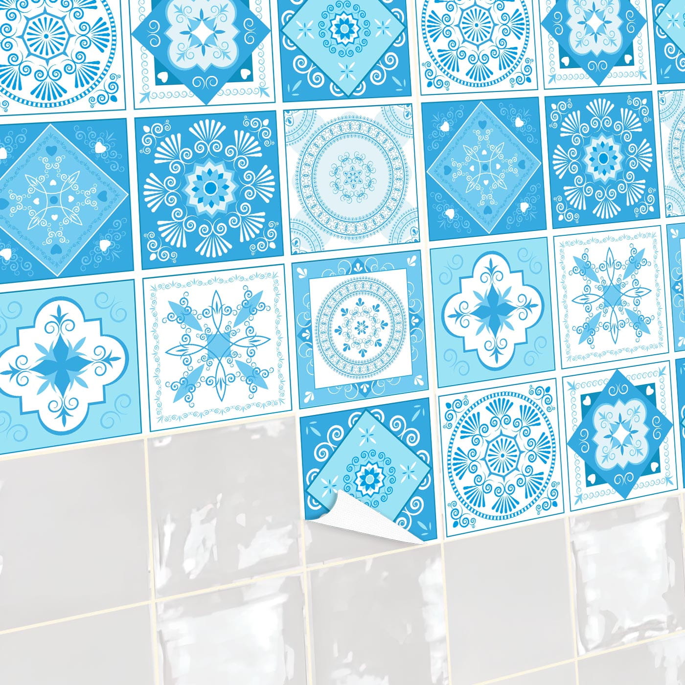 Naklejki na płytki kafelki ścienne samoprzylepne morski patchwork
