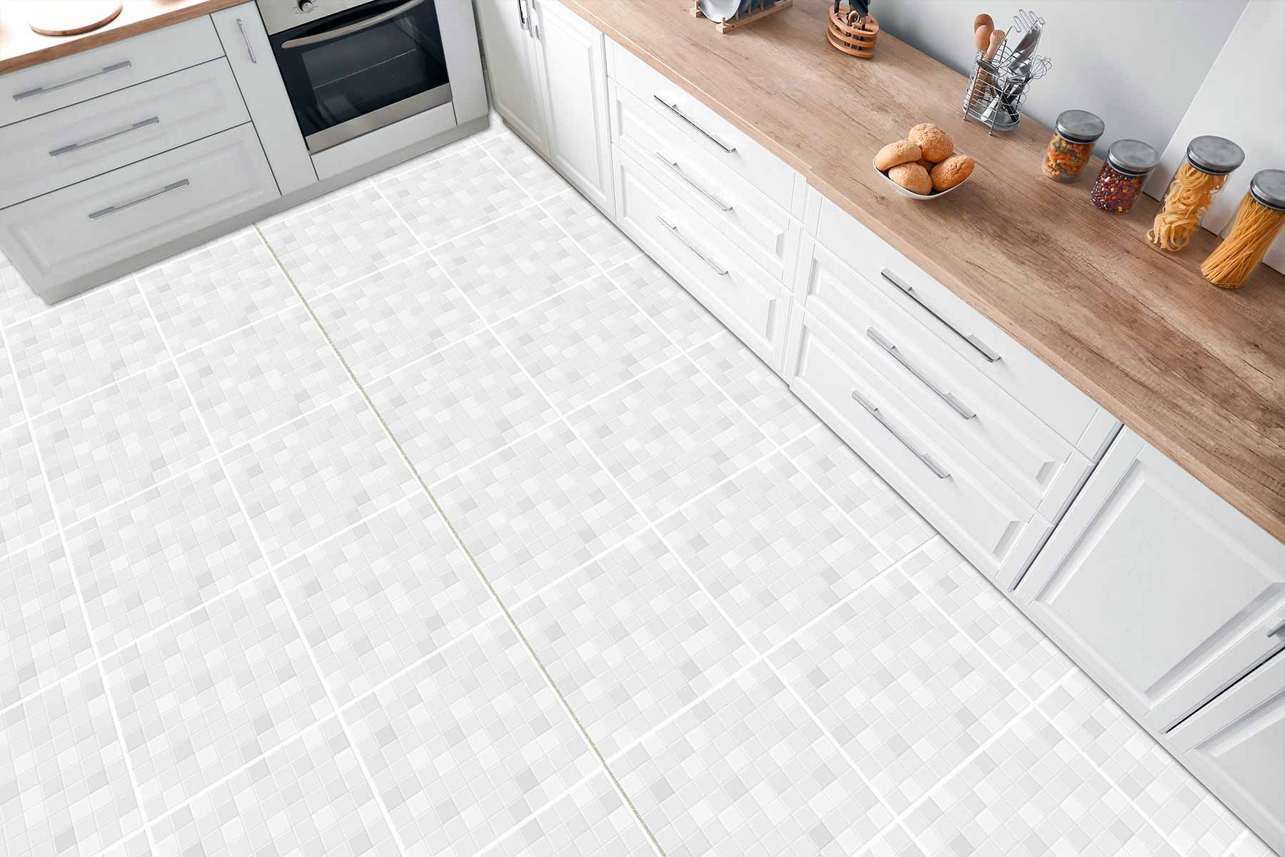 Naklejki na płytki podłogowe kuchenne łazienkowe samoprzylepn płytki biale kwadraty