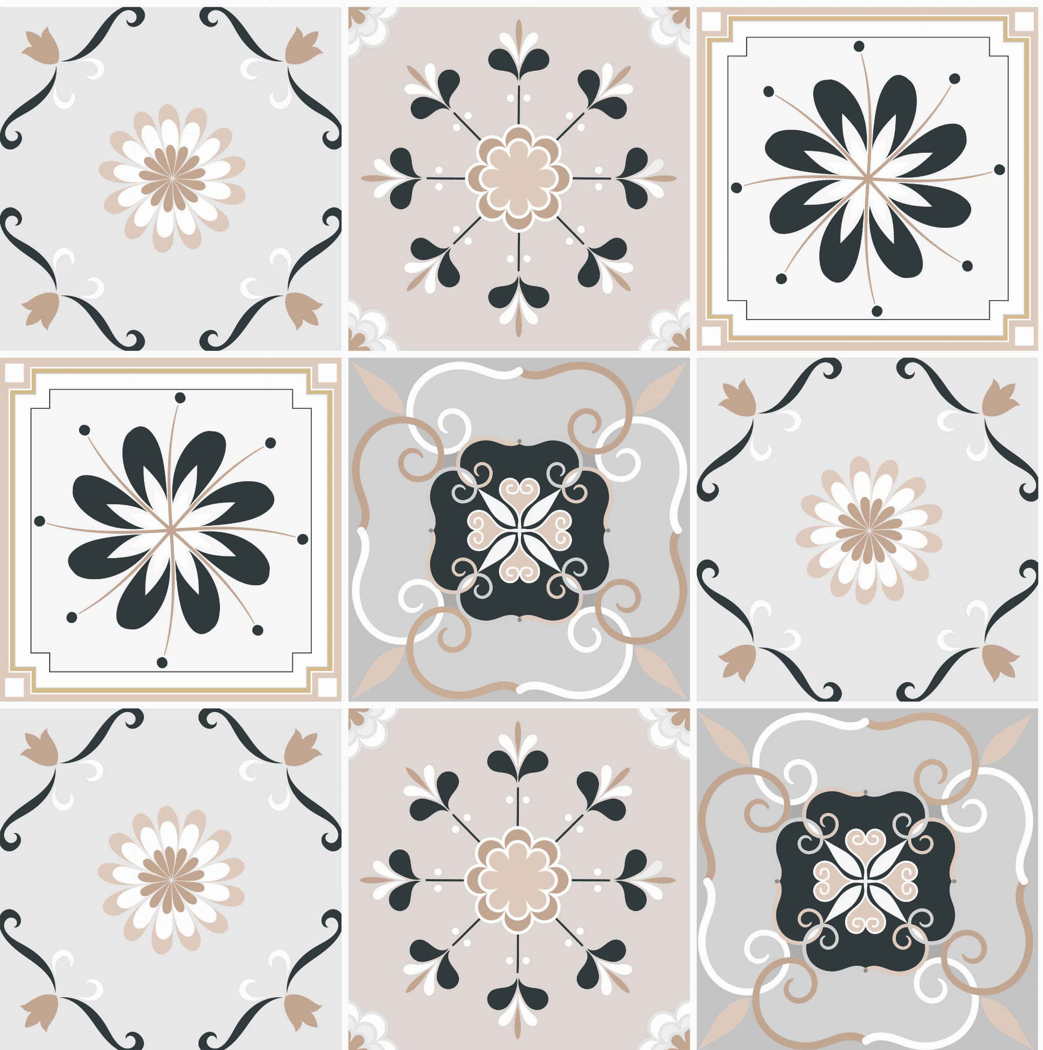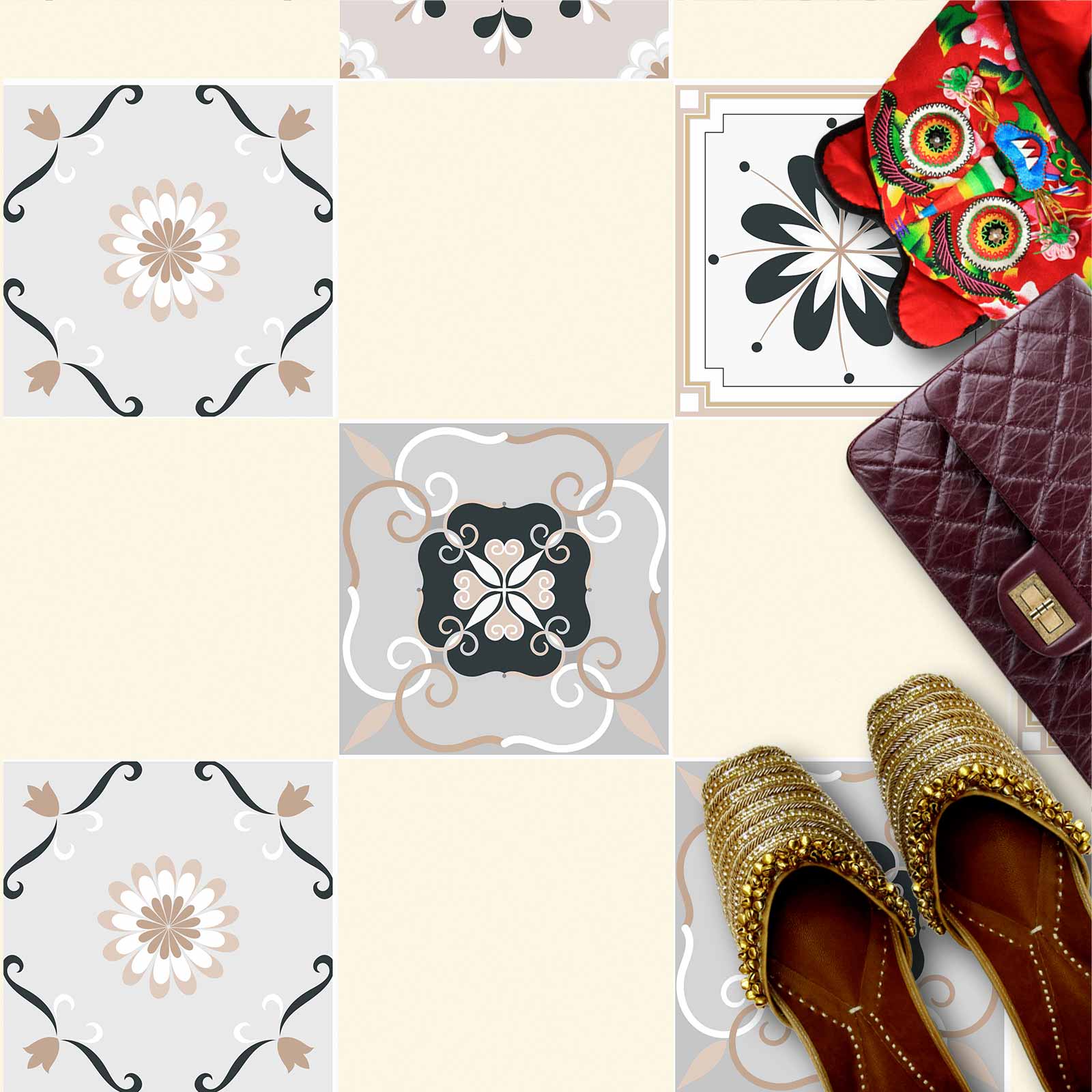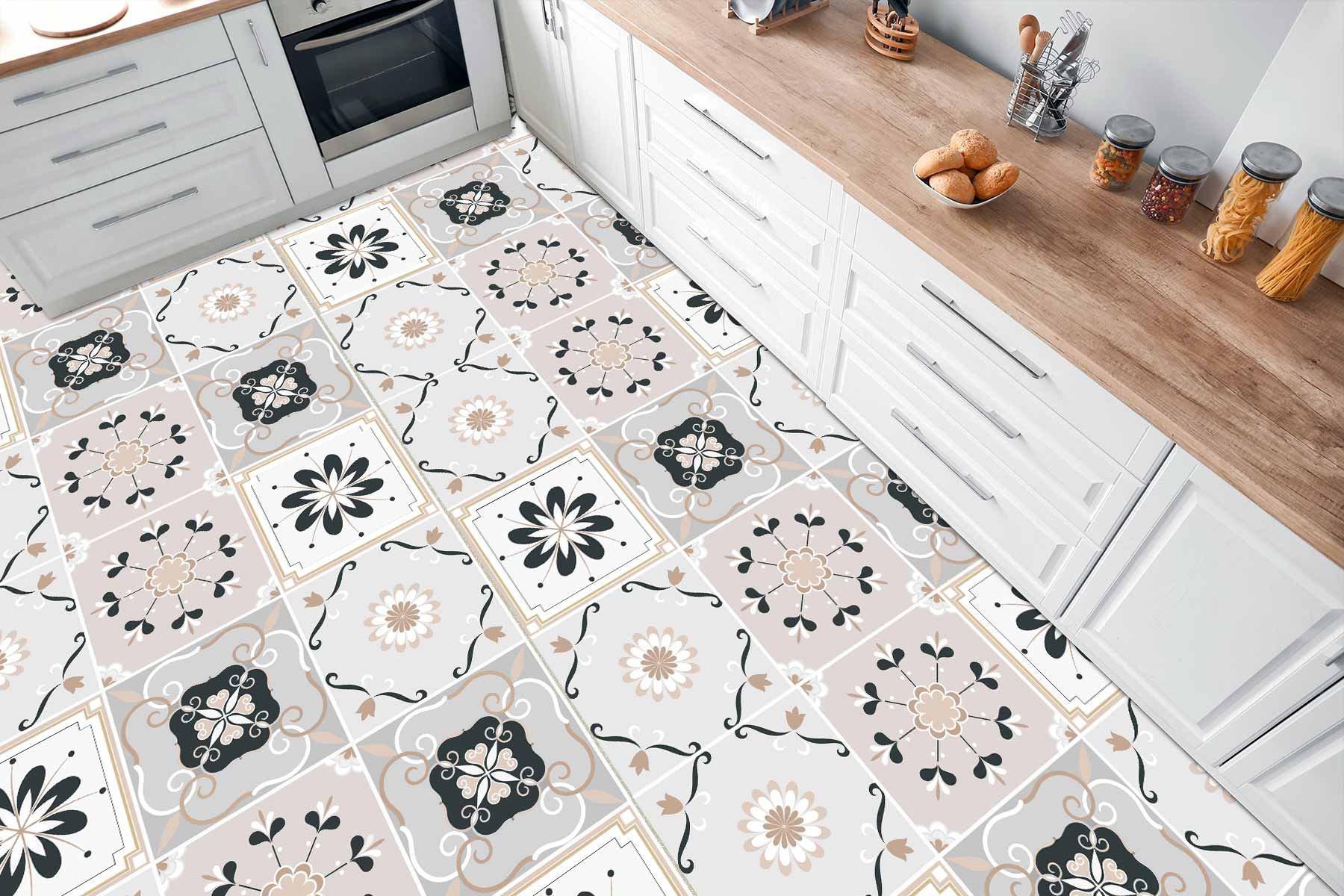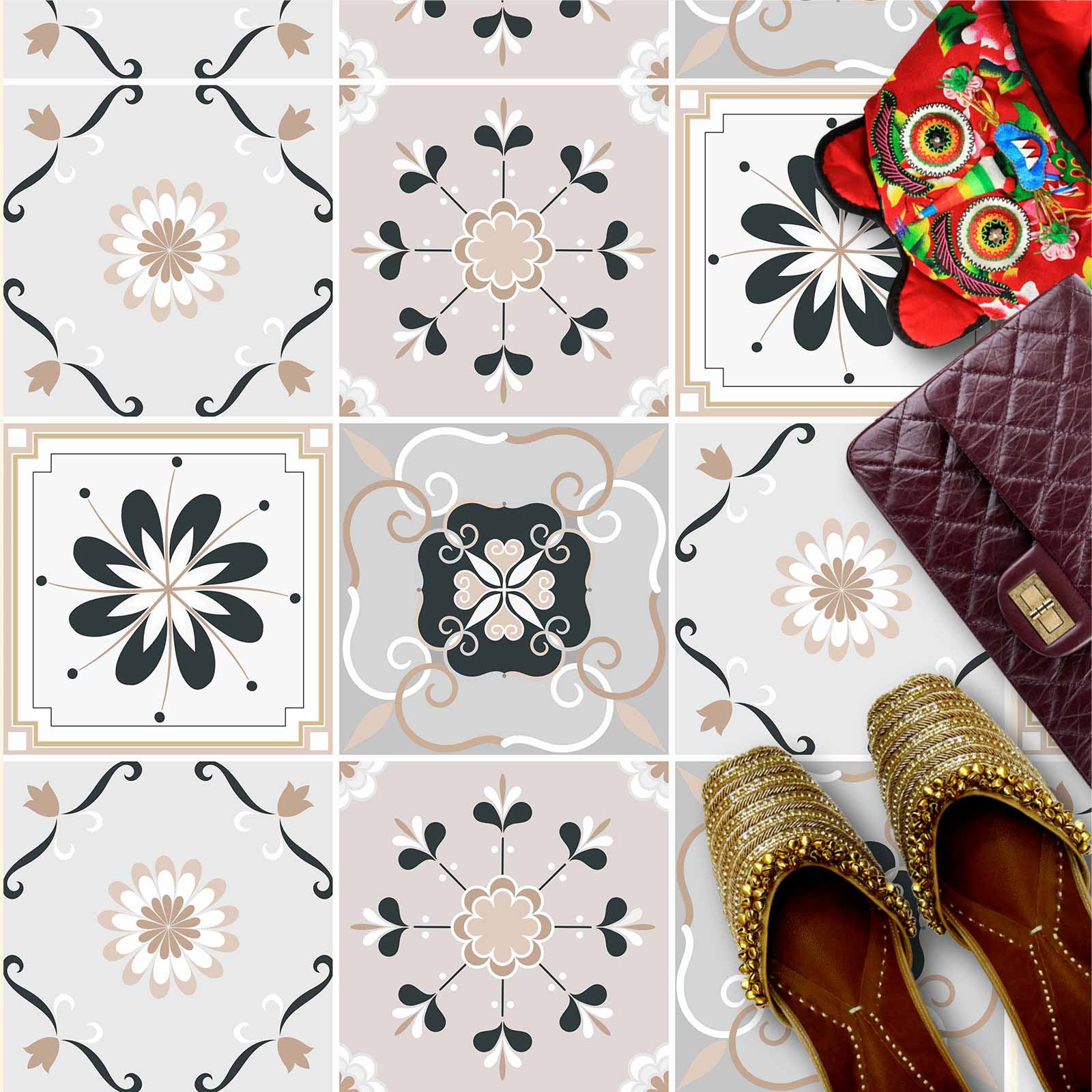 Naklejki na płytki podłogowe kuchenne łazienkowe samoprzylepne arabski wzór w beżowe kwiaty
