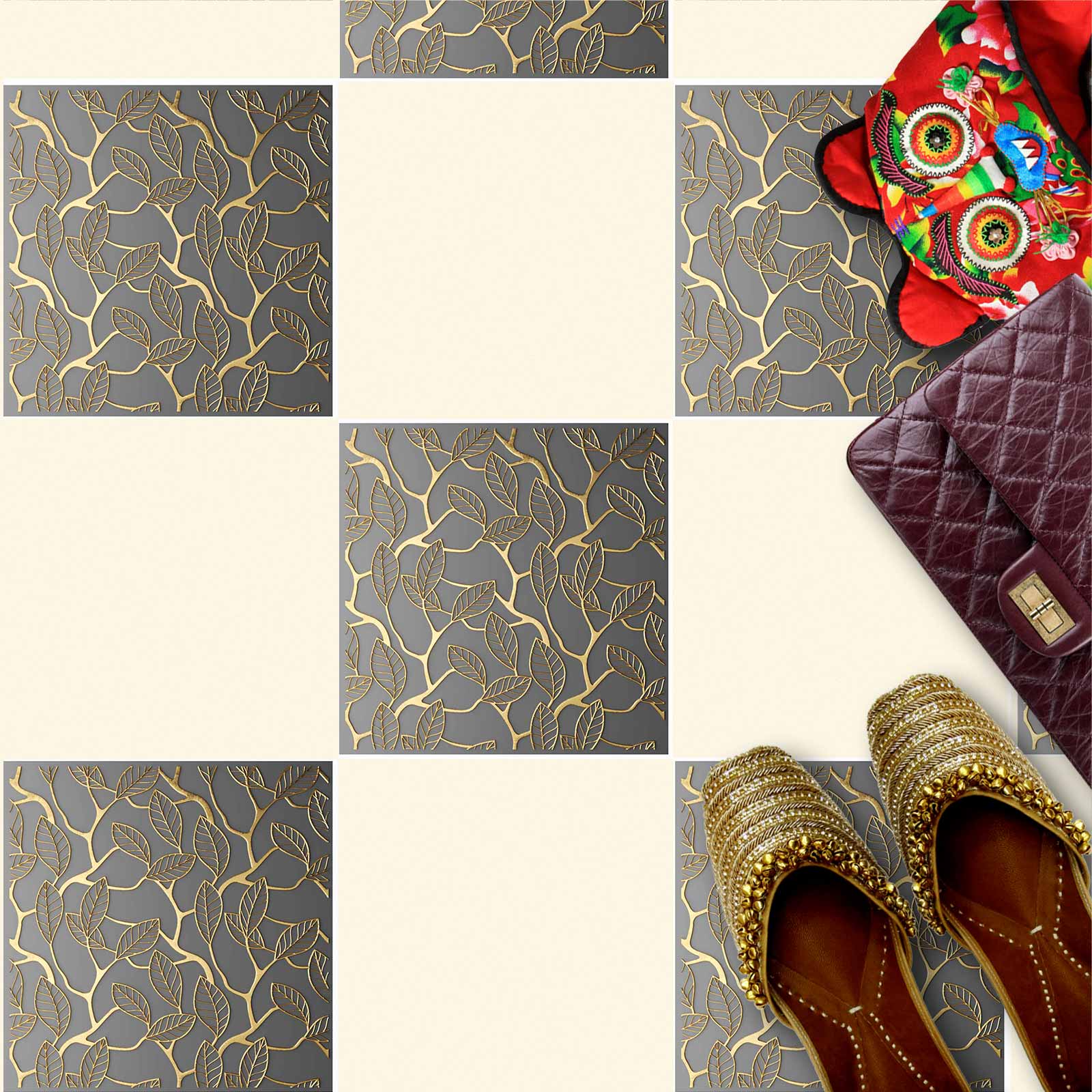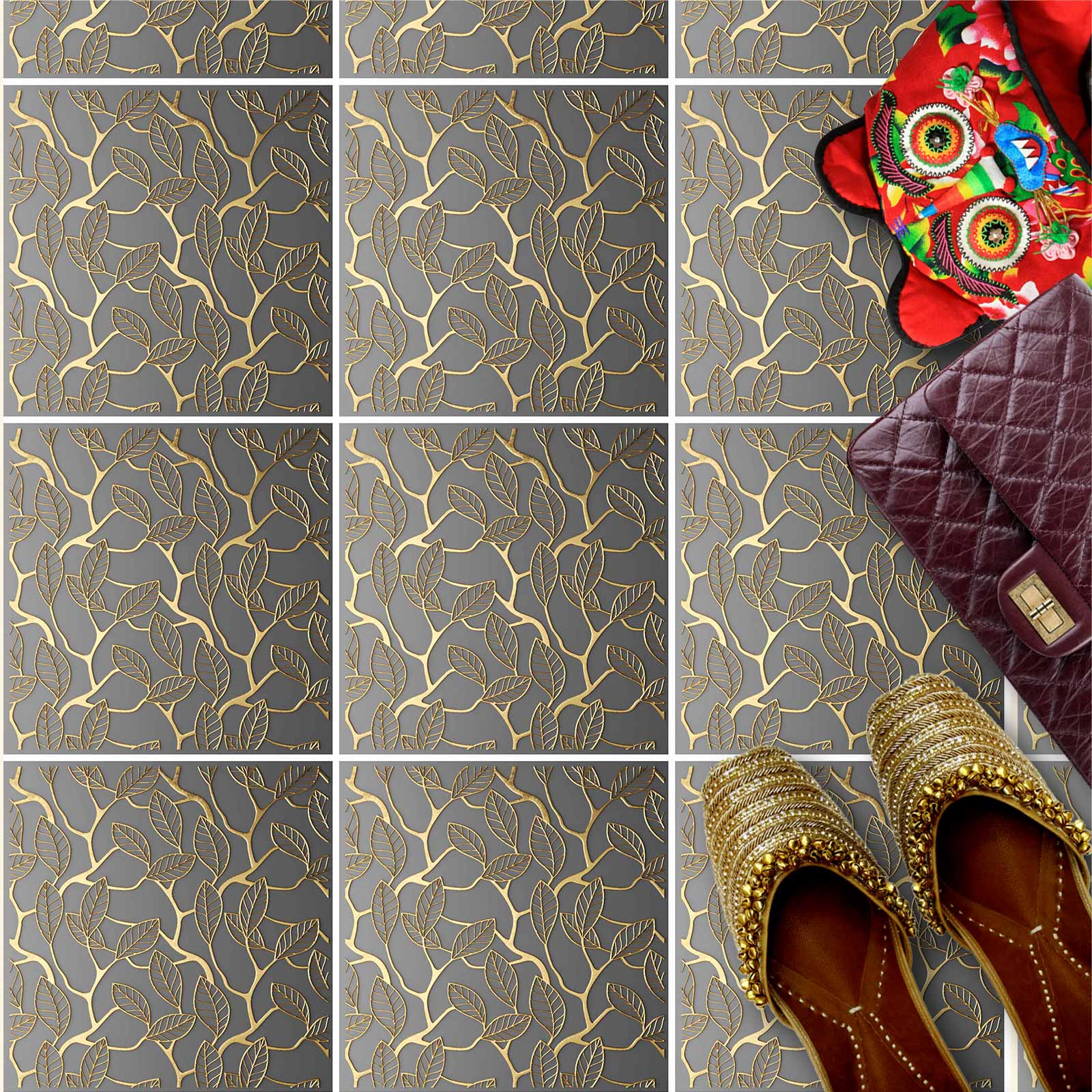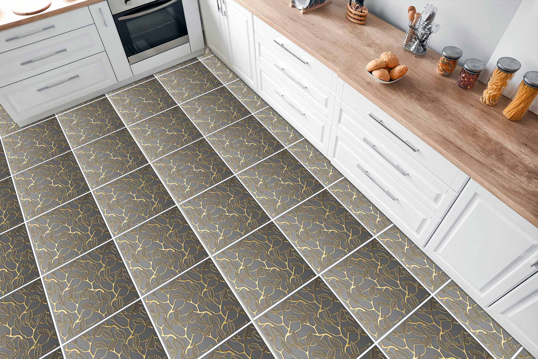 Naklejki na płytki podłogowe kuchenne łazienkowe samoprzylepne delikatne złote kwiatowe linie