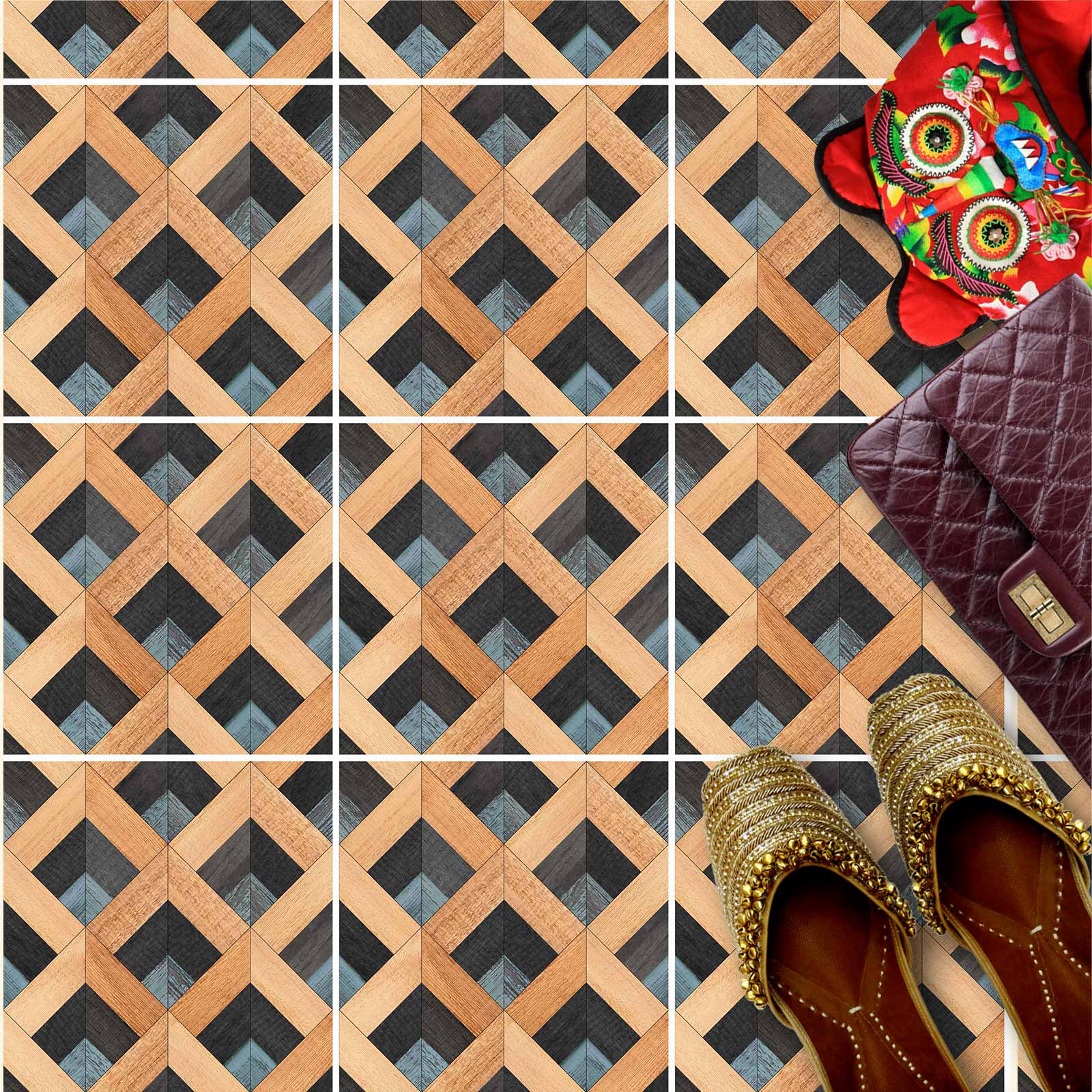 Naklejki na płytki podłogowe kuchenne łazienkowe samoprzylepne drewniana mozaika