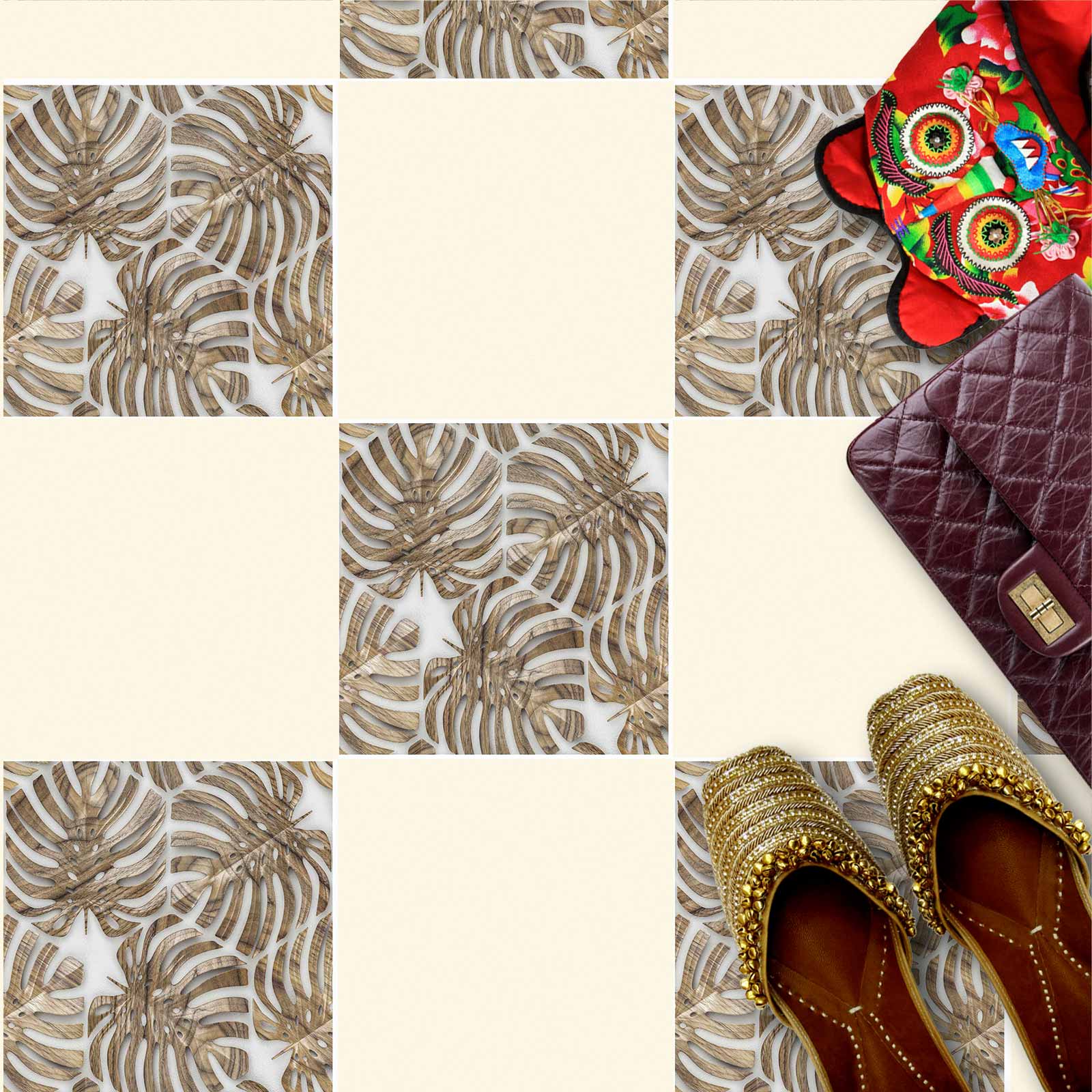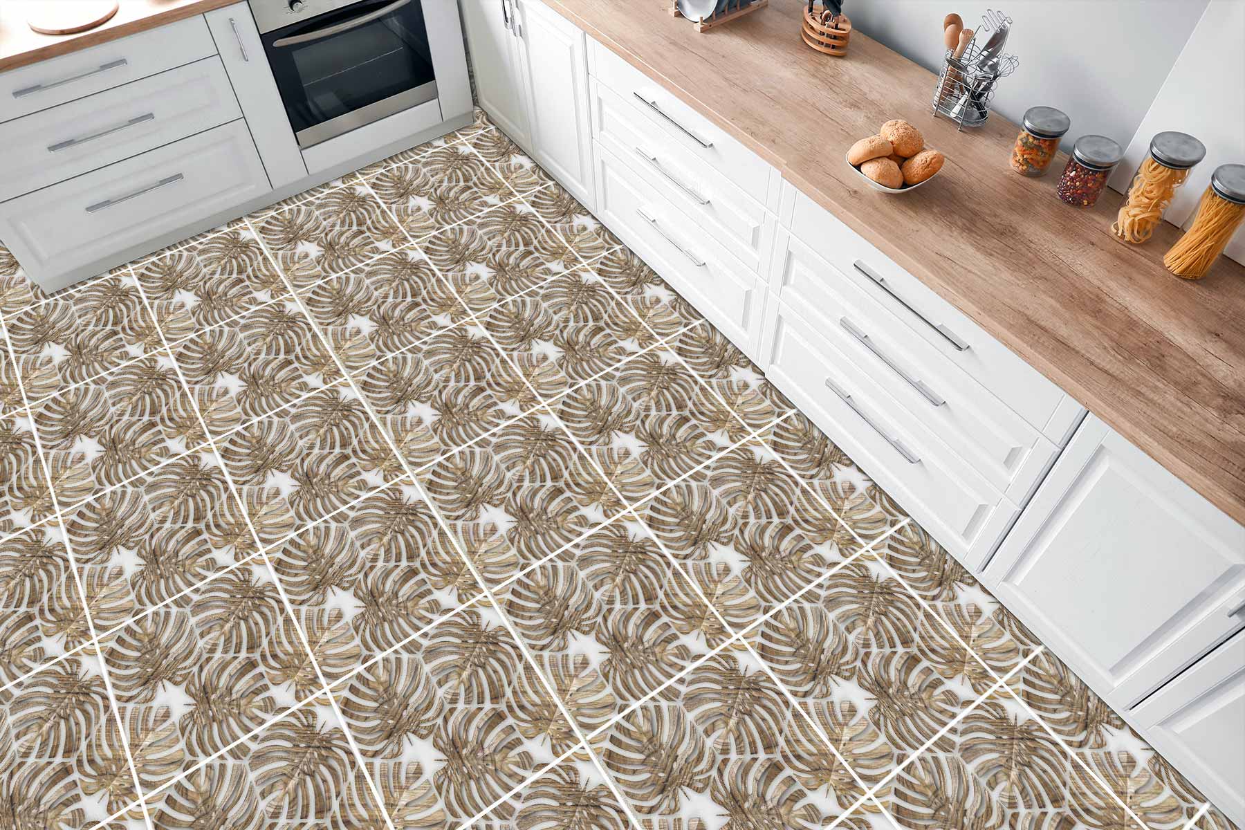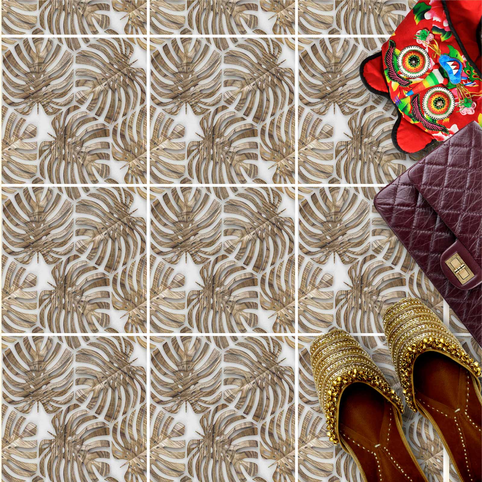 Naklejki na płytki podłogowe kuchenne łazienkowe samoprzylepne drewniane liście monstery