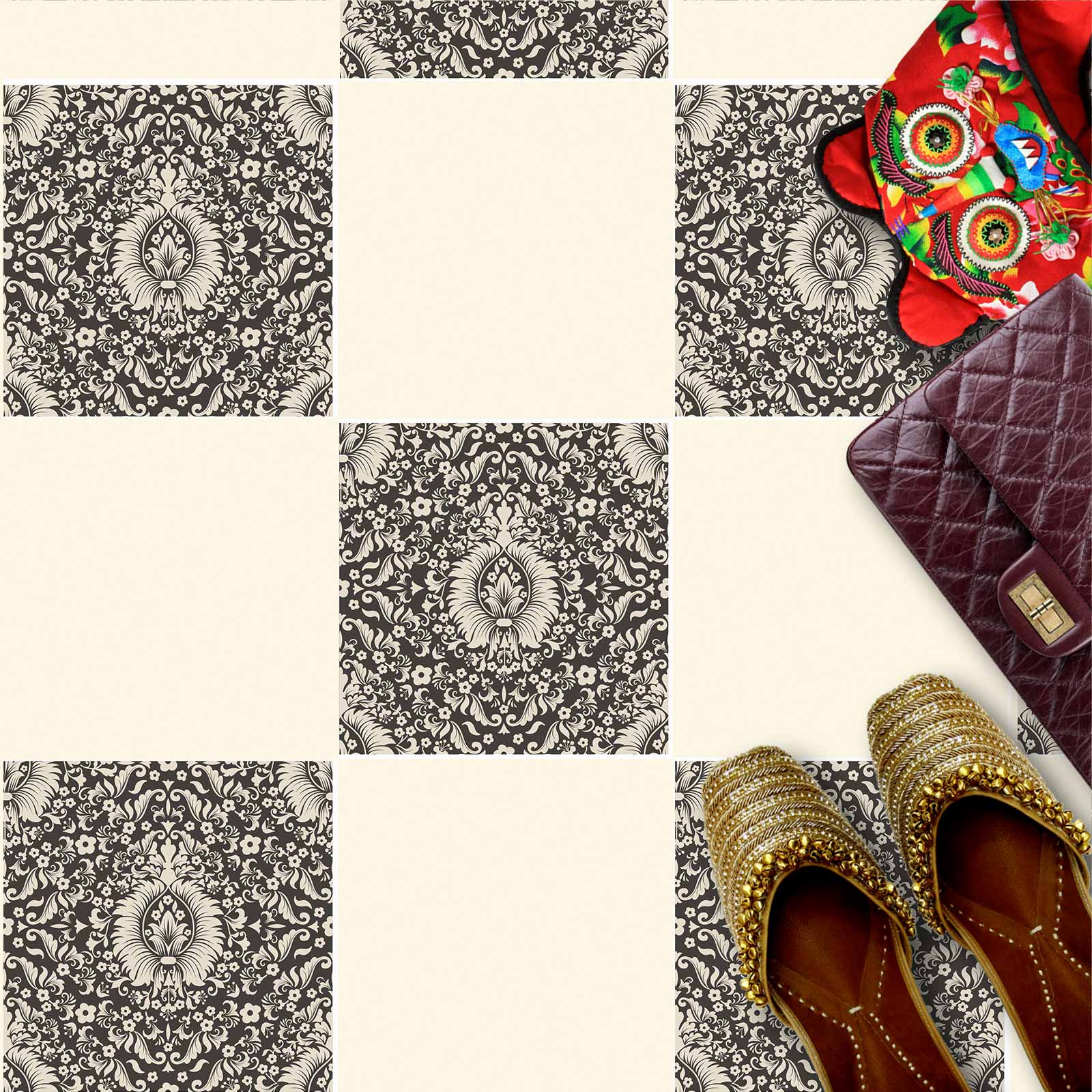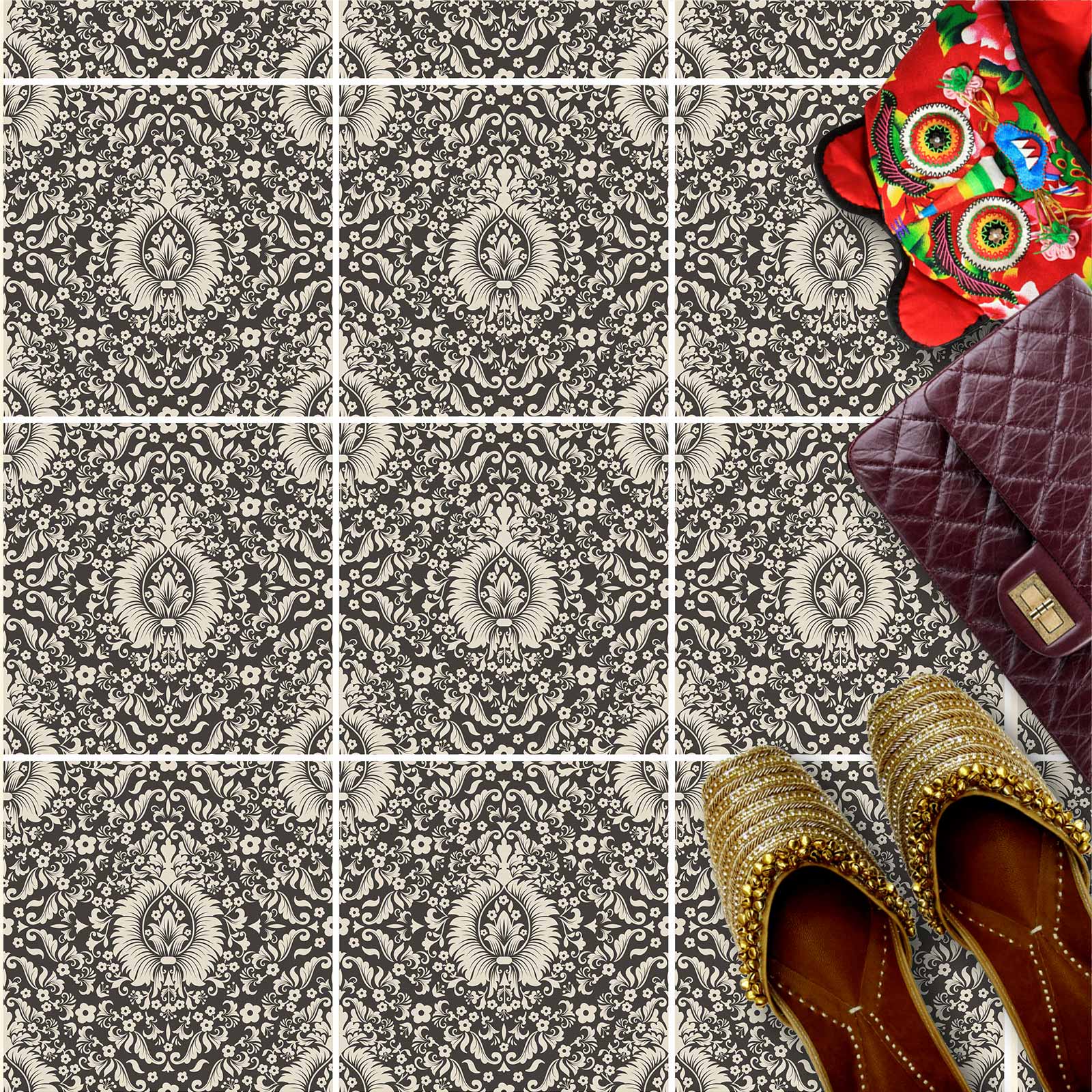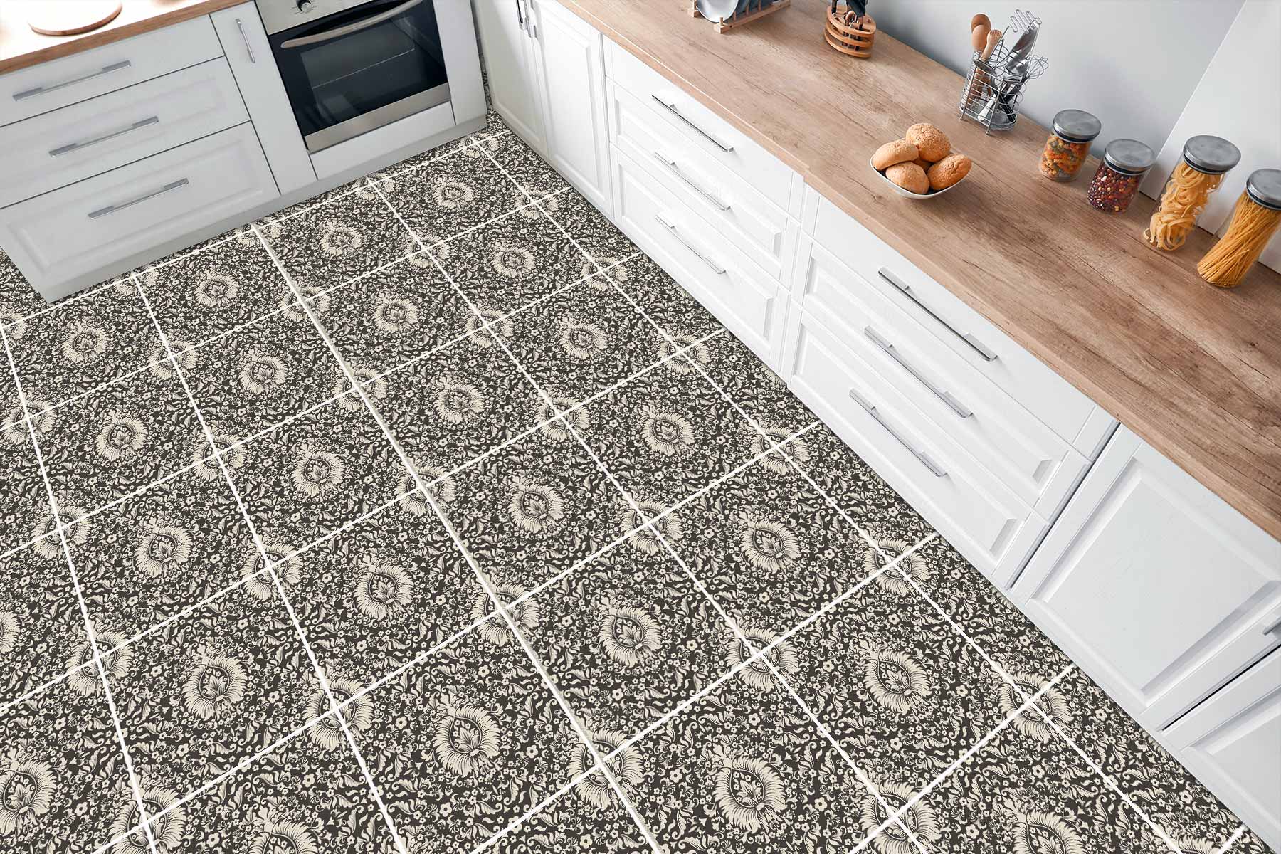 Naklejki na płytki podłogowe kuchenne łazienkowe samoprzylepne eleganckie czarno białe elementy