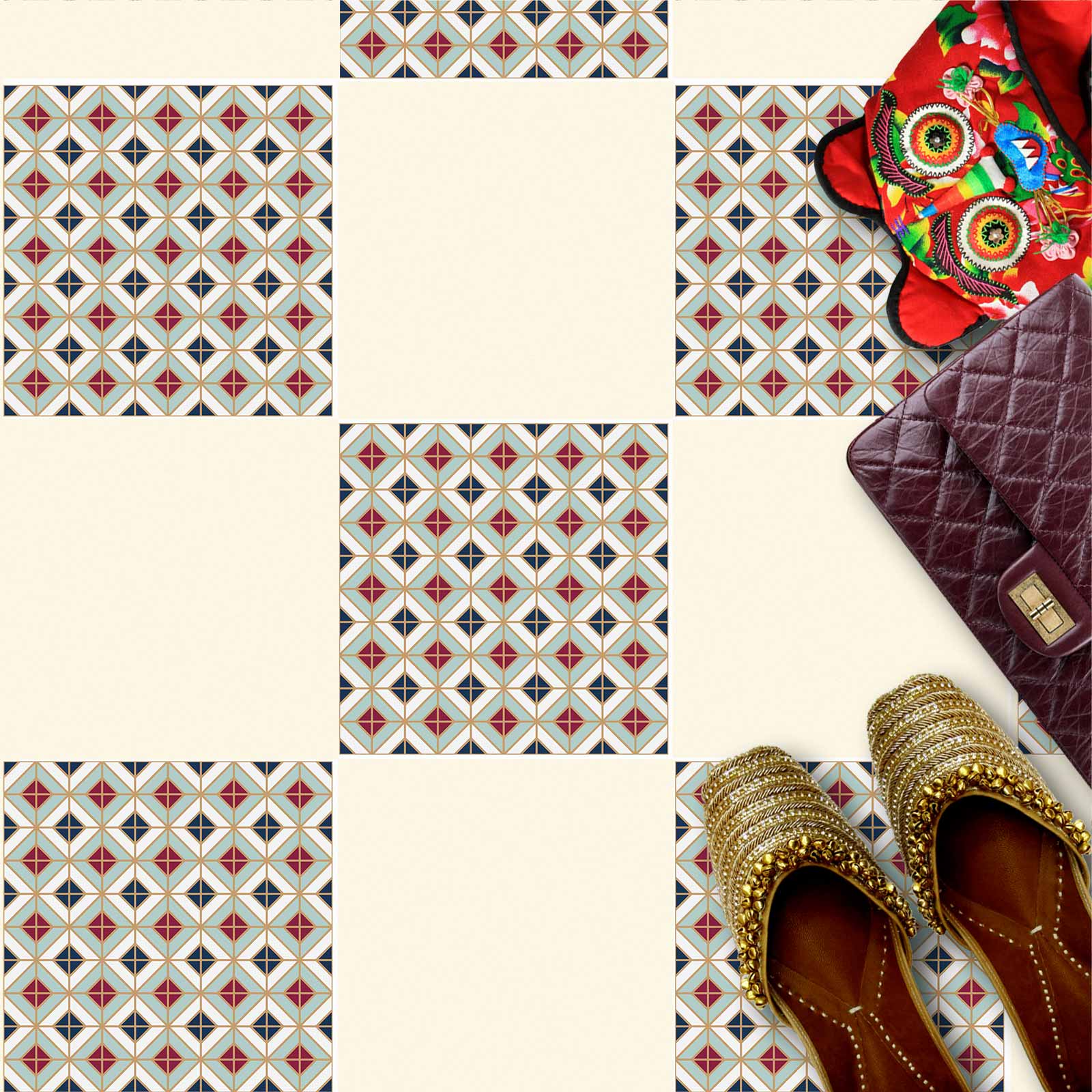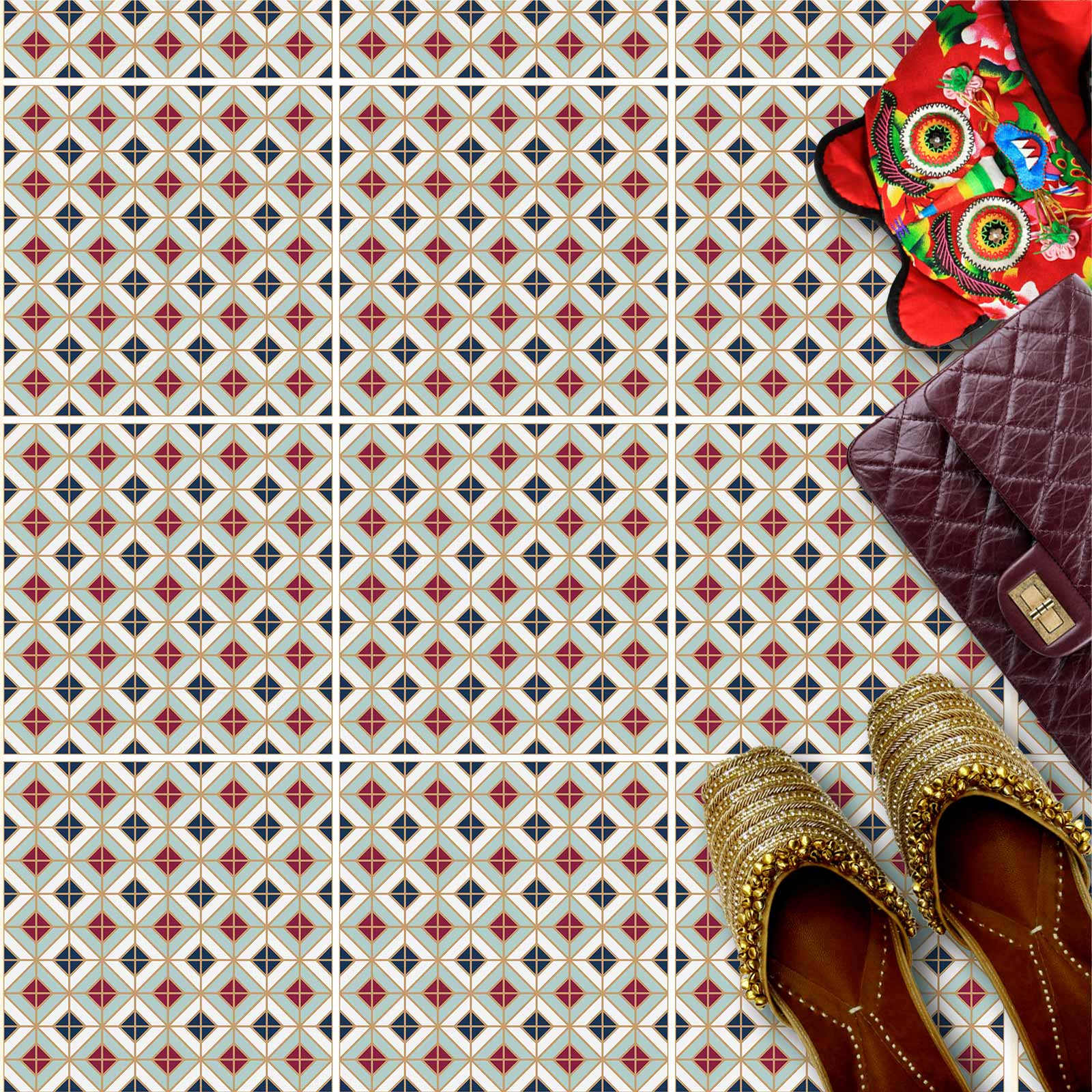 Naklejki na płytki podłogowe kuchenne łazienkowe samoprzylepne geometryczny wzór