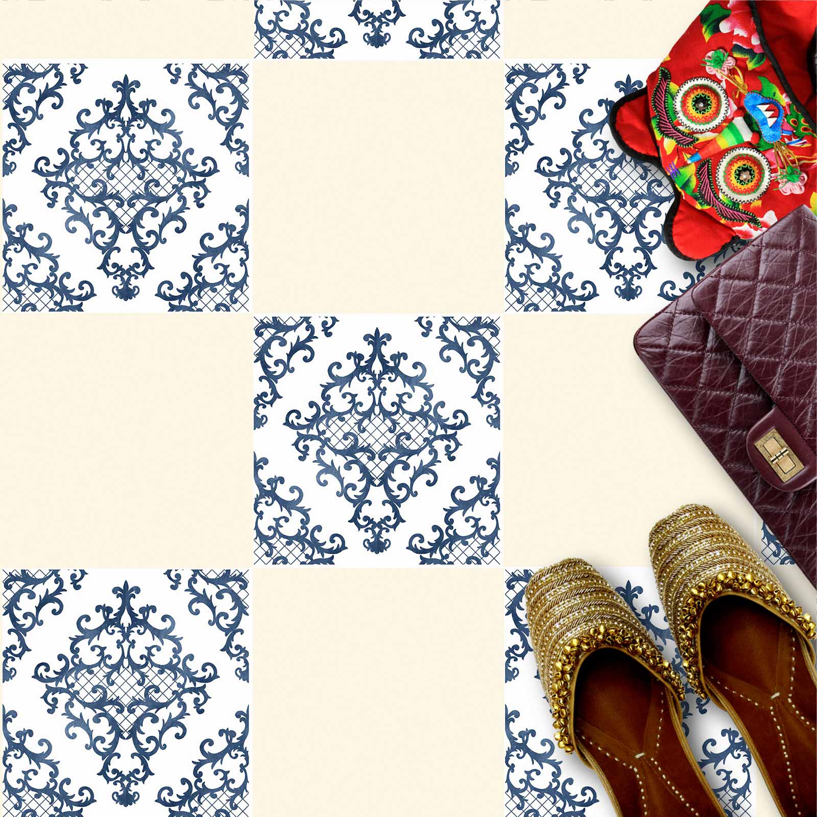 Naklejki na płytki podłogowe kuchenne łazienkowe samoprzylepne jasny ozdopny patchwork