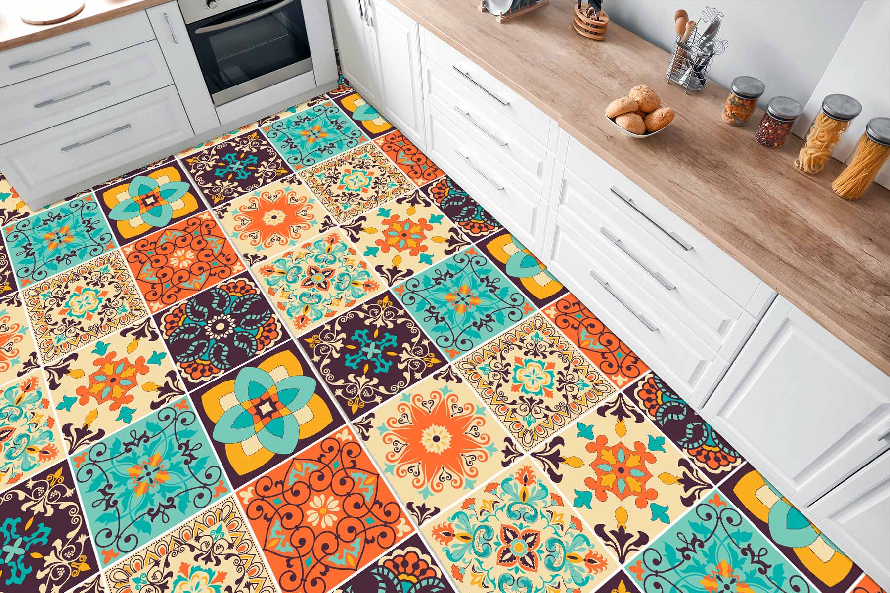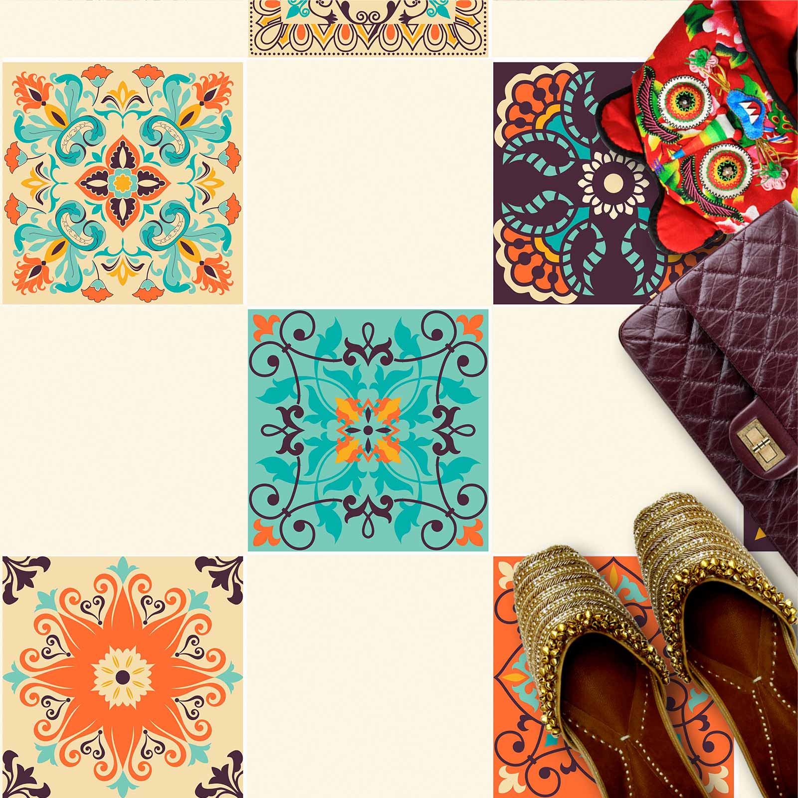 Naklejki na płytki podłogowe kuchenne łazienkowe samoprzylepne kolorowy indyjski patchwork