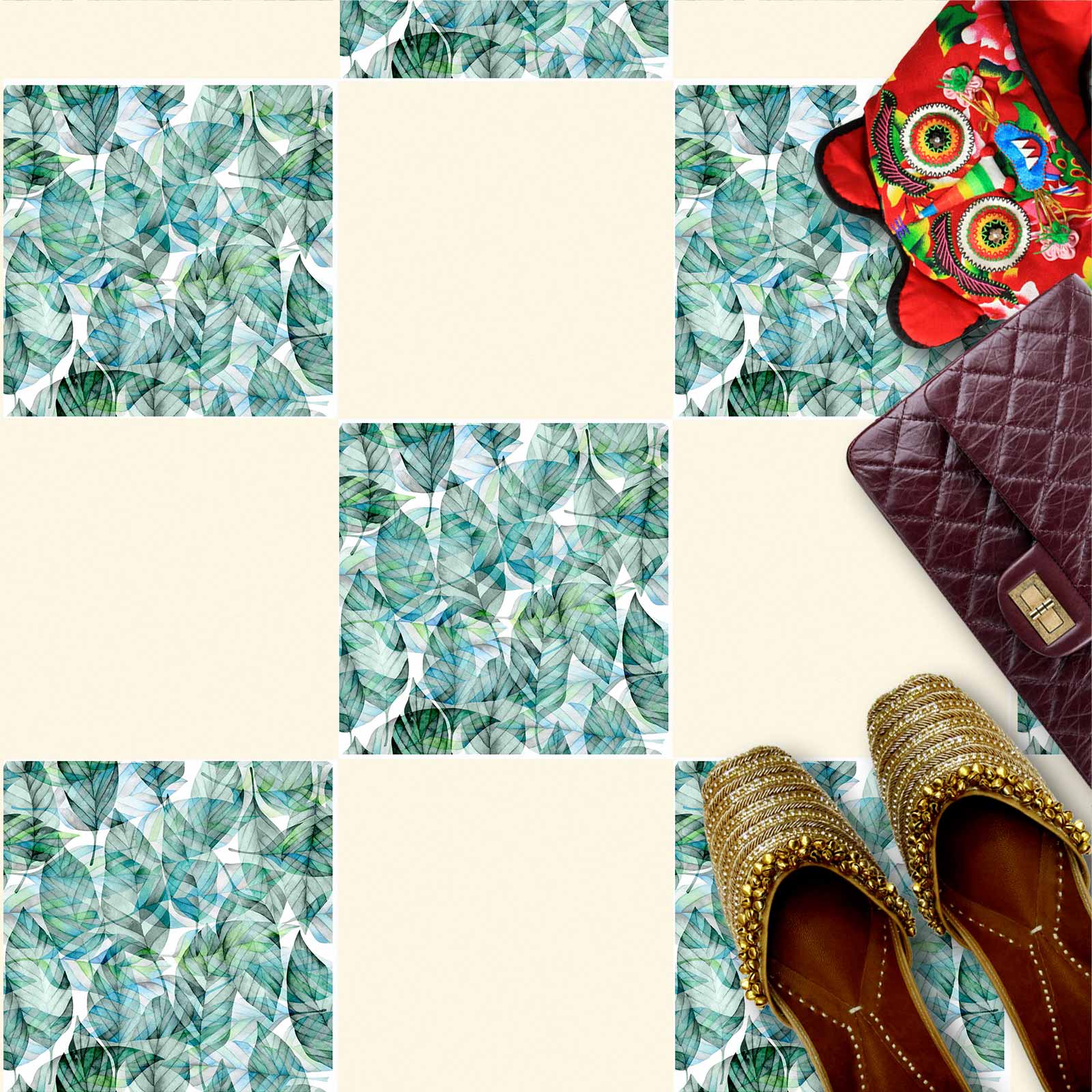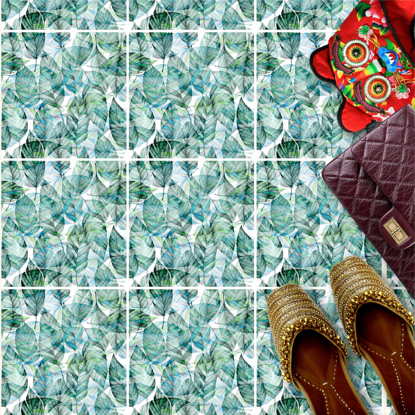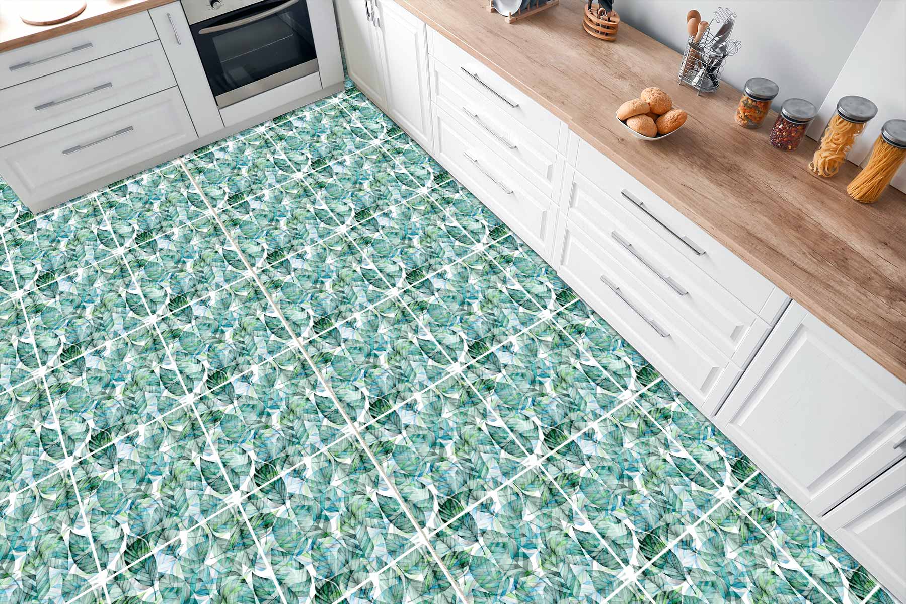 Naklejki na płytki podłogowe kuchenne łazienkowe samoprzylepne liście w odcieniach zielenii