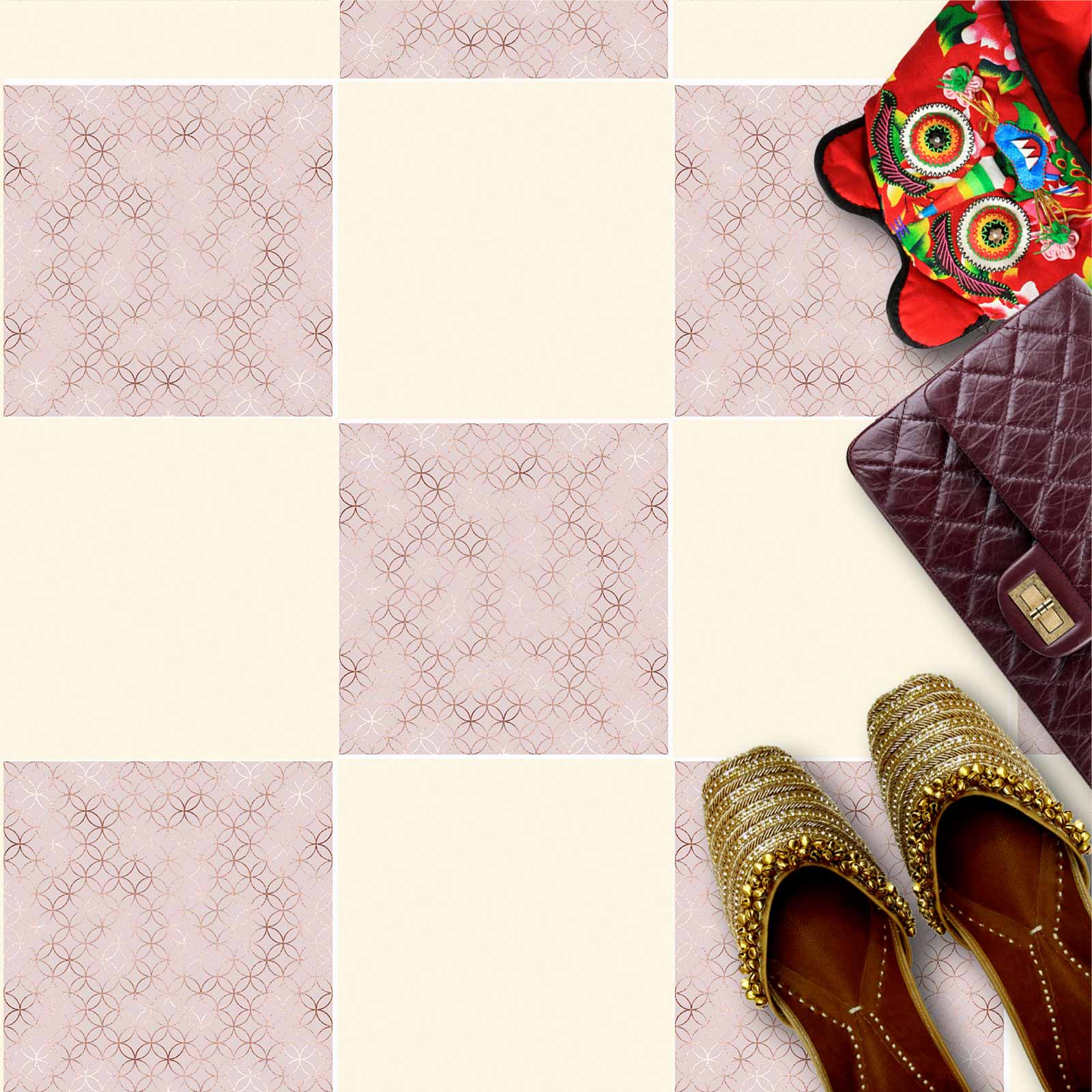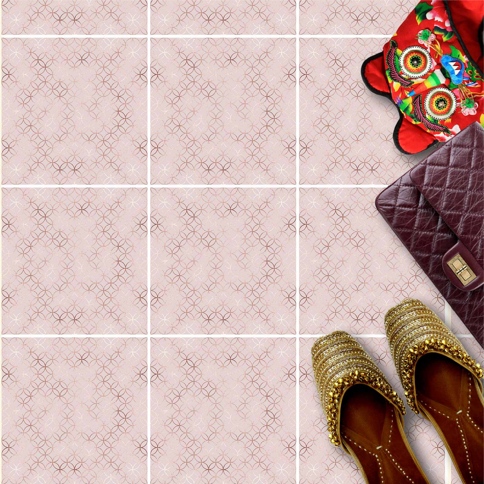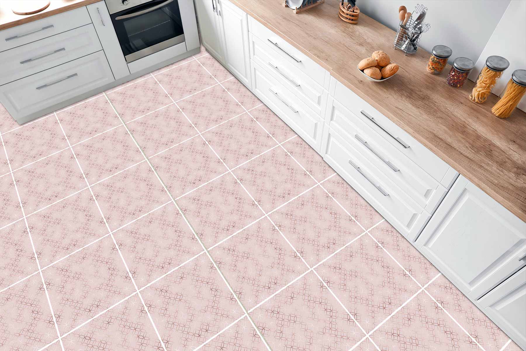 Naklejki na płytki podłogowe kuchenne łazienkowe samoprzylepne różowe okręgi art decor
