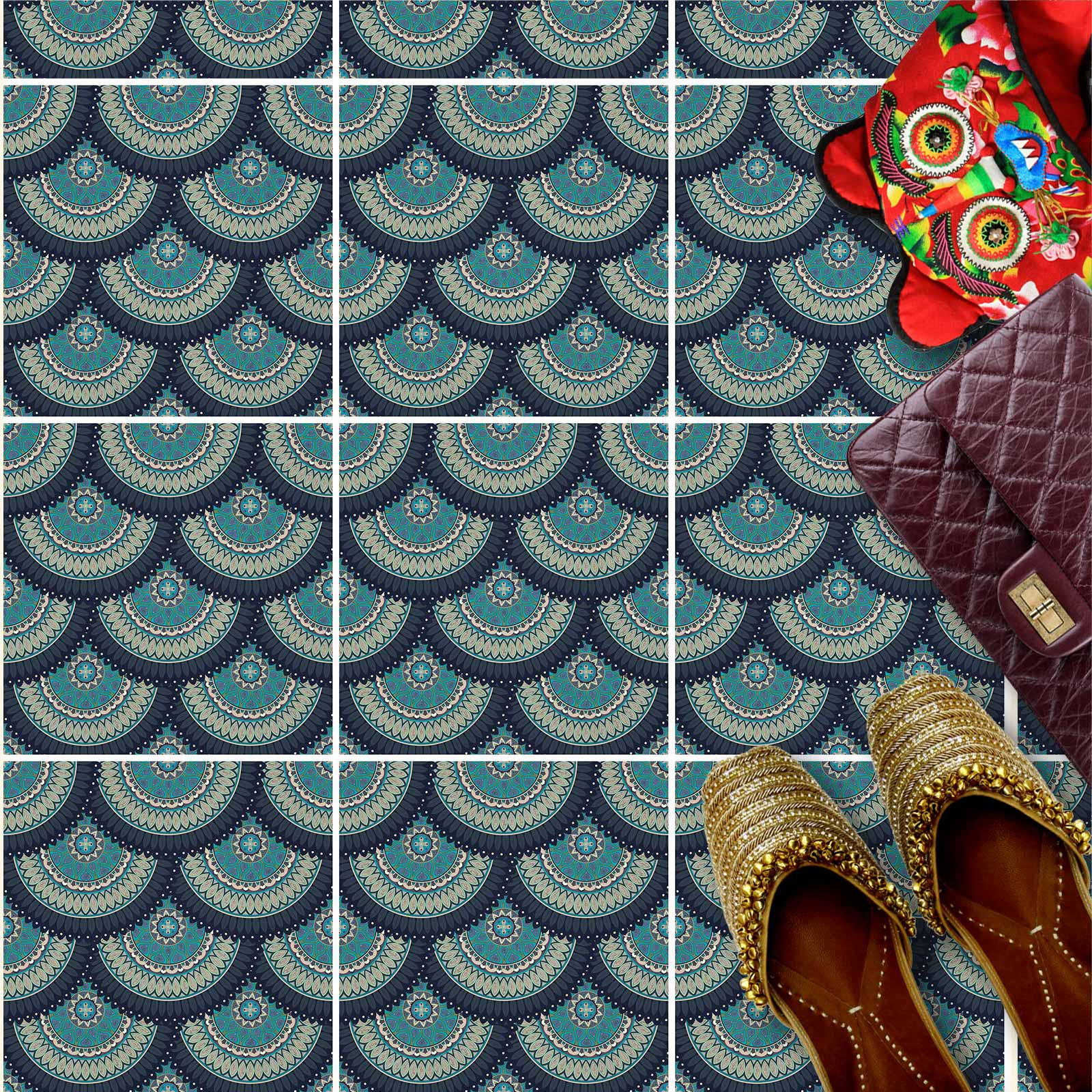Naklejki na płytki podłogowe kuchenne łazienkowe samoprzylepne styl vintage art deco