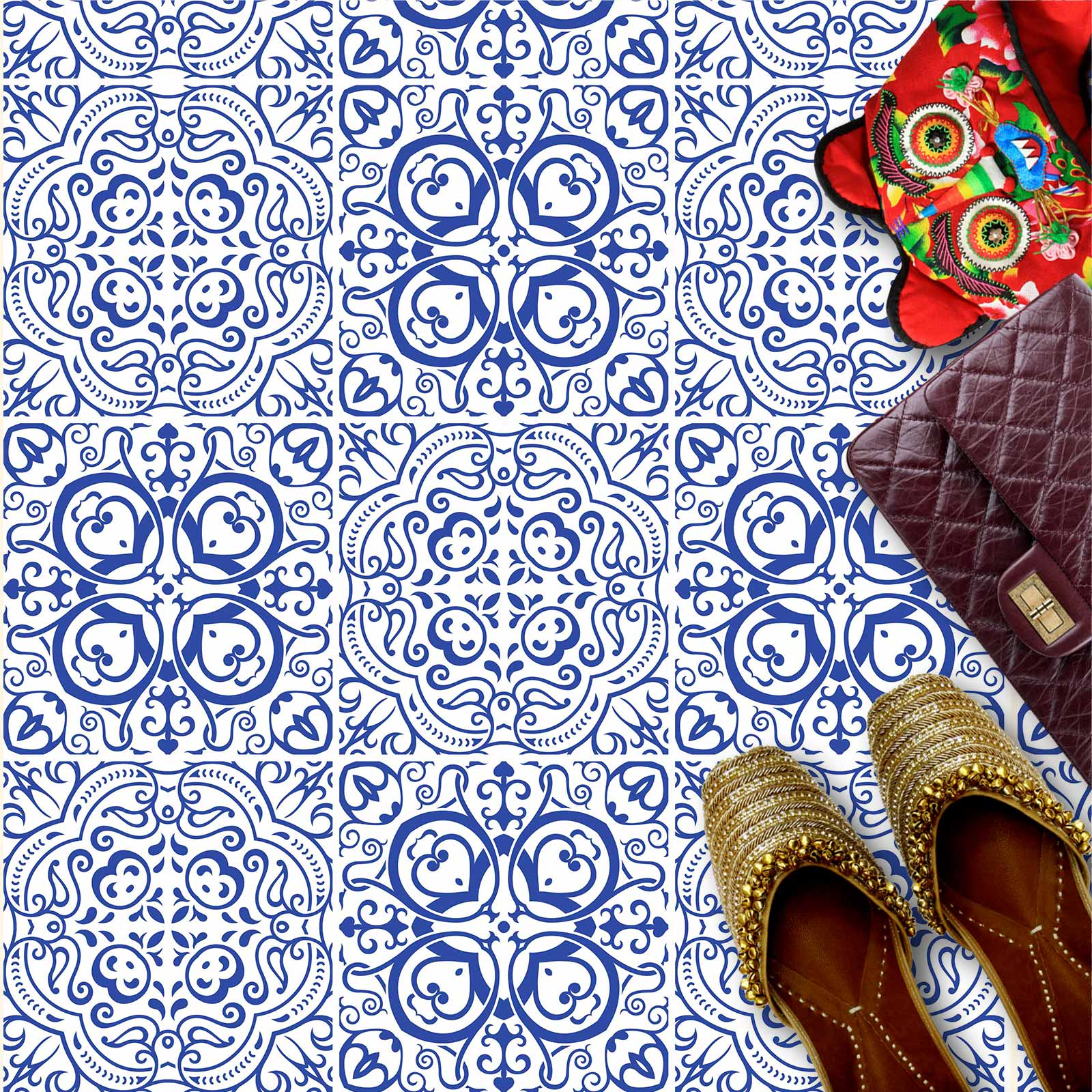 Naklejki na płytki podłogowe kuchenne łazienkowe samoprzylepne w stylu portugalskiego origami azulejos