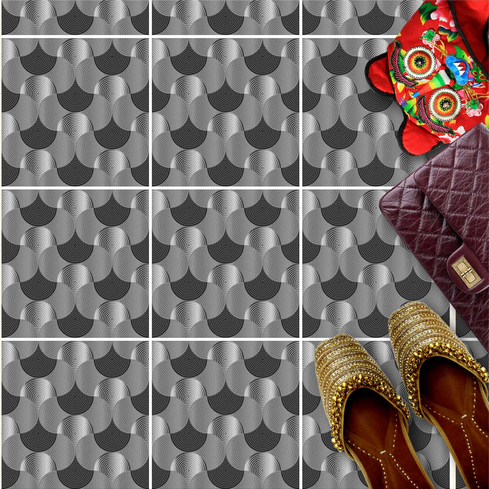 Naklejki na płytki podłogowe kuchenne łazienkowe samoprzylepne wodoodporne geometryczne okręgi