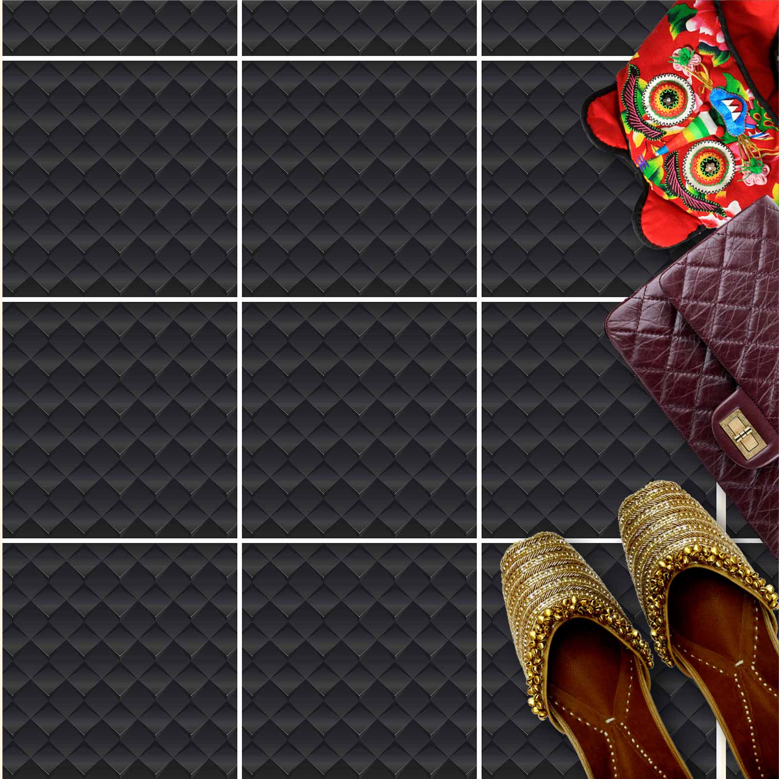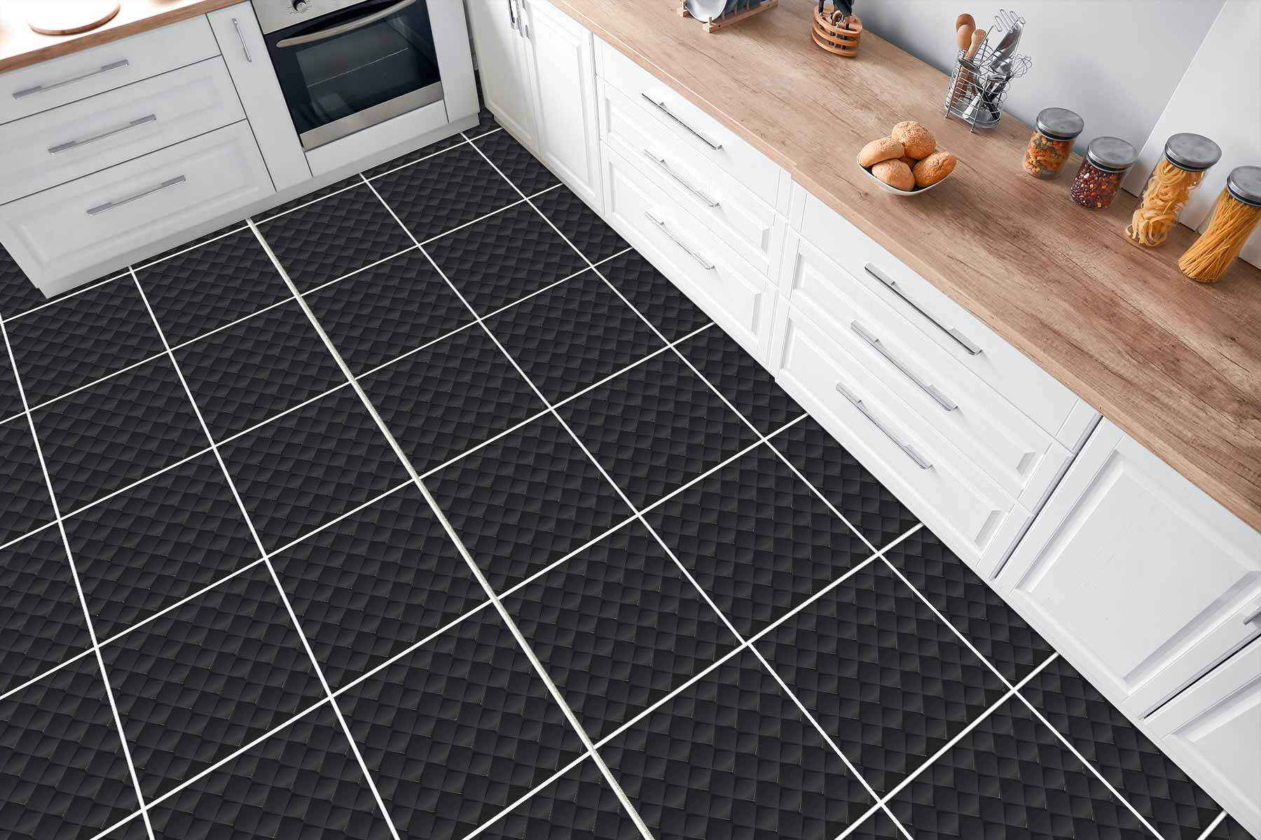 Naklejki na płytki podłogowe kuchenne łazienkowe samoprzylepne wzór w czarne kwadraty