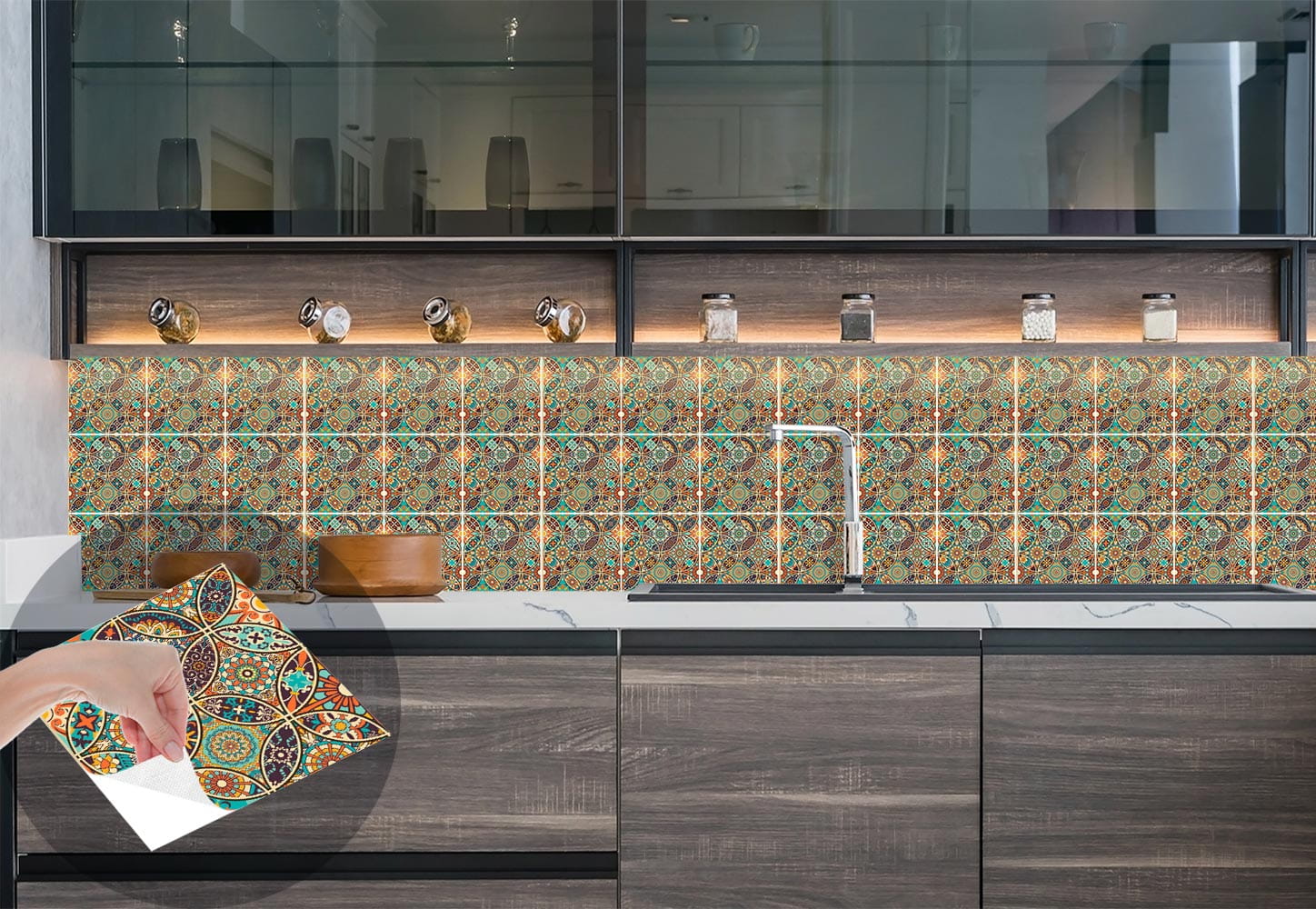 Naklejki na płytki ścienne kuchenne łazienkowe PATCHWORK MANDALA