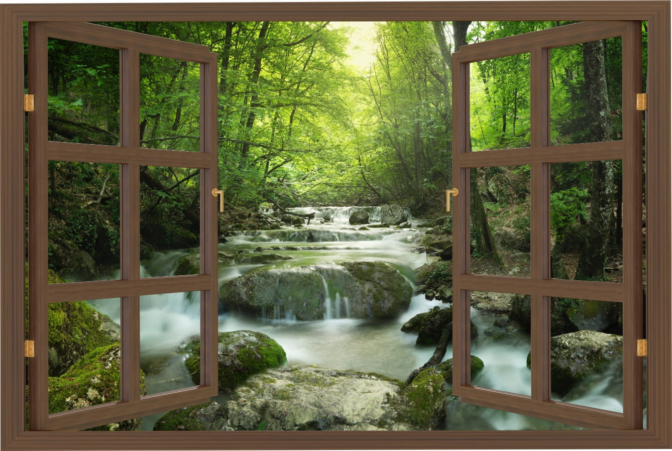 Naklejki na ścianę 3d okno z widokiem wodospad w lesie potok